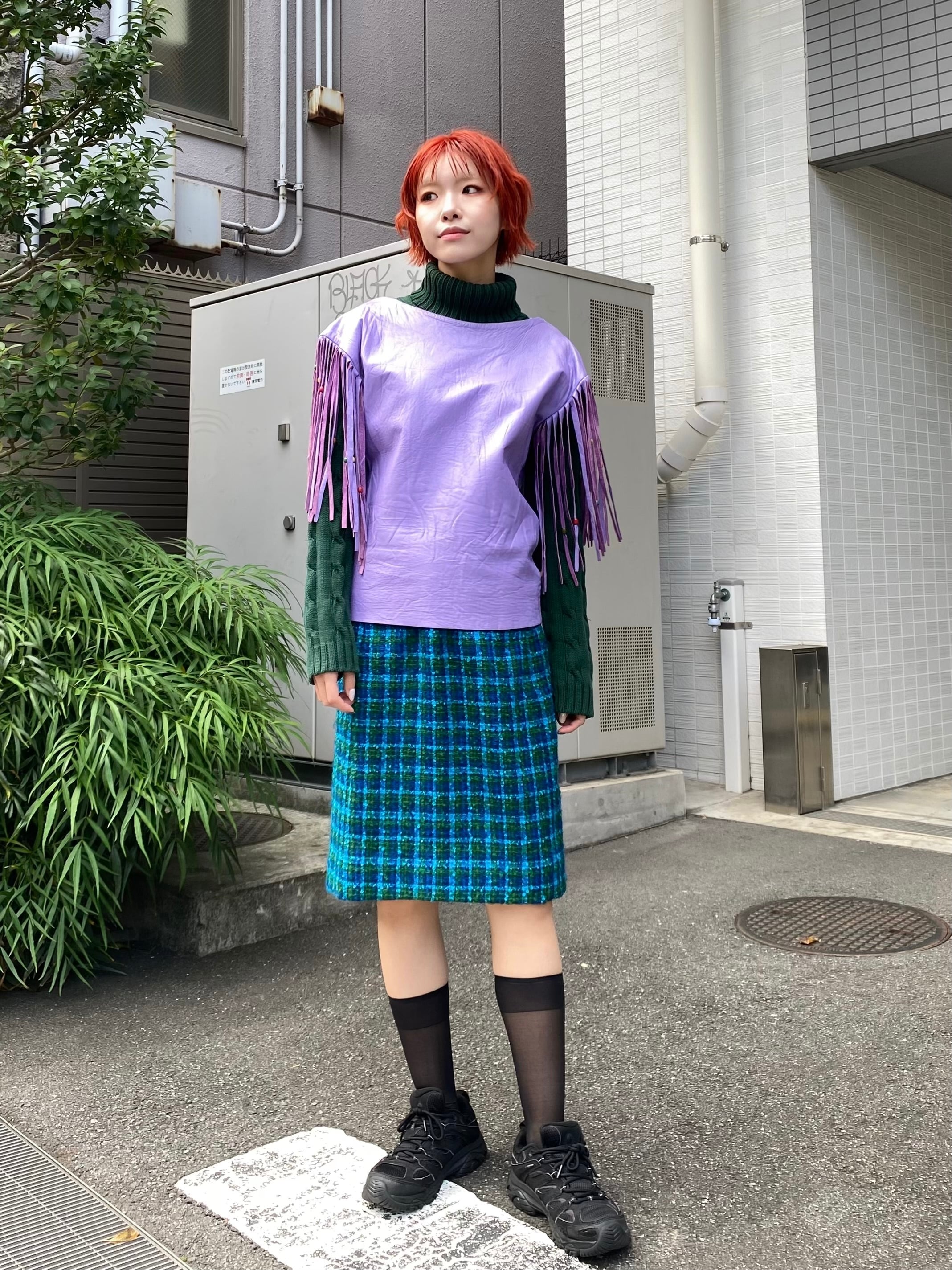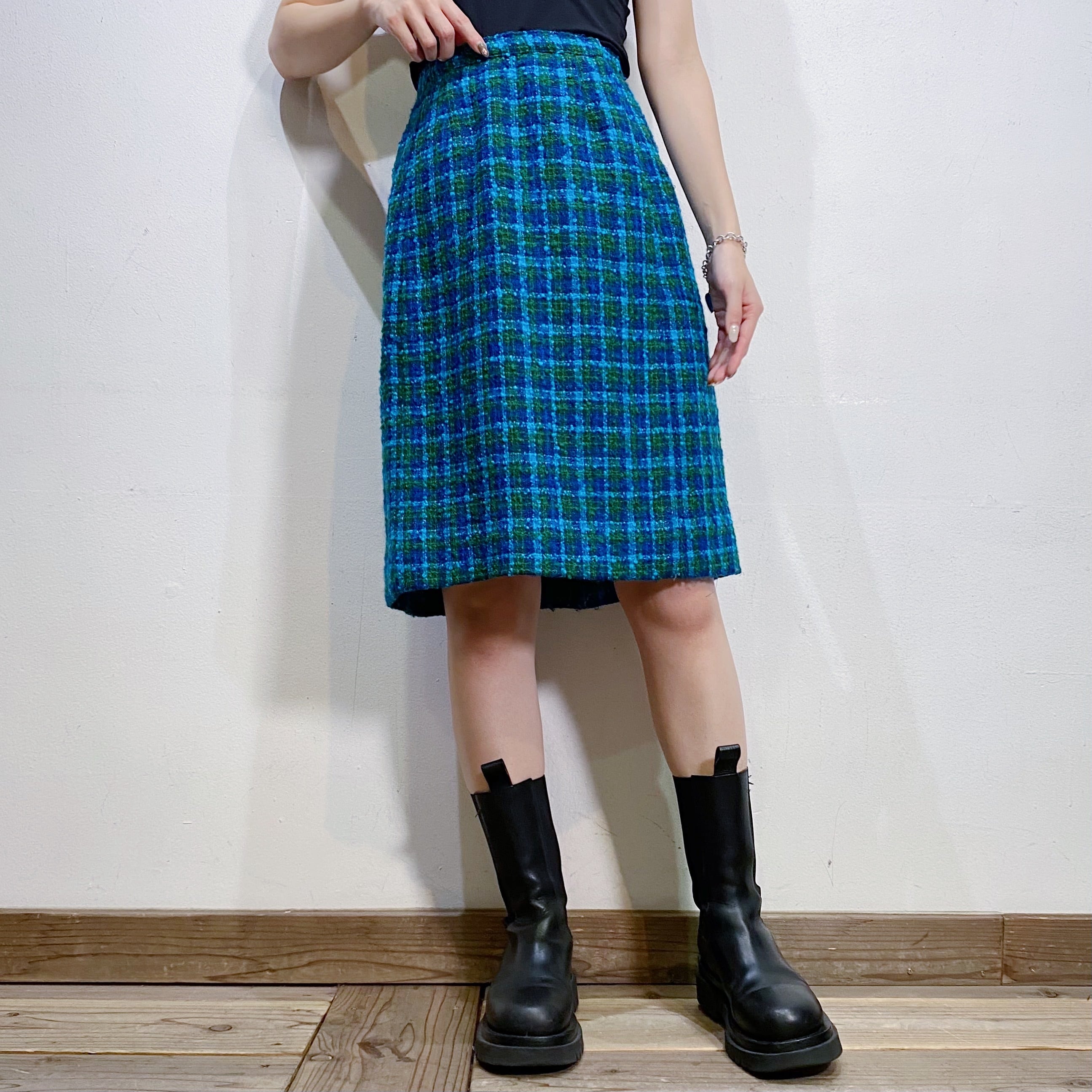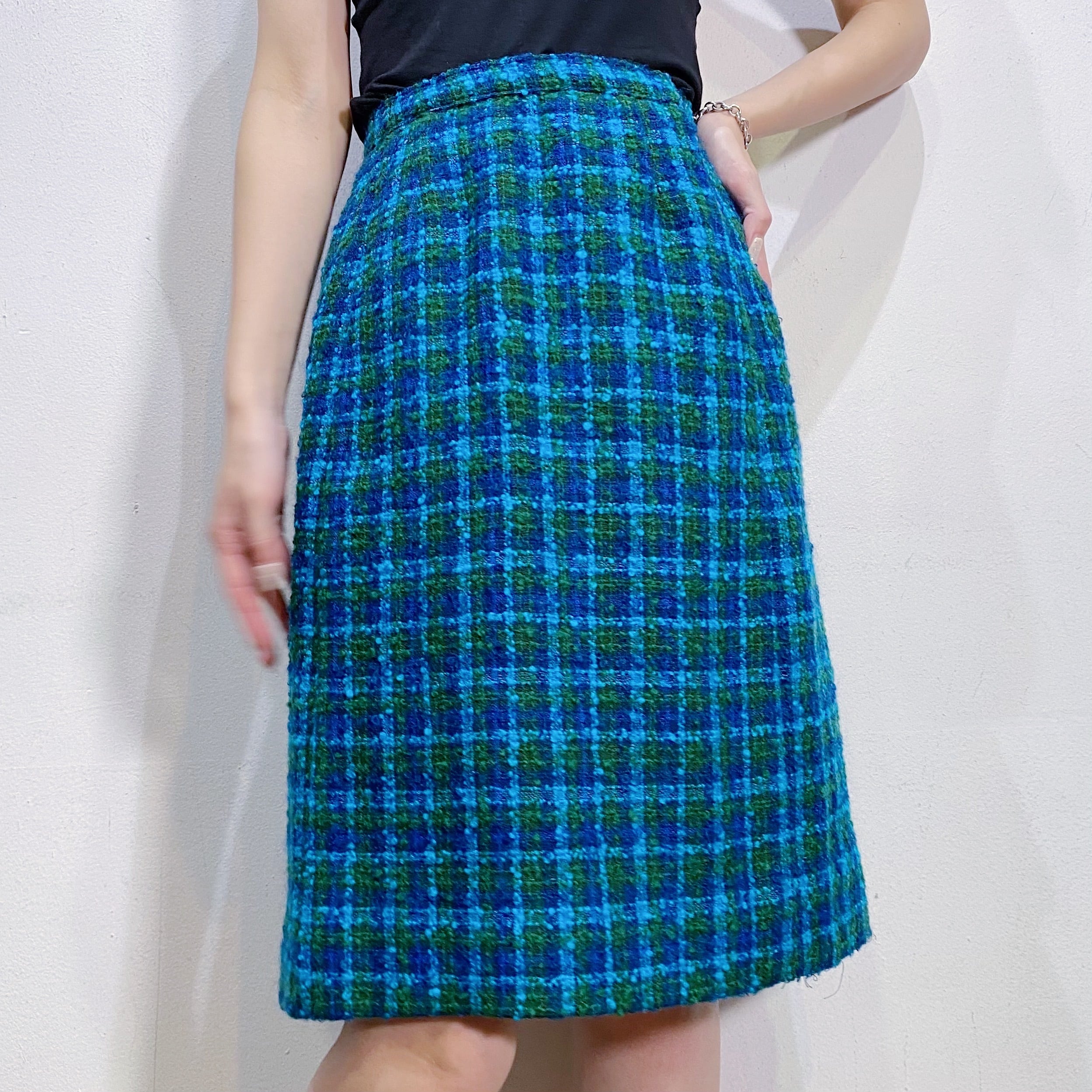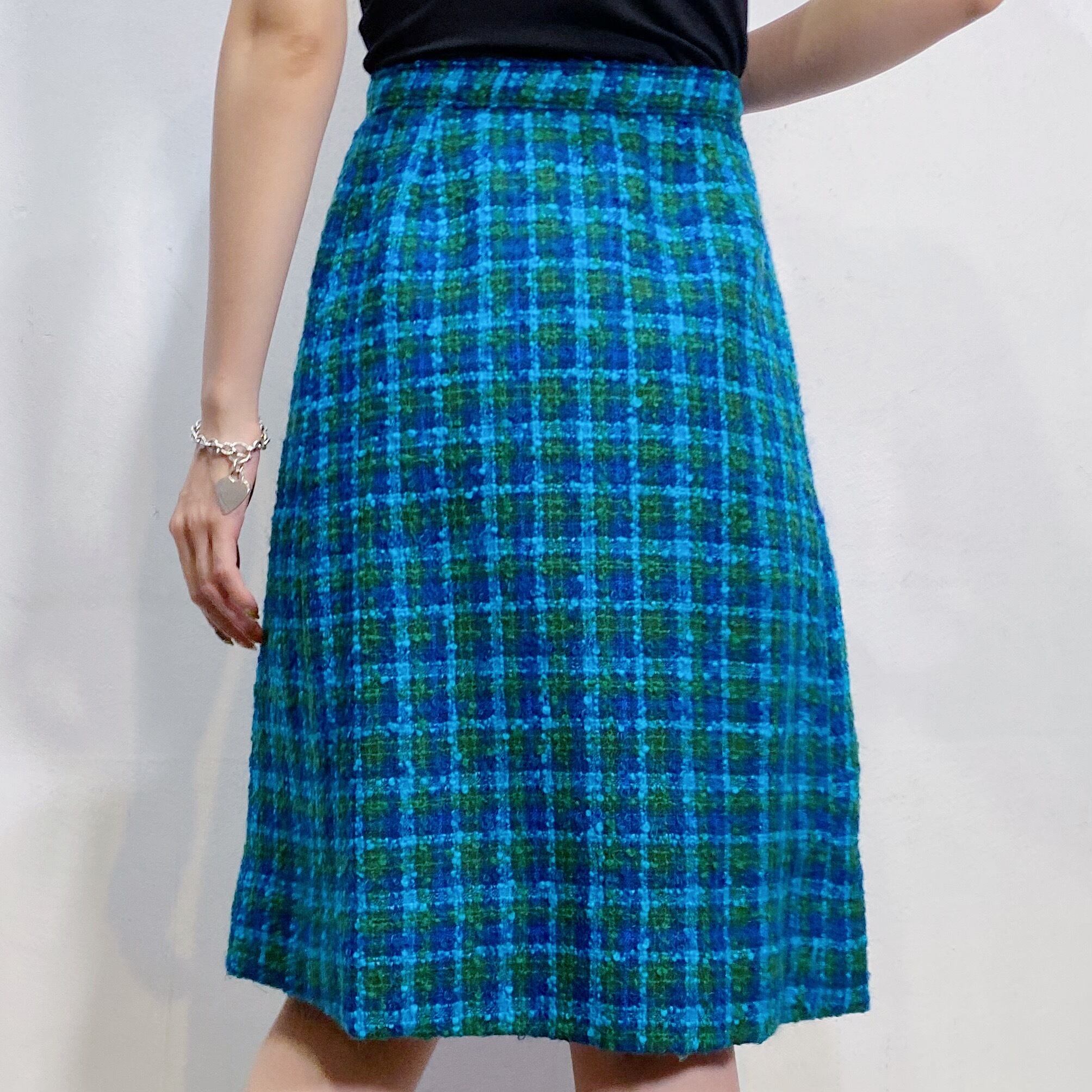 ブルー×グリーンのチェックが可愛い、60年代のスカートです。