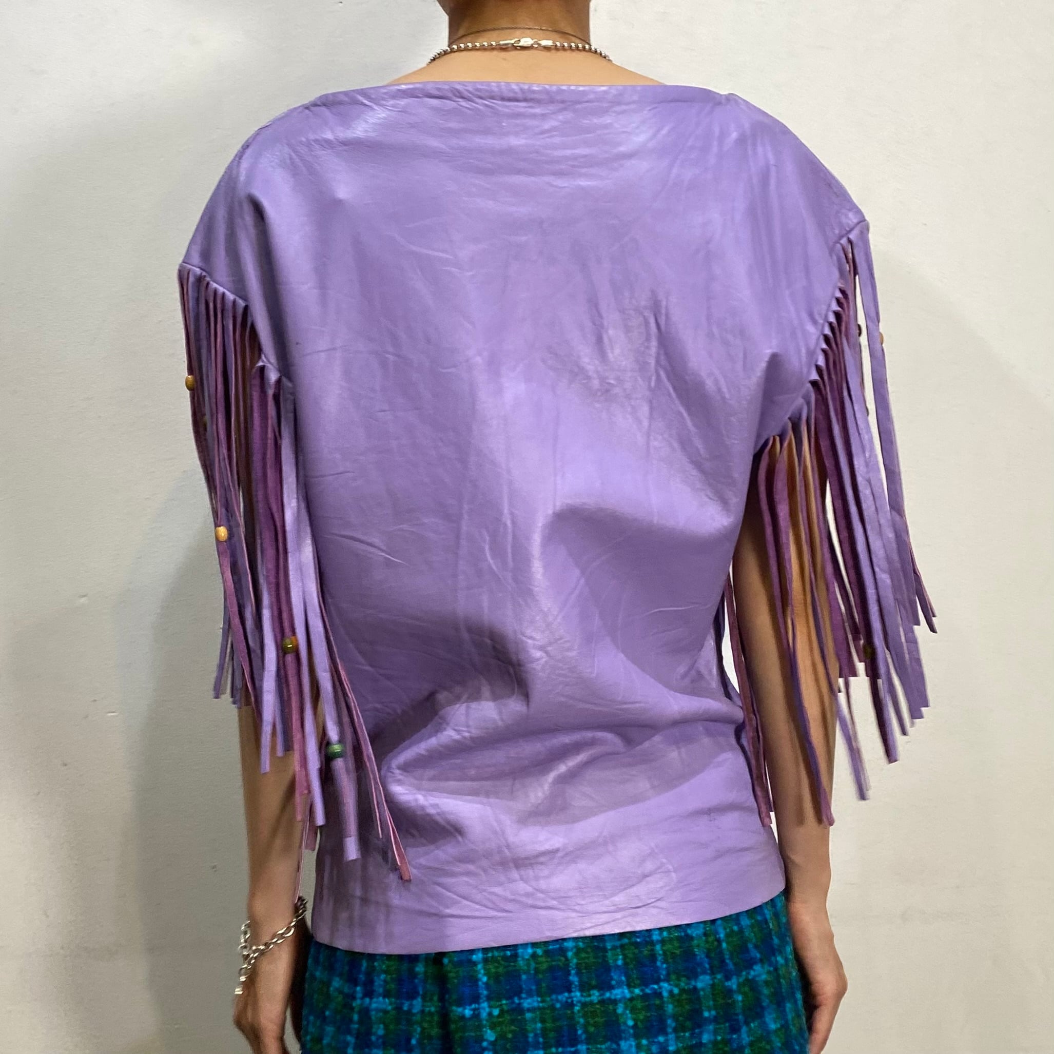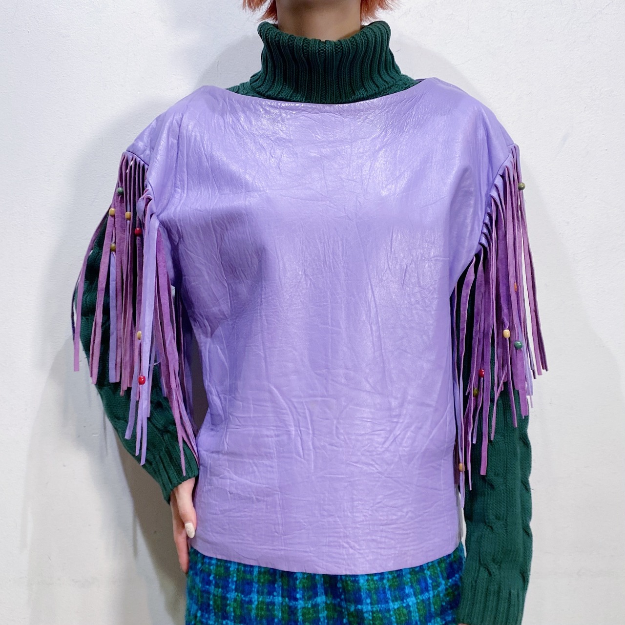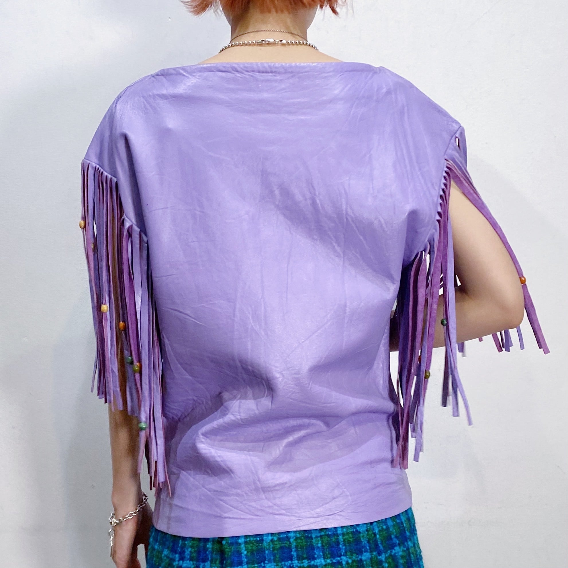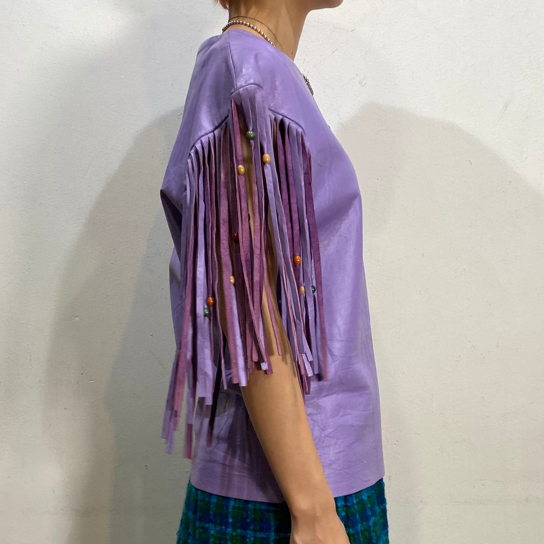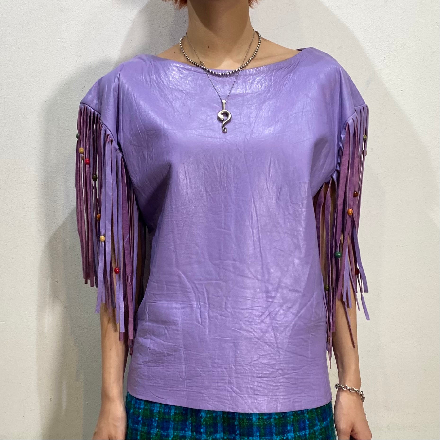 ふりふりと揺れるフリンジのお袖が可愛い、80年代のレザートップスです。