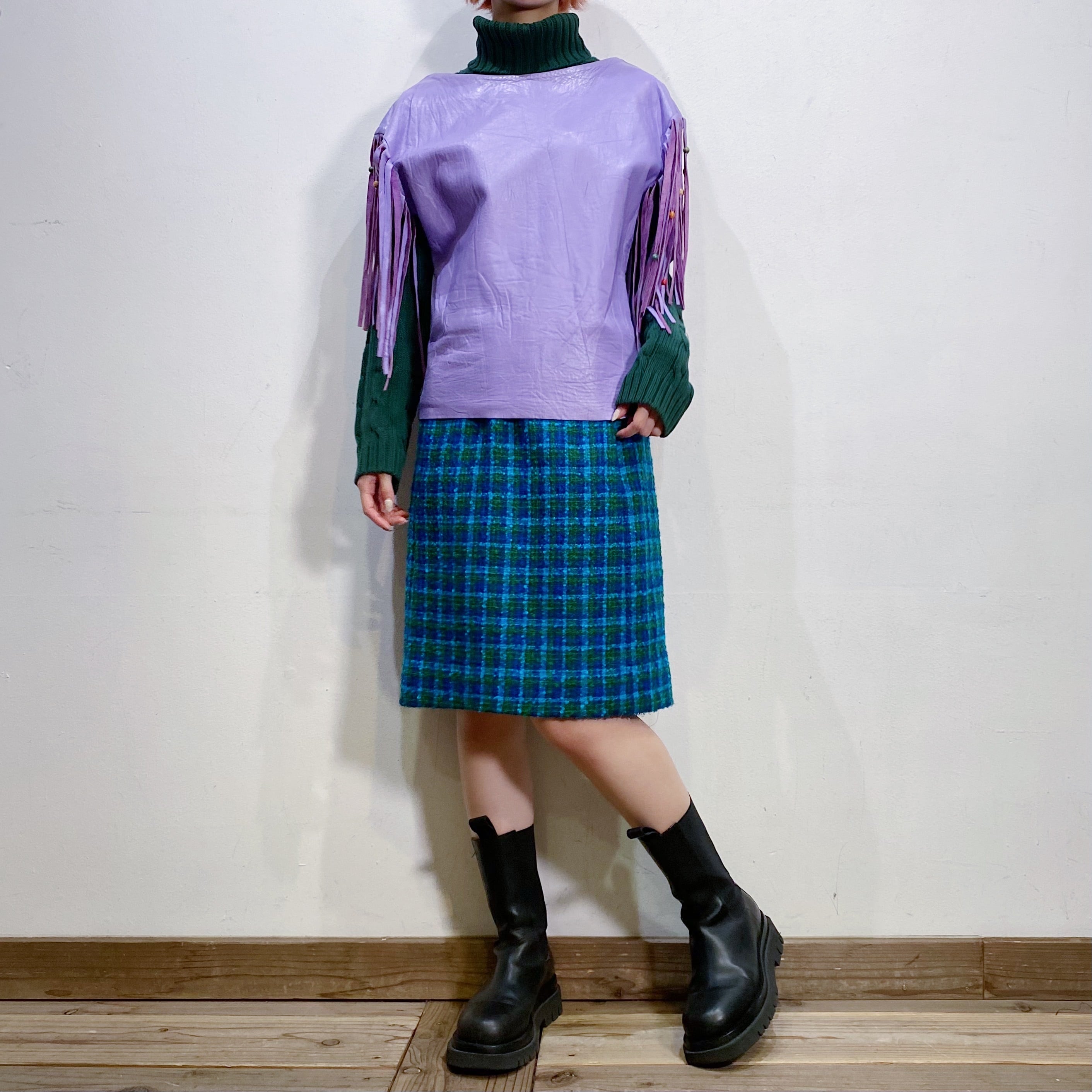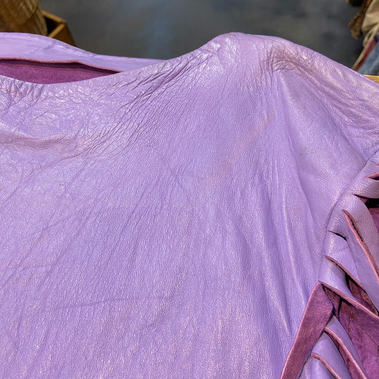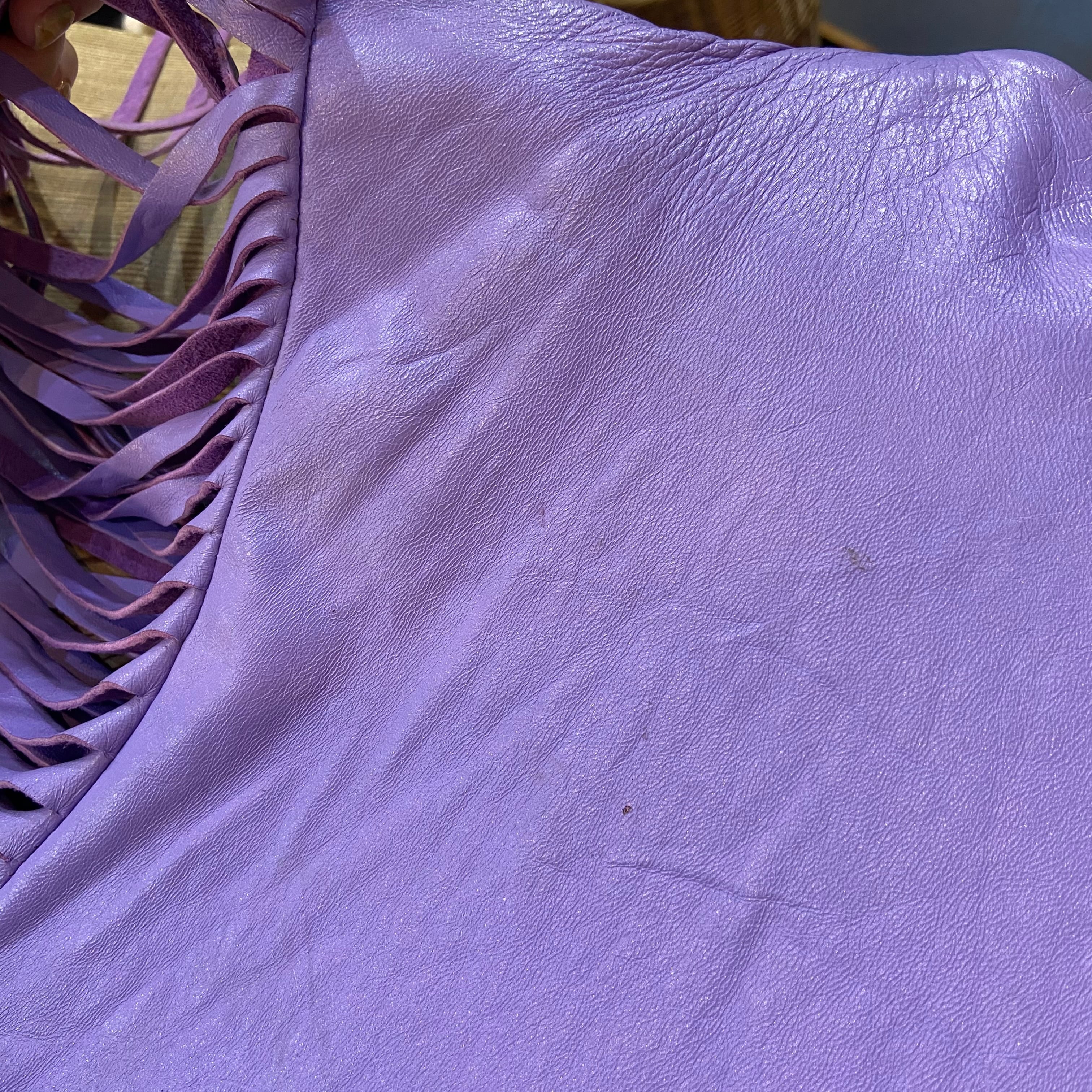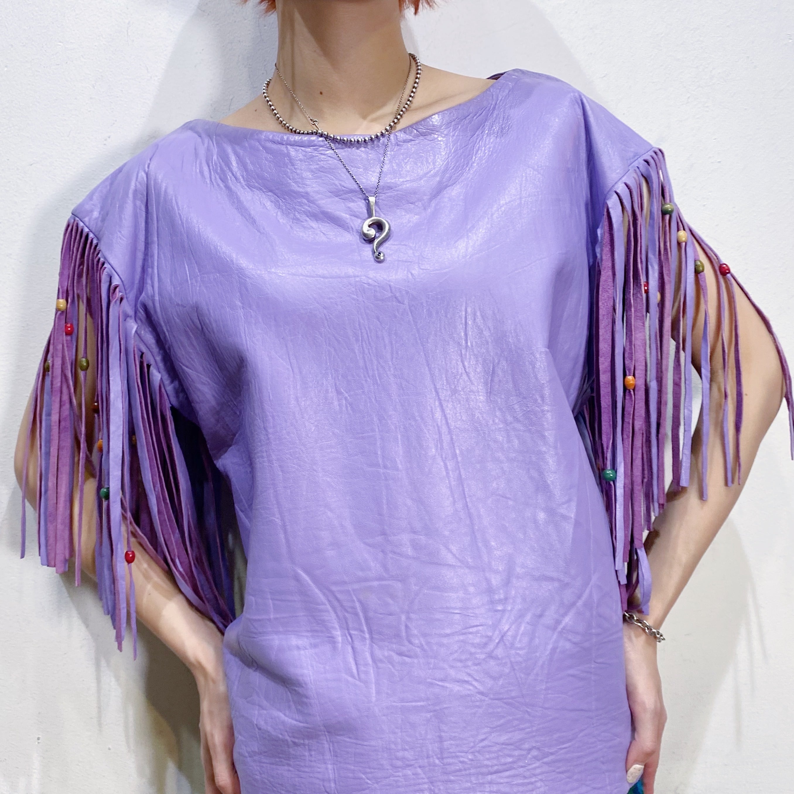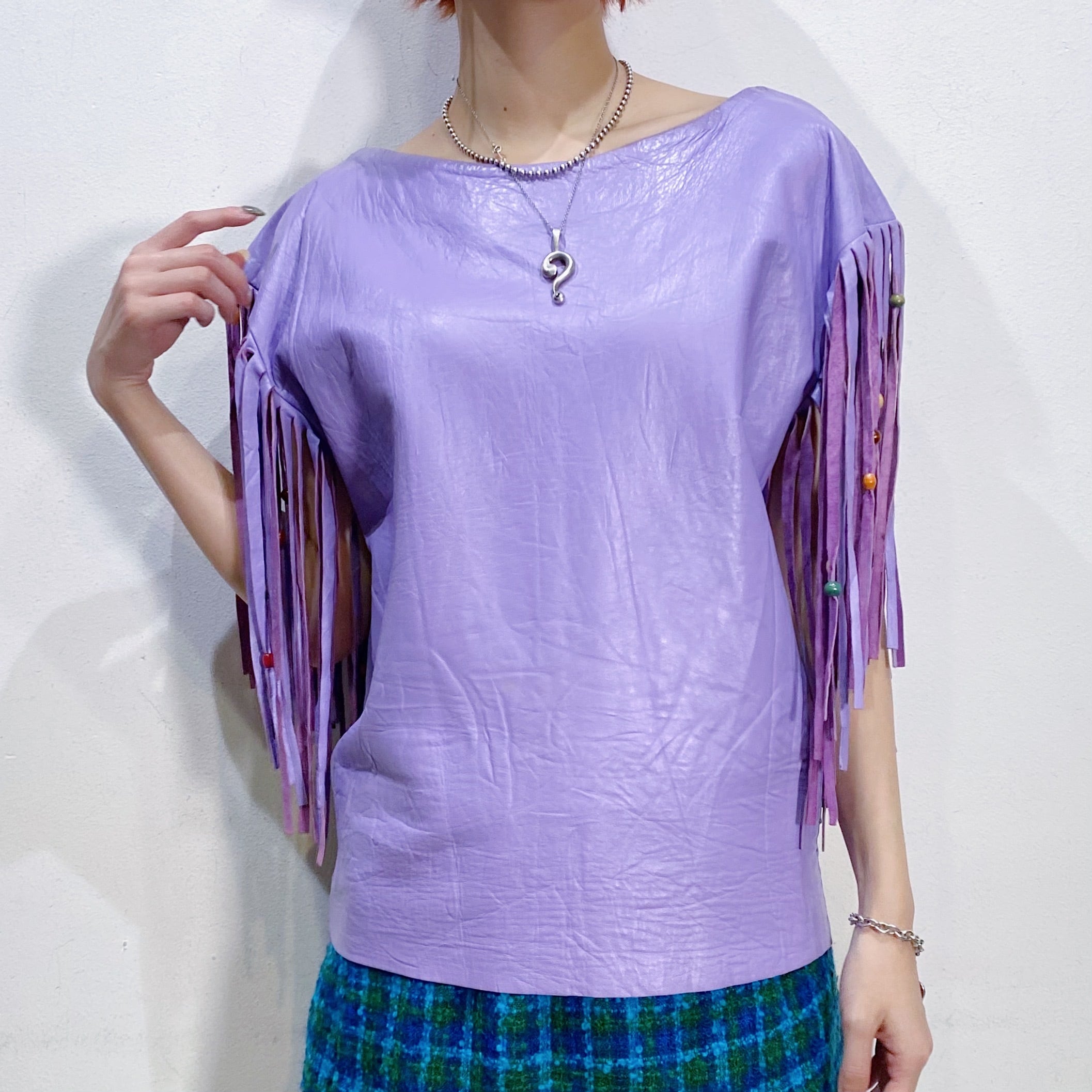ふりふりと揺れるフリンジのお袖が可愛い、80年代のレザートップスです。