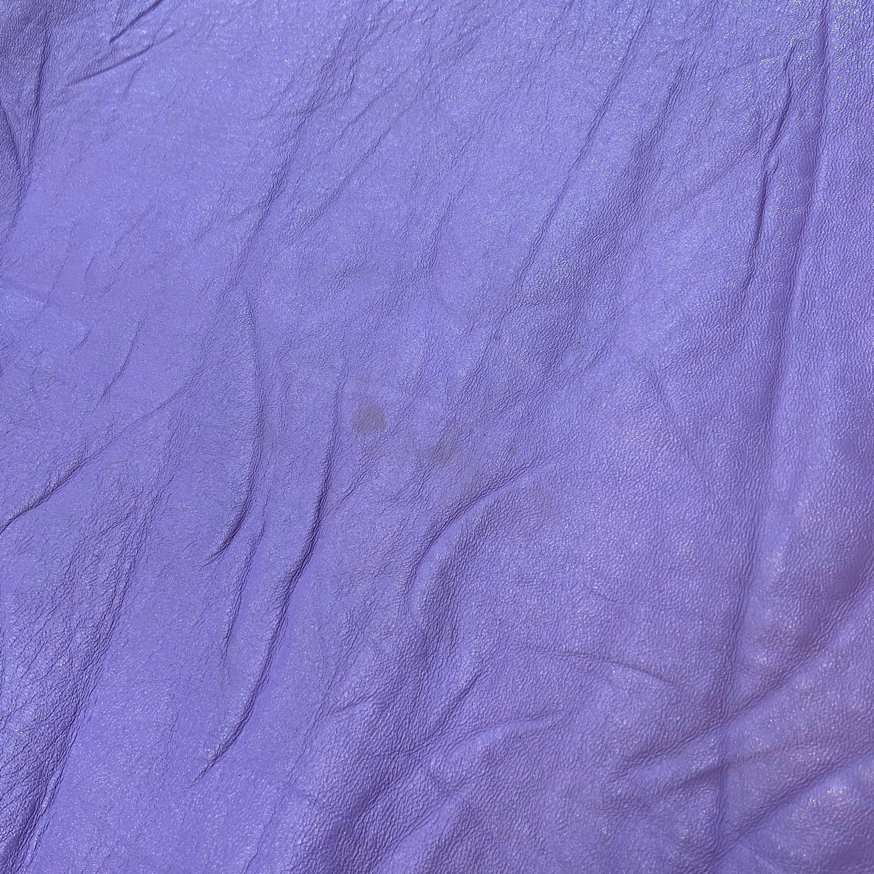 レザーでラベンダーカラーも珍しいですし、このデザインでレザーだからこそ大人可愛く着れますよ。