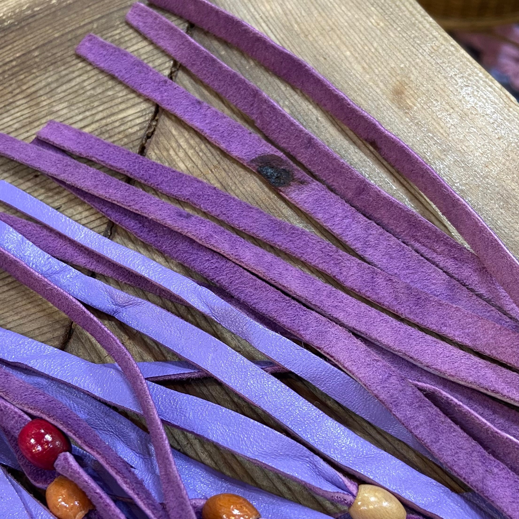 フリンジにはカラフルなウッドビーズも付いていて、遊び心のある古着らしい一枚。