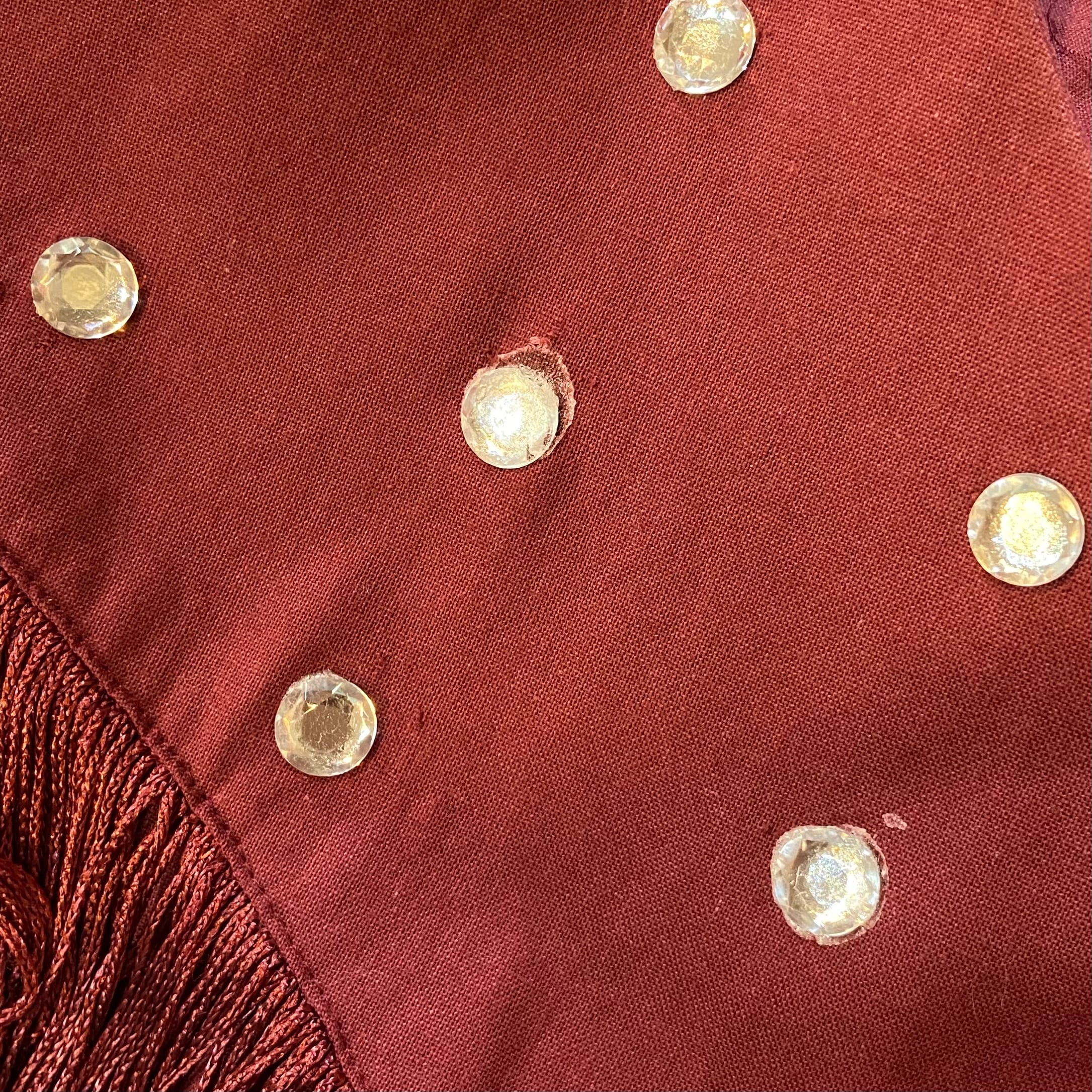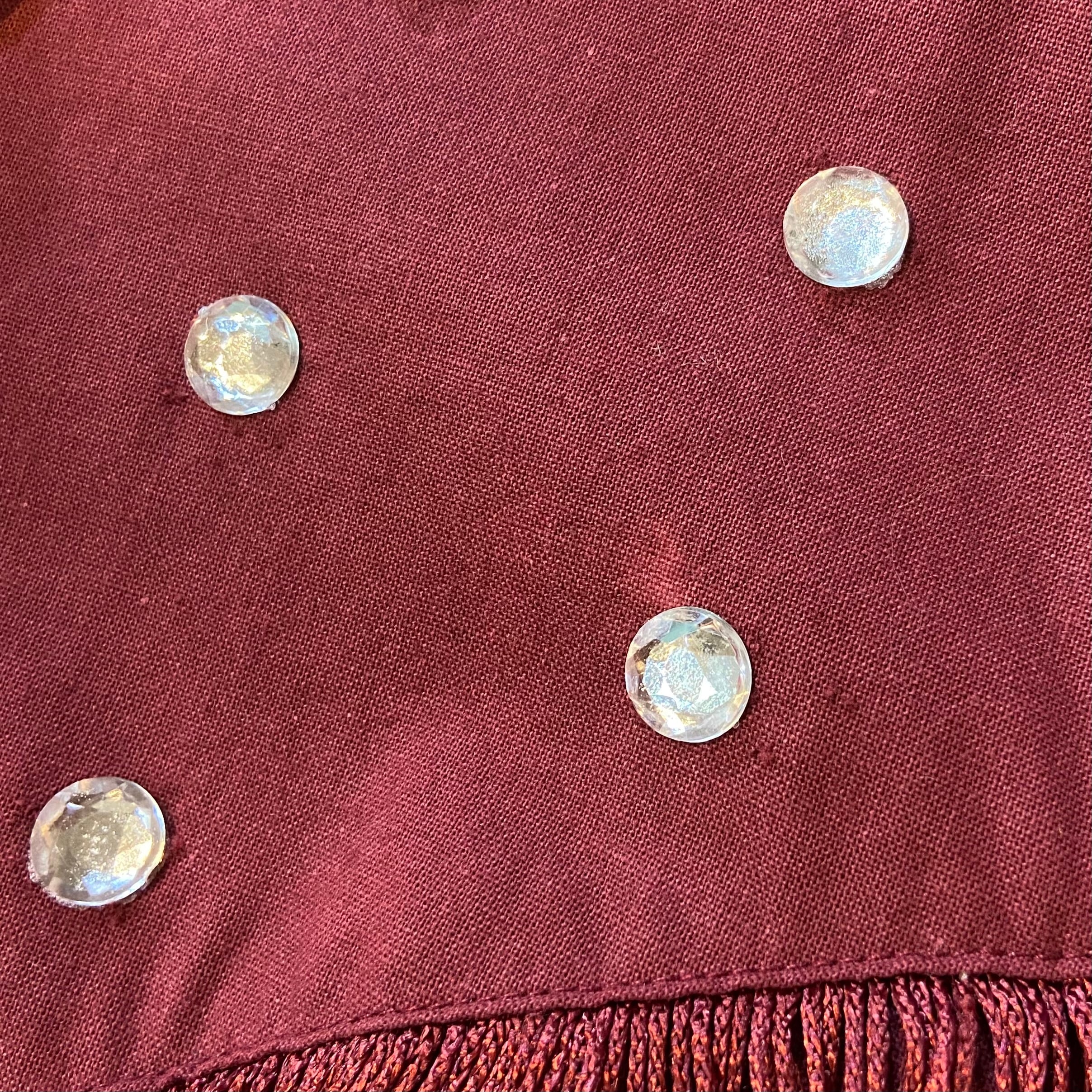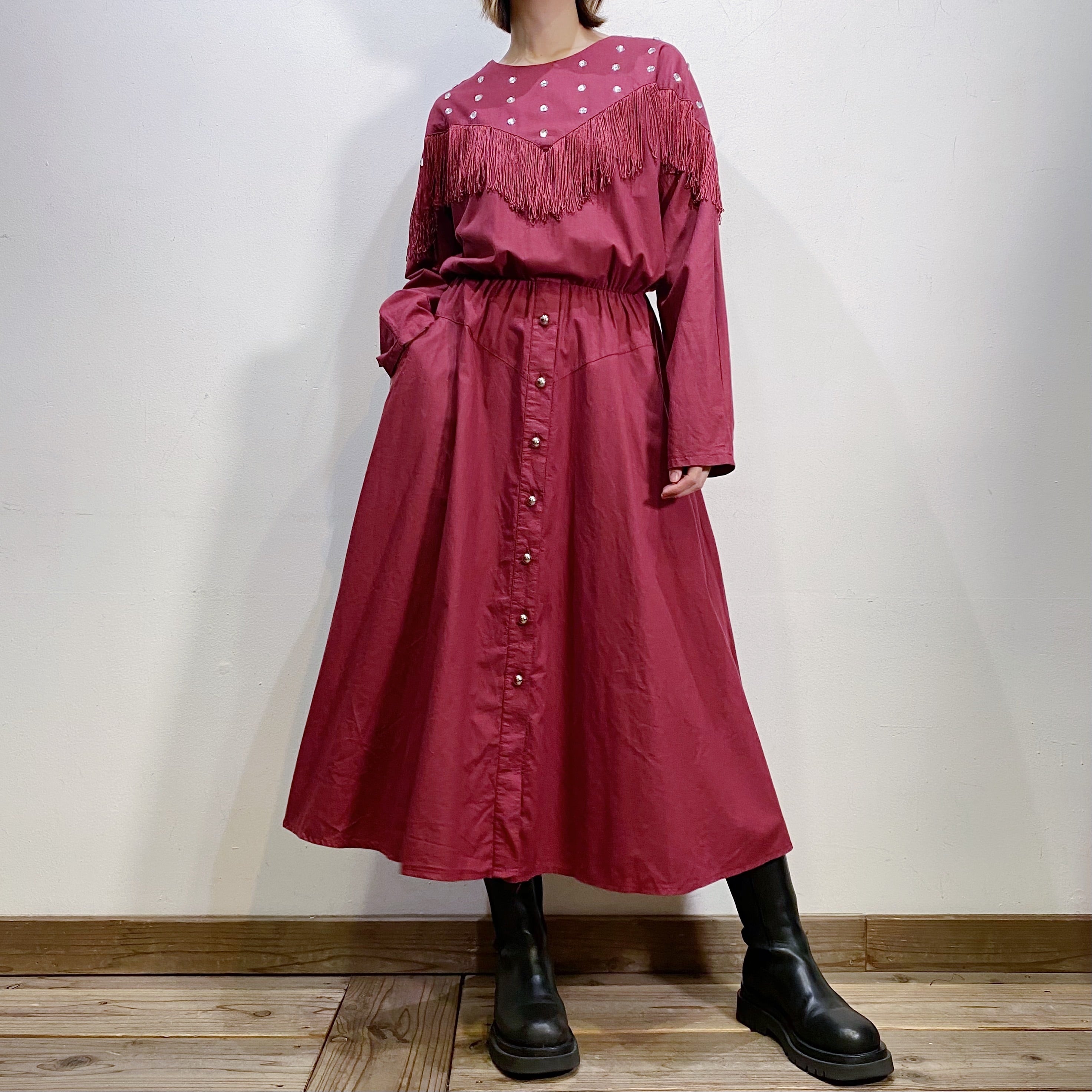 程よく揺れるフリンジとビジューのデザインが可愛い、80年代のロングワンピースです。