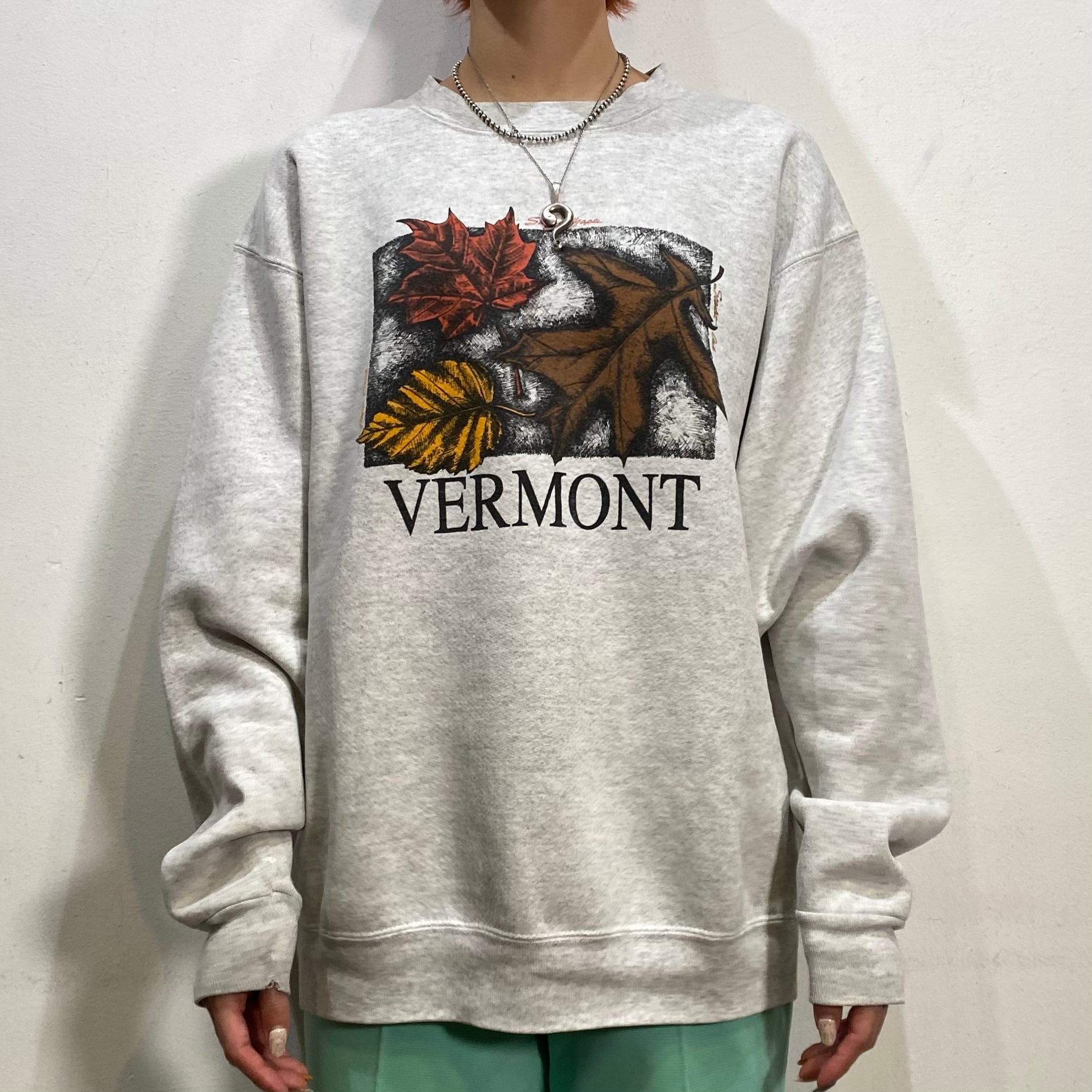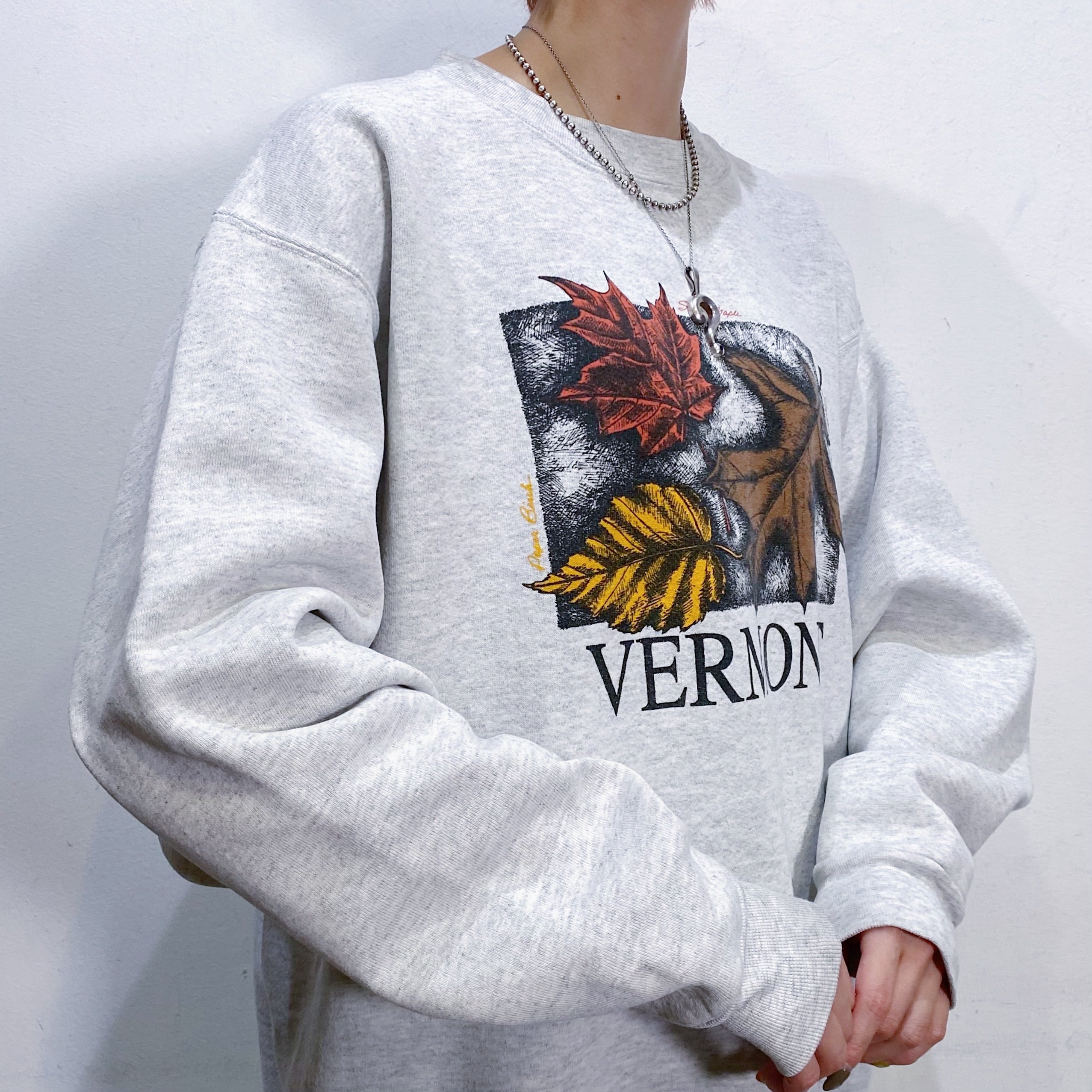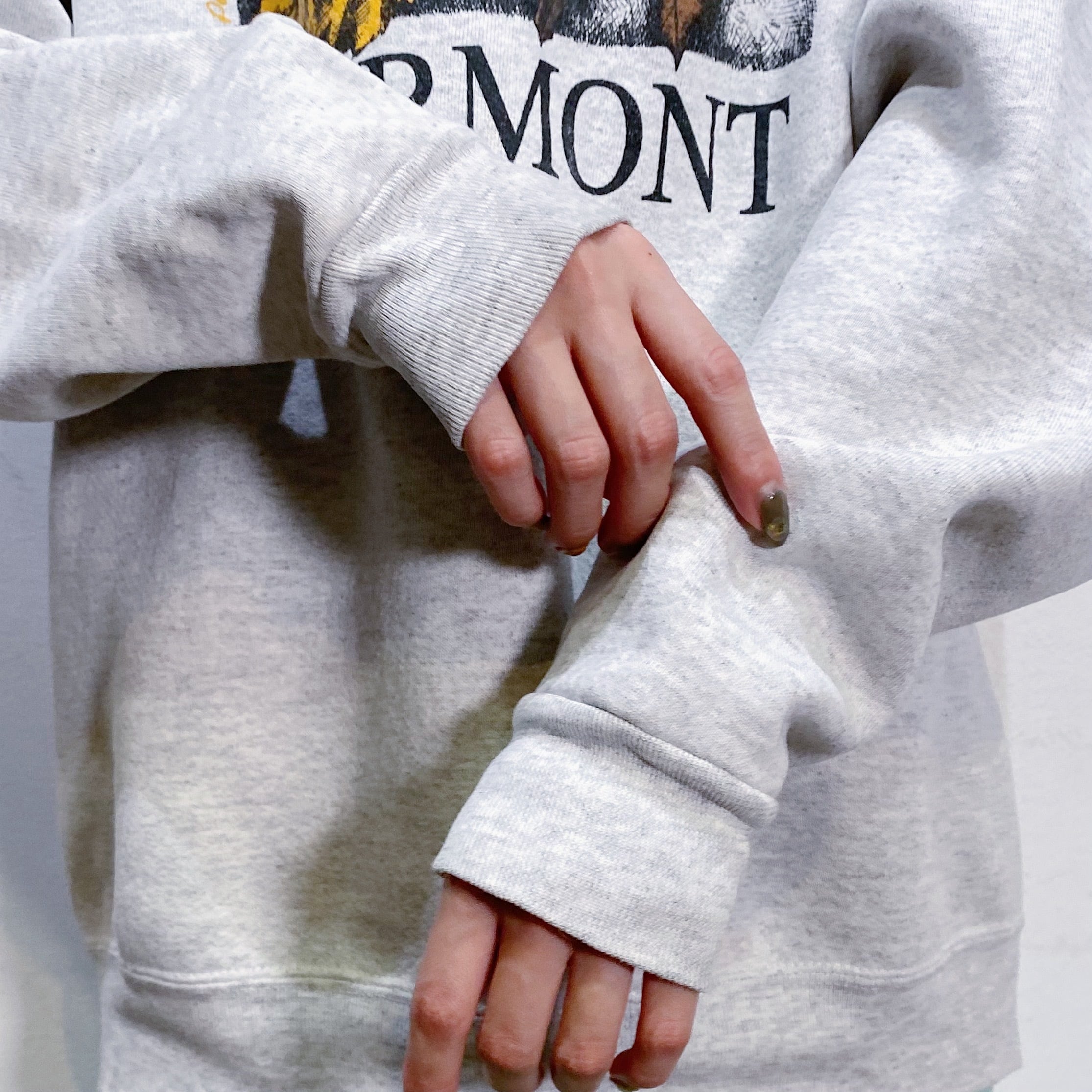 落ち葉のプリントが可愛い、杢グレーのプルオーバースウェットです。