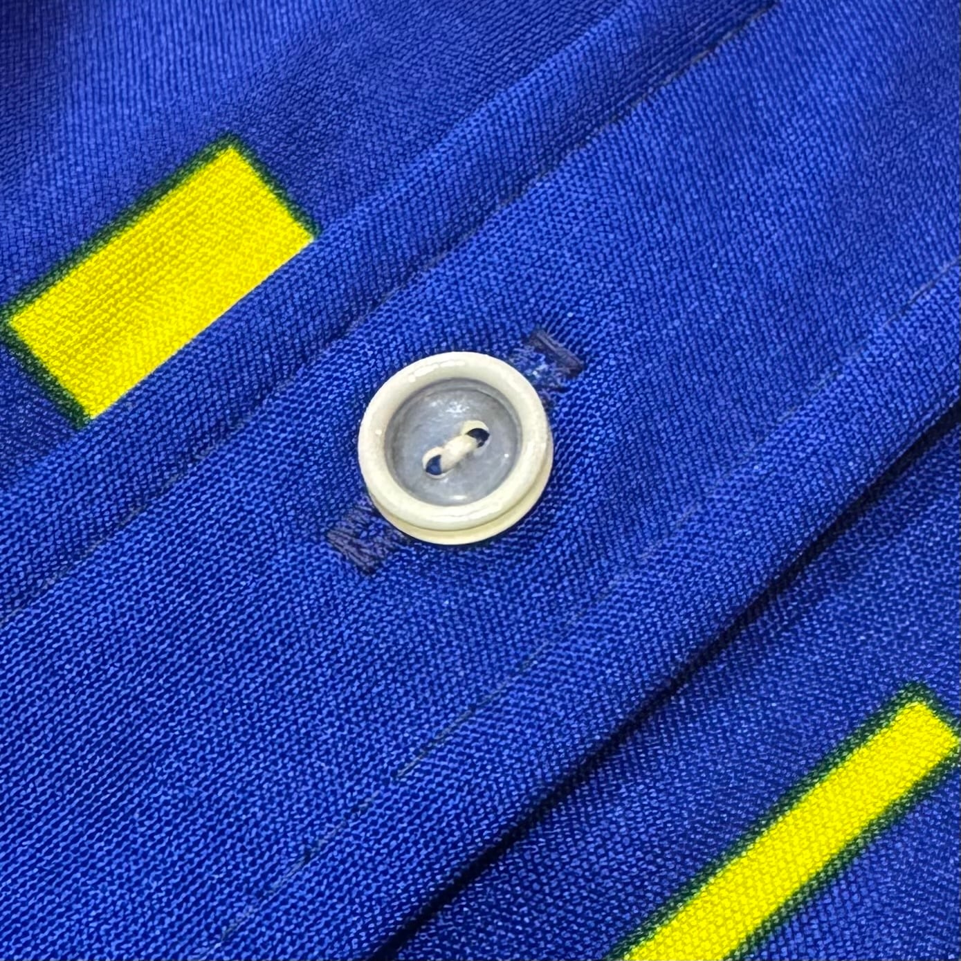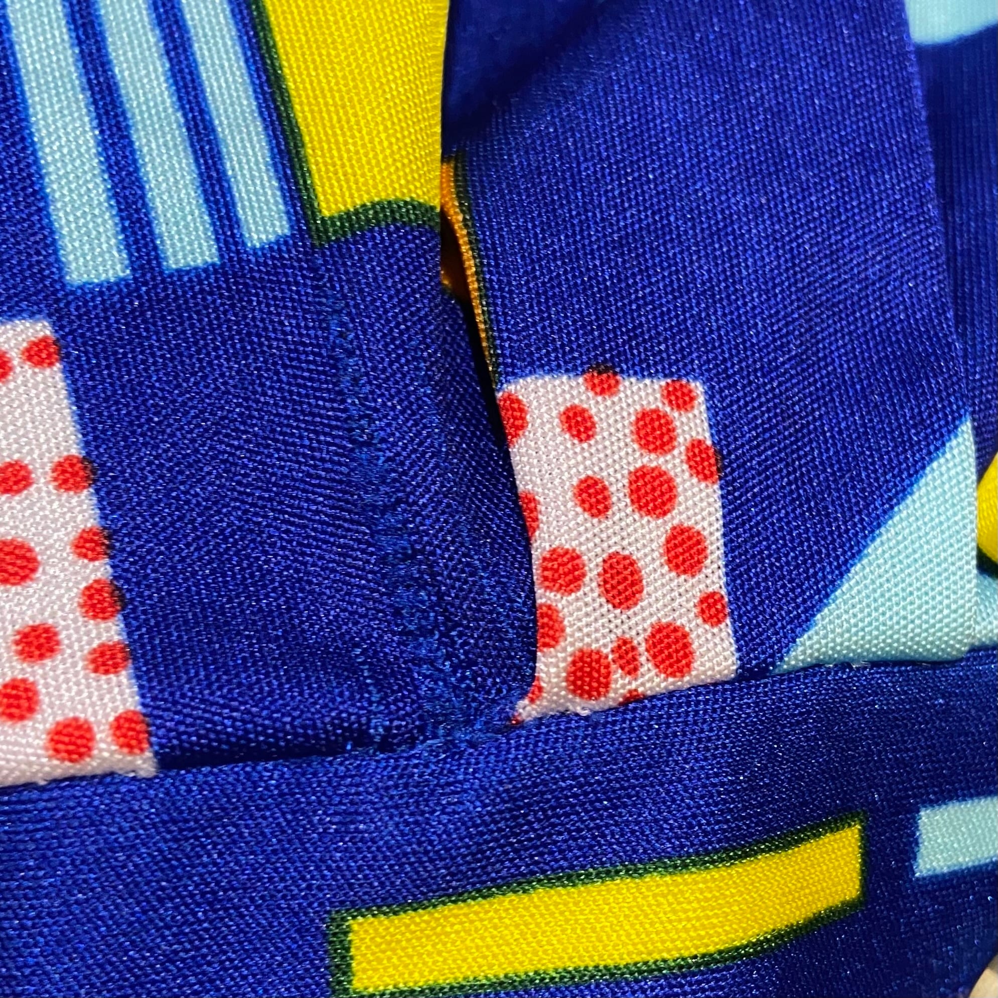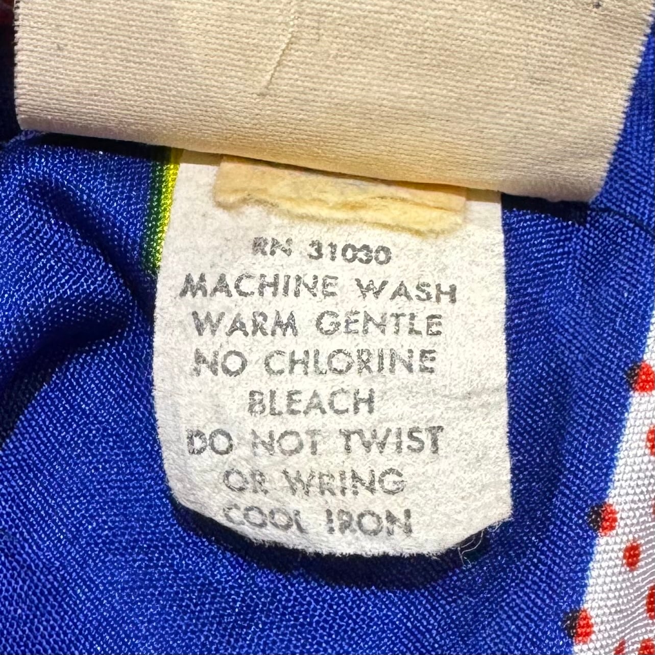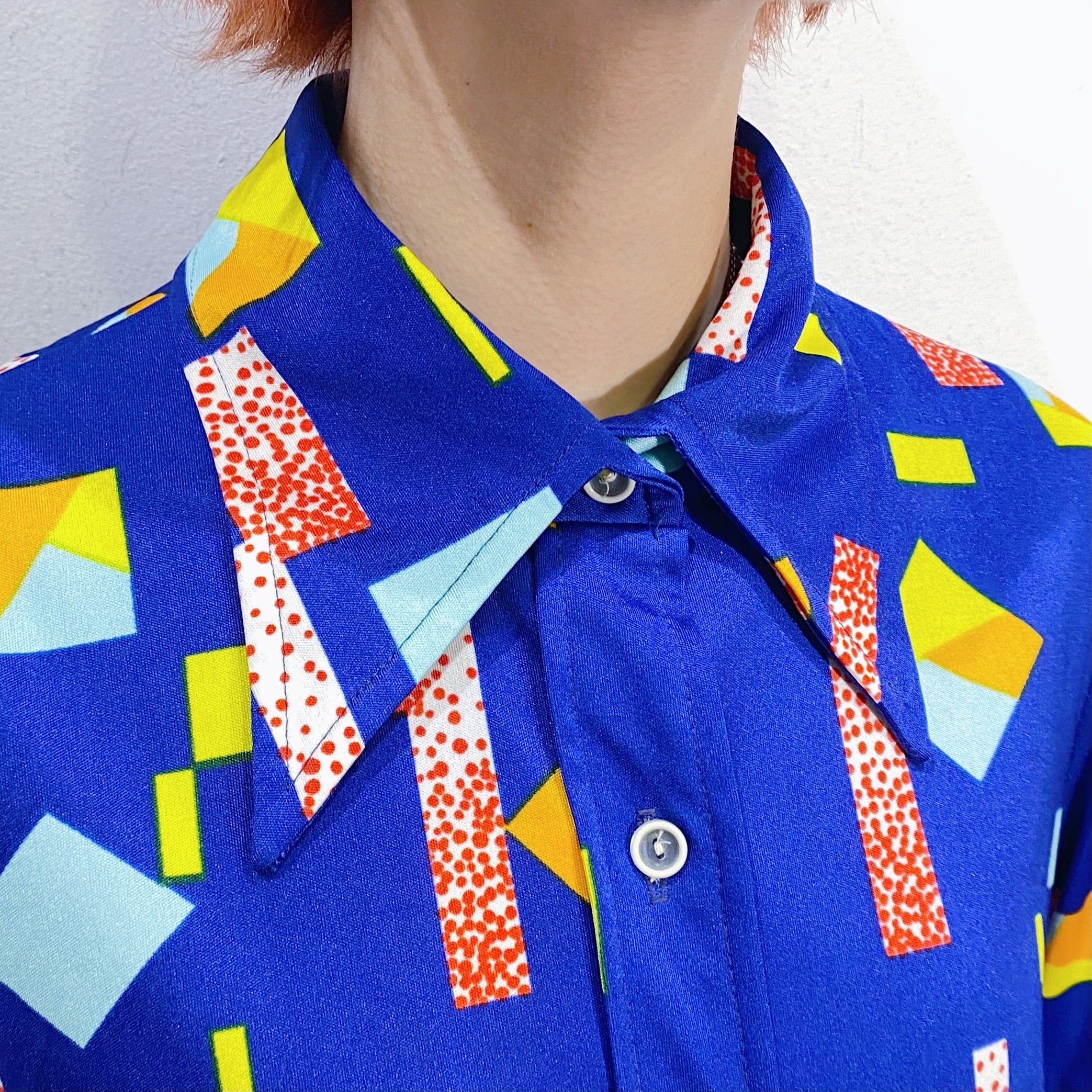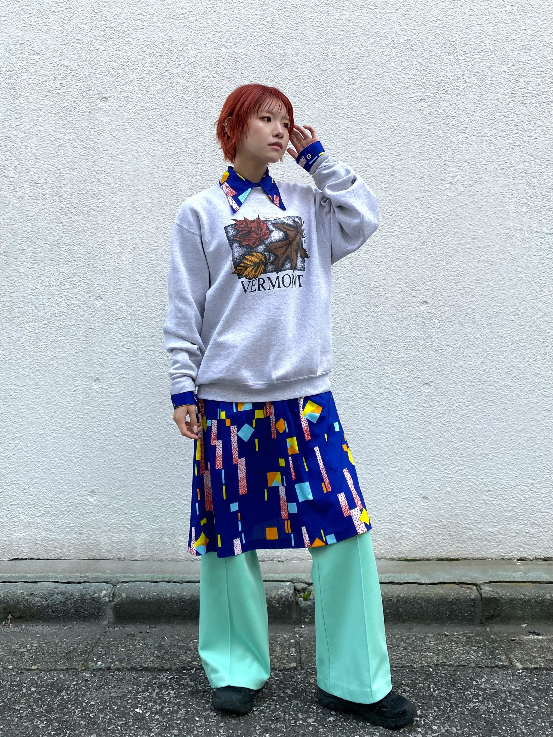 ブルーにカラフルな色合いで、いかにも古着らしい唯一無二の存在感があります。