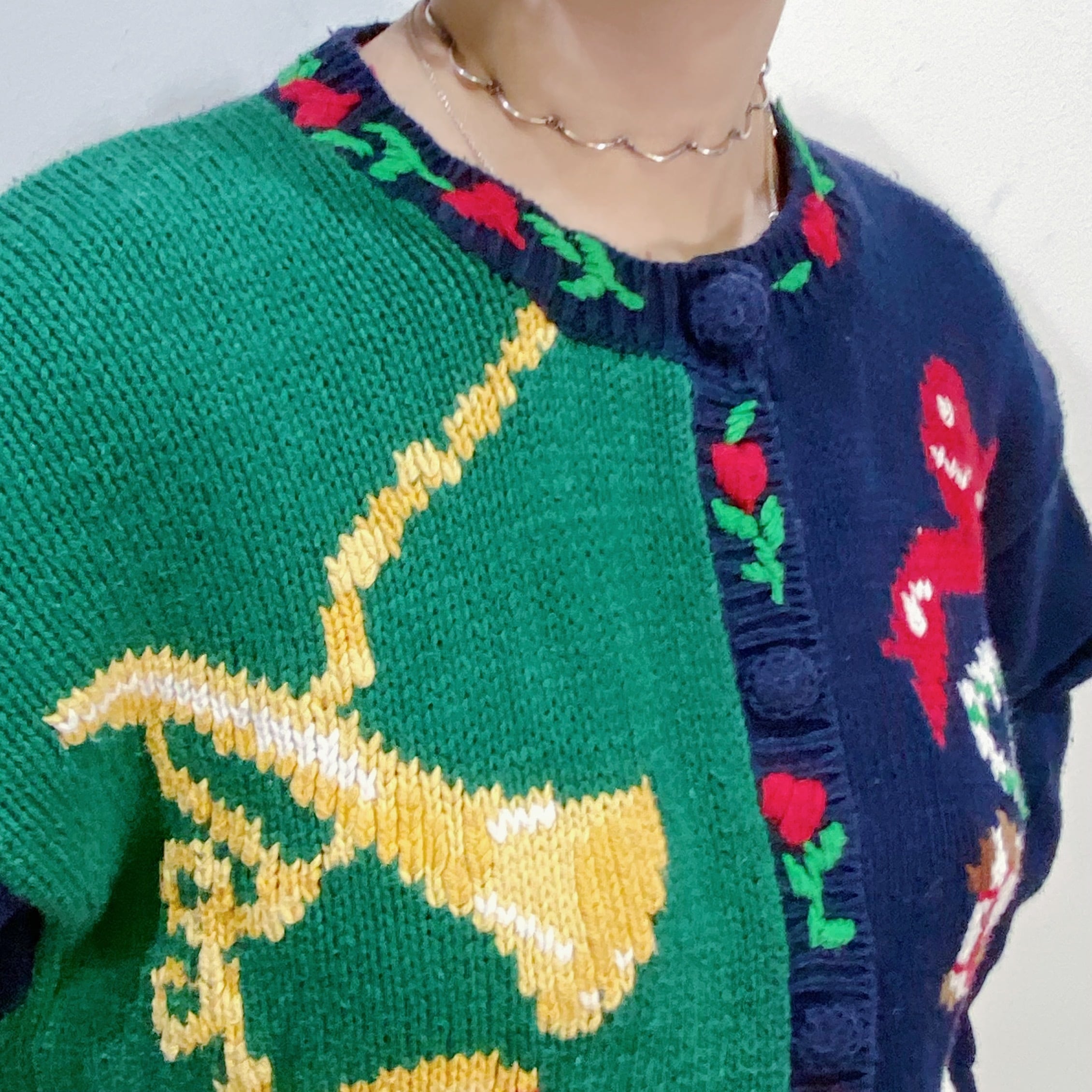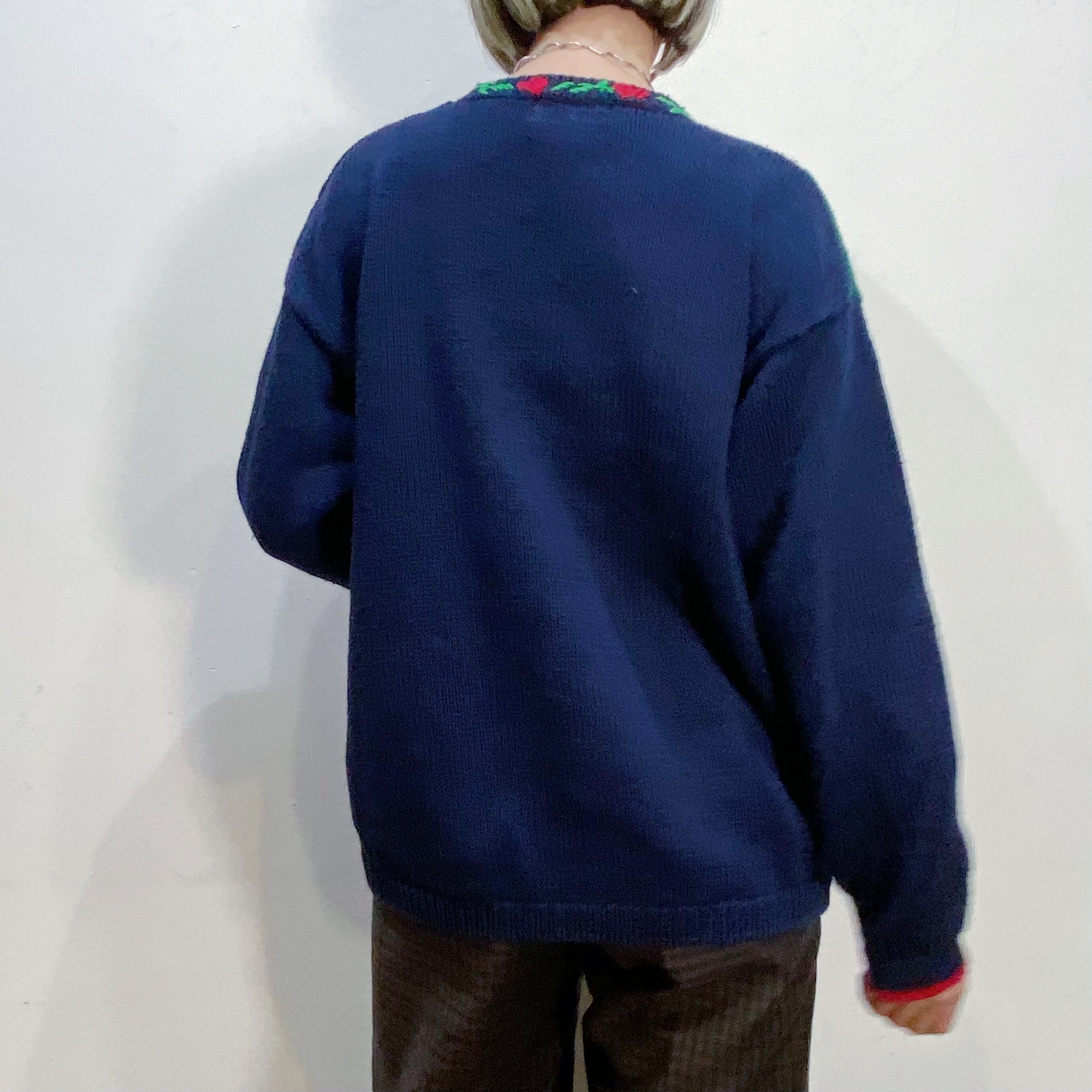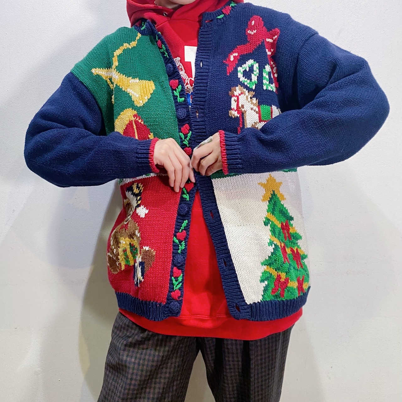 ネイビーベースで着やすそうな、クリスマスニットカーディガンです。