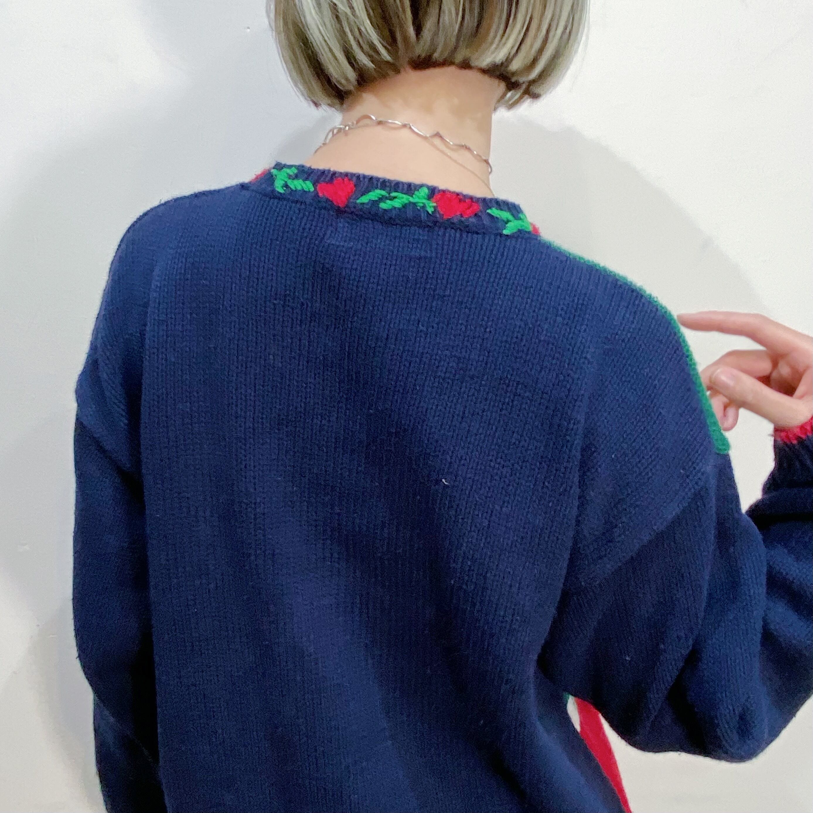 キラキラの糸など使われていなく背中も比較的シンプルで、デイリーに使いやすいクリスマスニットだと思います。