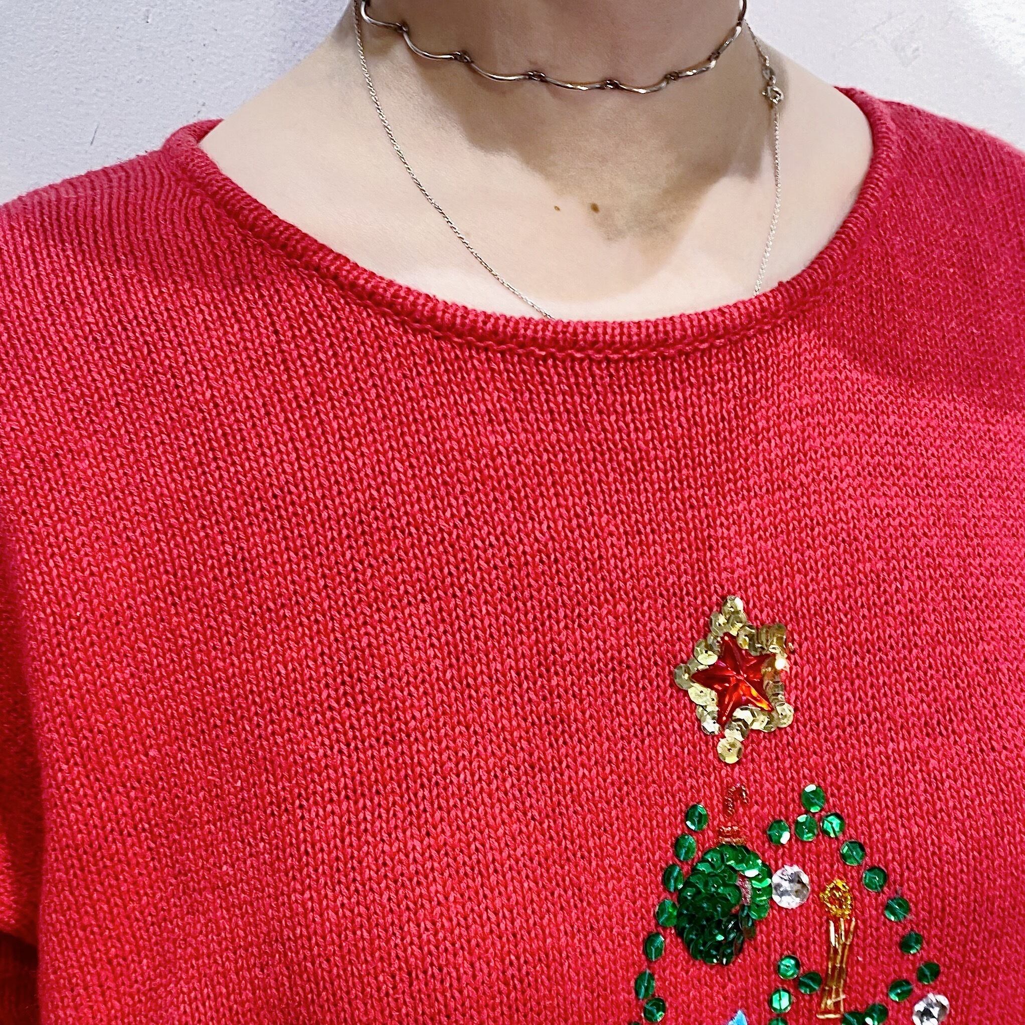 以外に控え目なキラキラ感なので、普通に着てて日常にすっとなじんでくれそうなクリスマスニット!