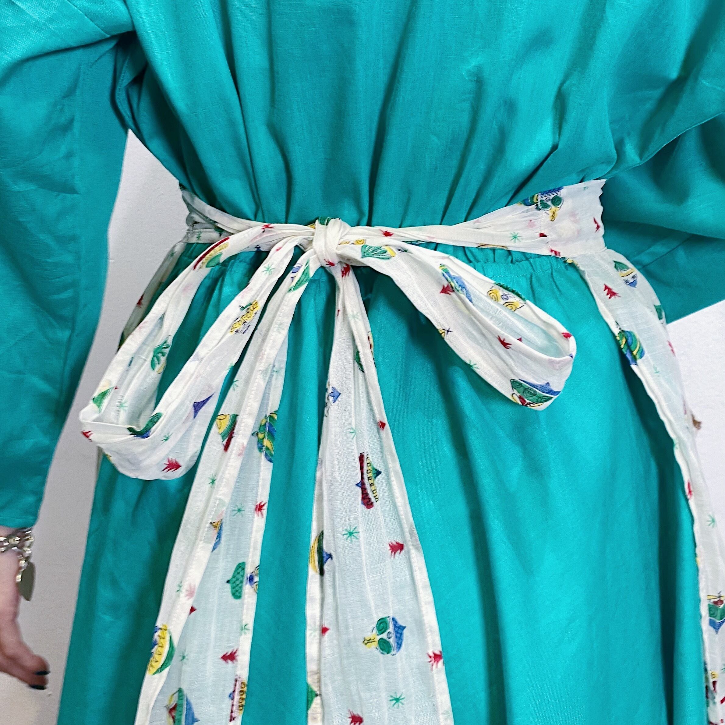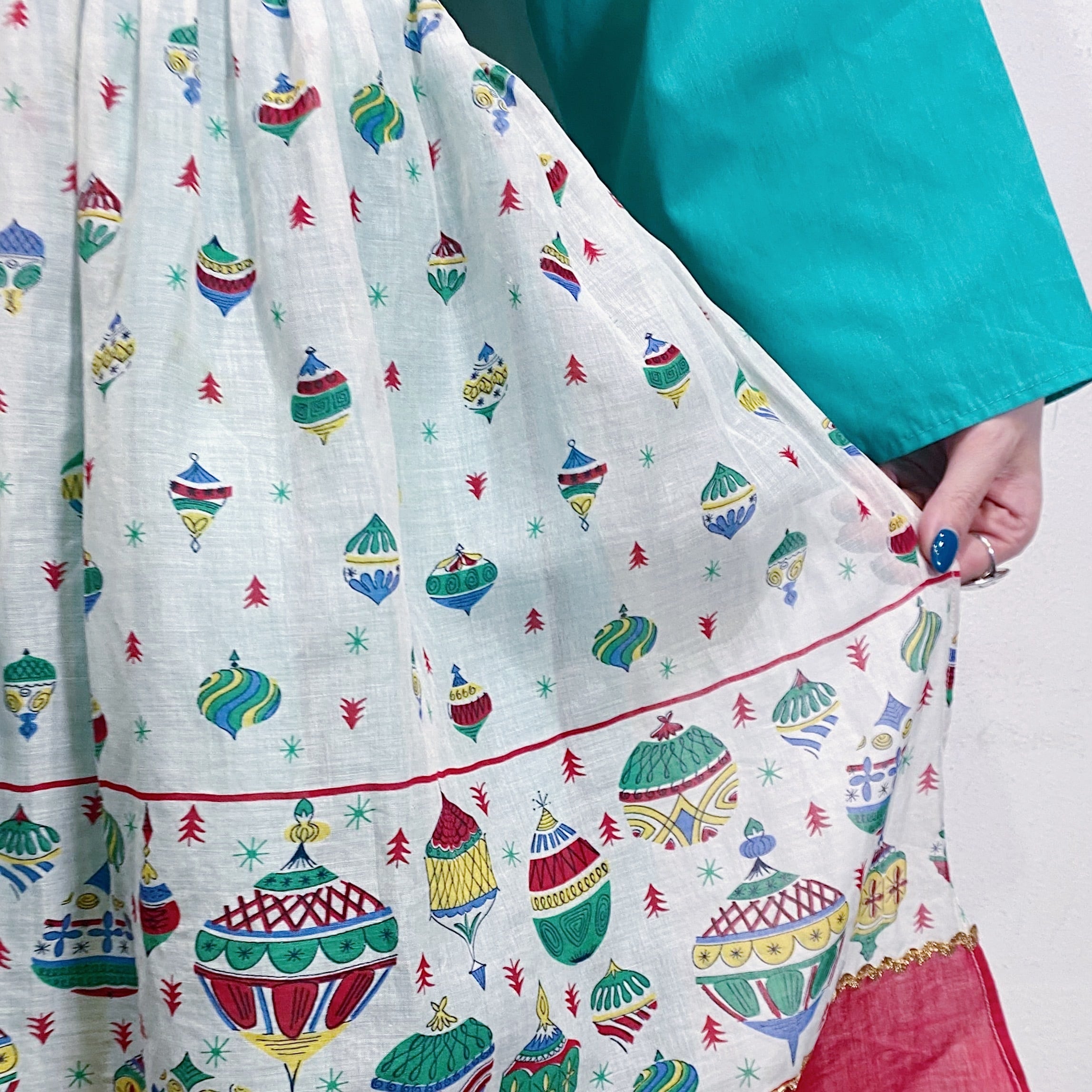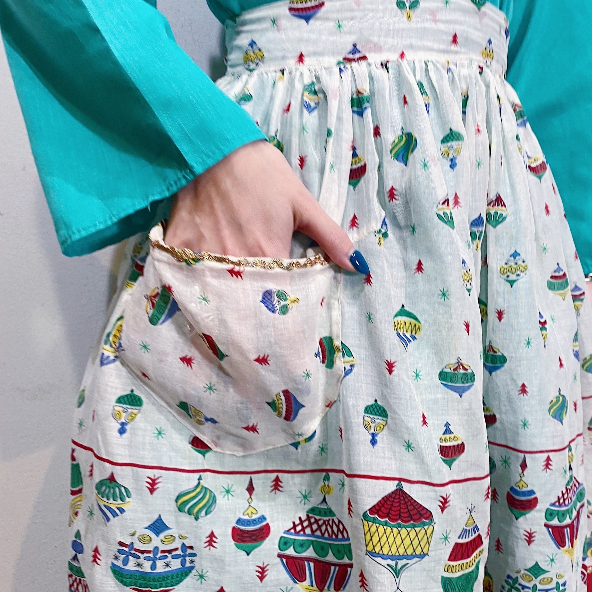 クリスマスのオーナメント柄が可愛い、50年代頃のハーフエプロンです。