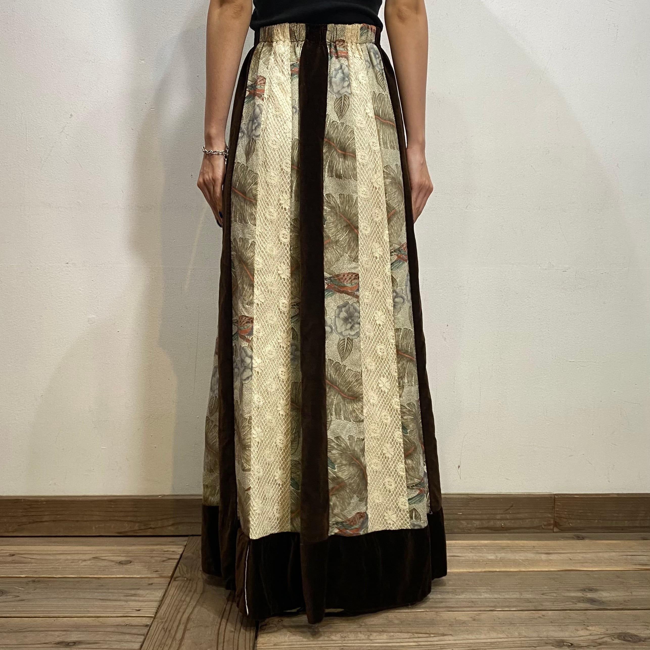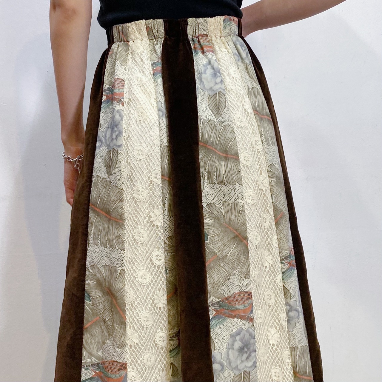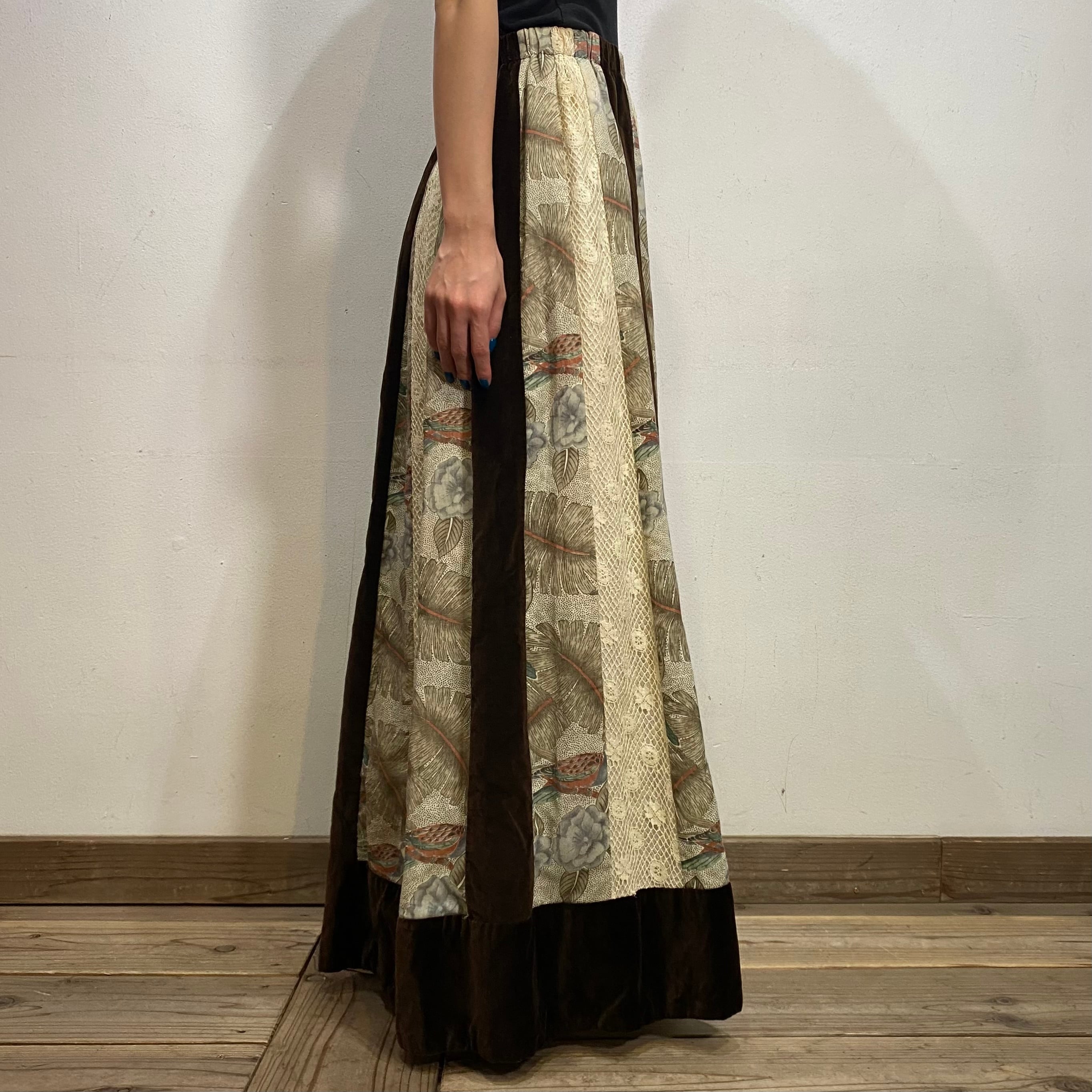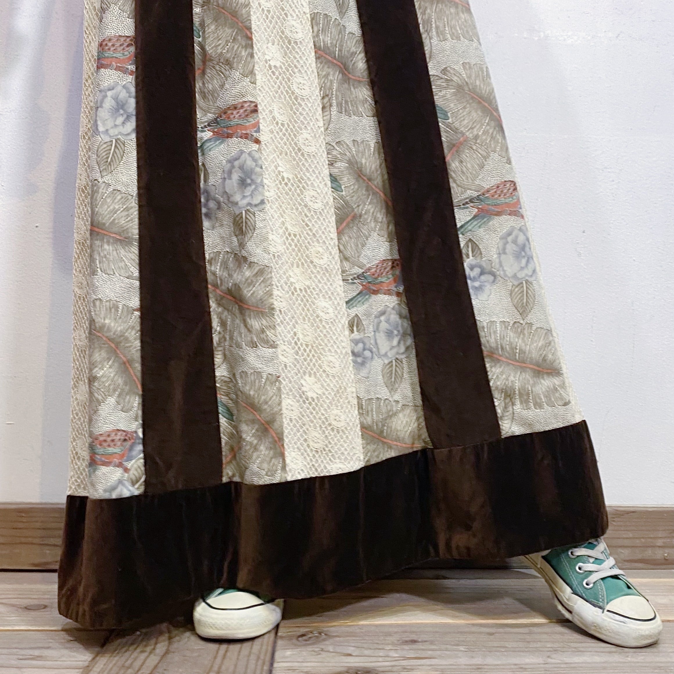 レースとベロアの組み合わせが可愛い、70年代のパッチワークスカートです。