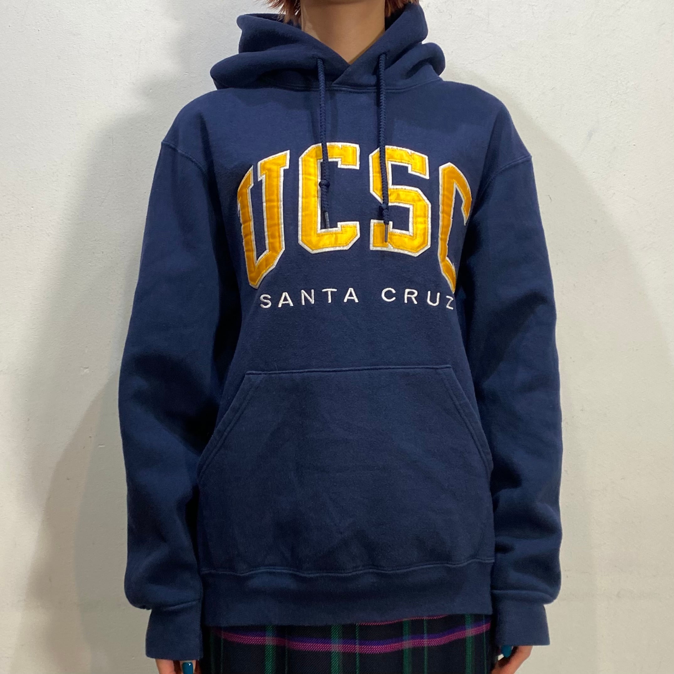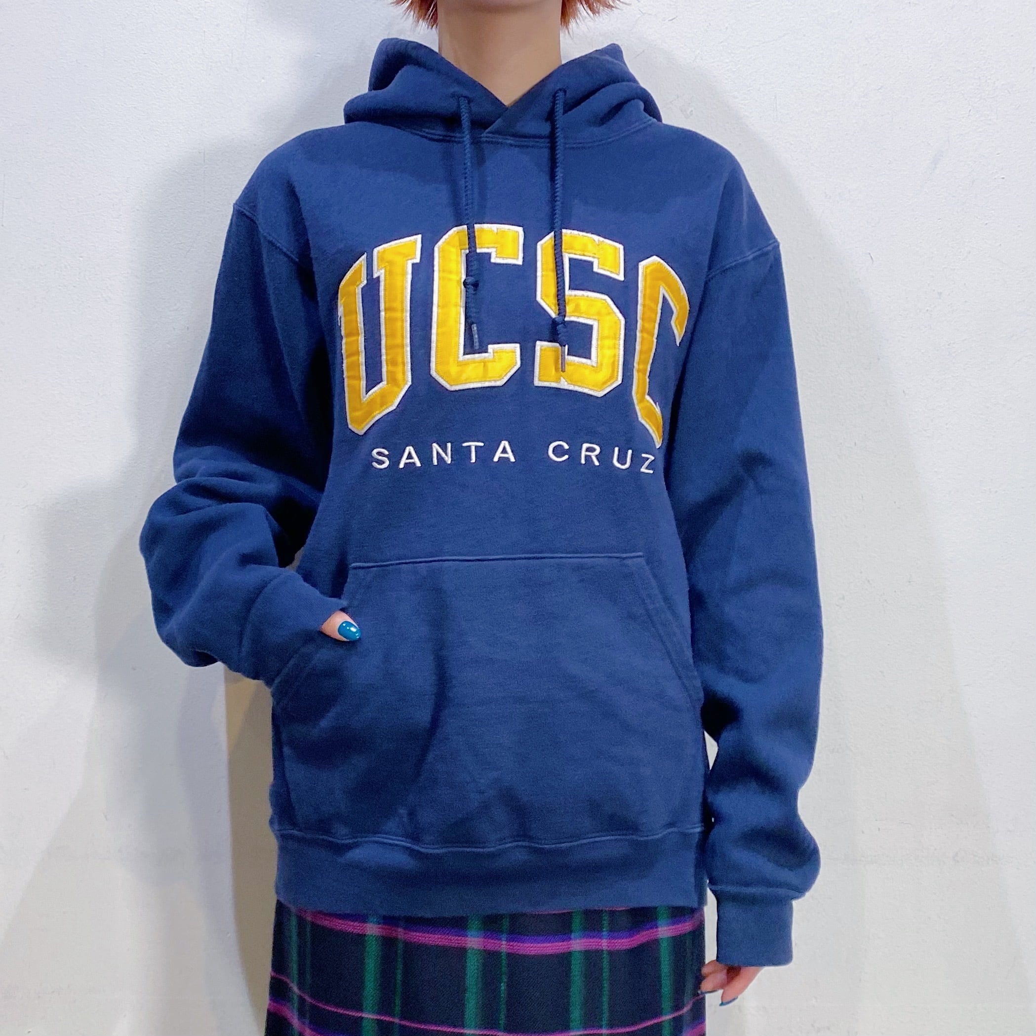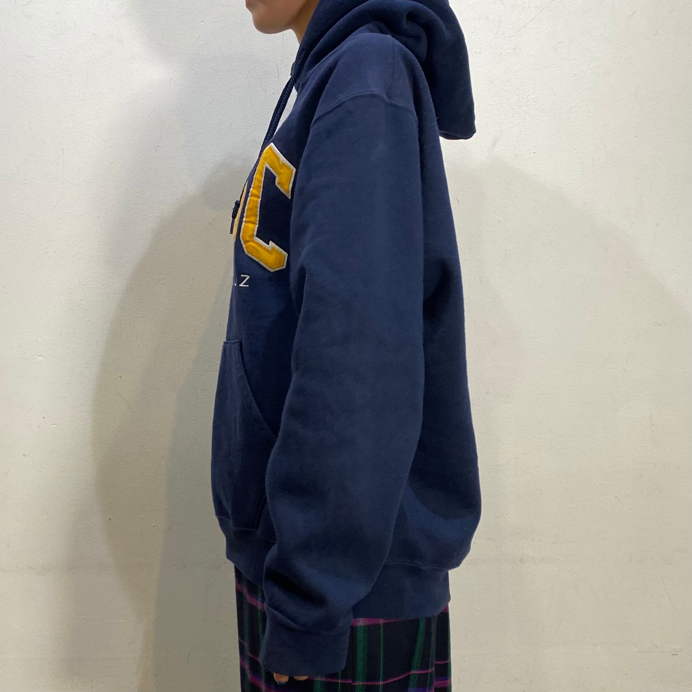 ネイビーべースにイエローのロゴが映える、フーディーです。
