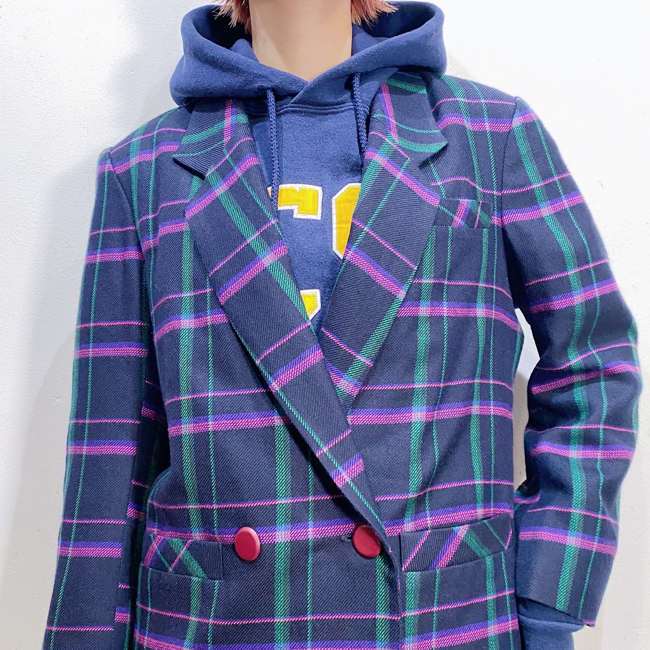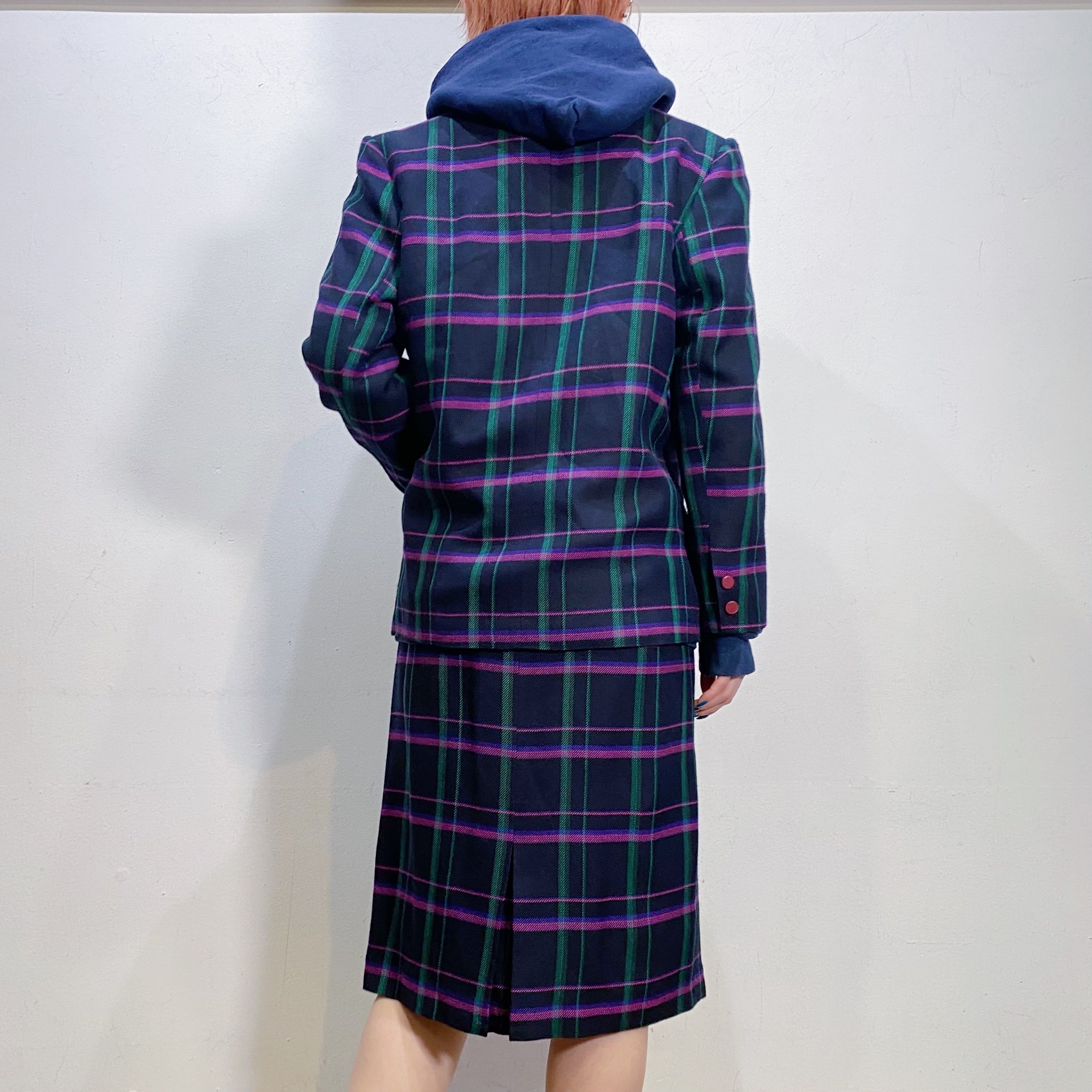 ピンクやパープル、グリーンのチェックが可愛い、80年代のセットアップです。