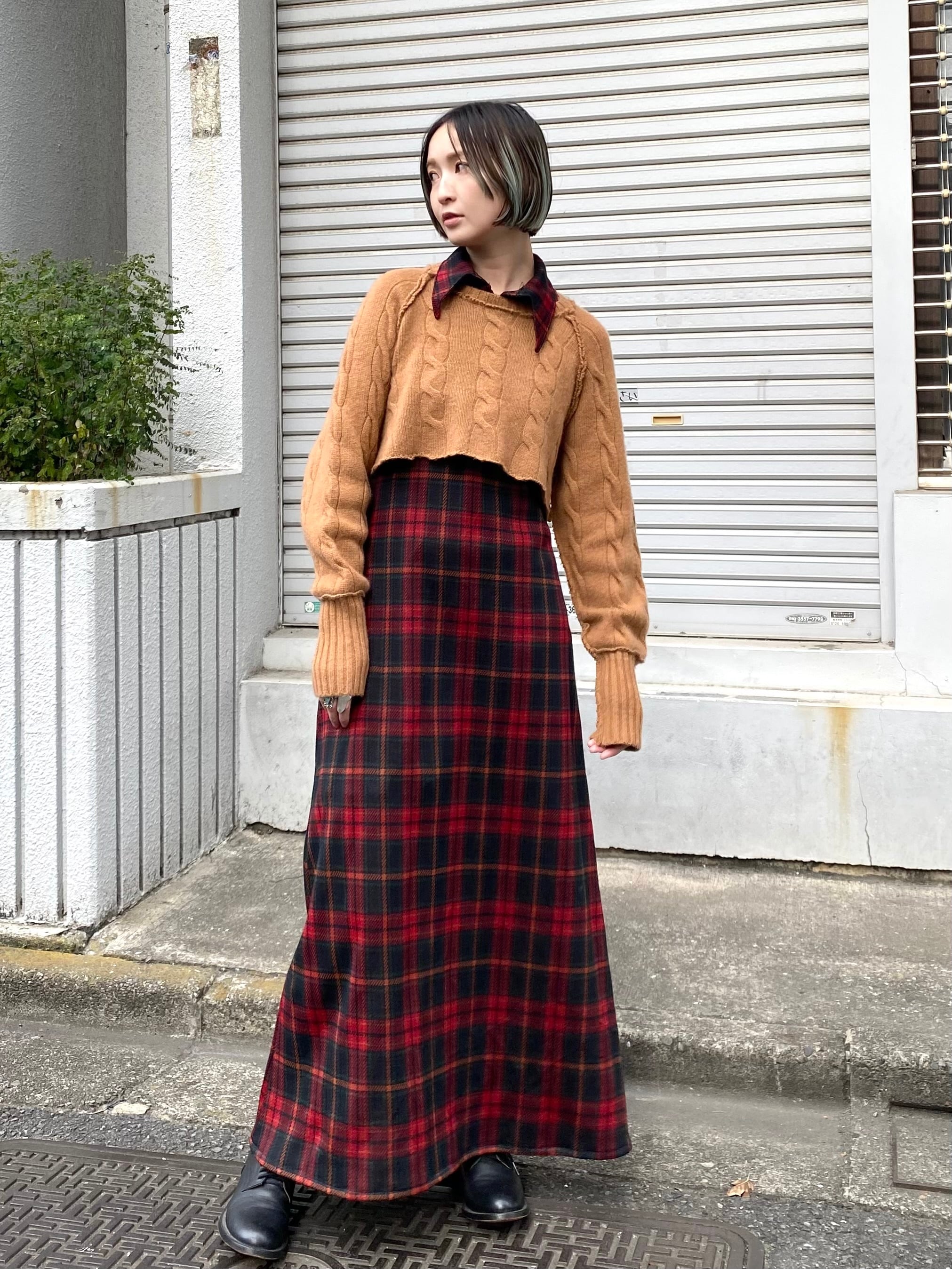 70sらしい大きな襟がポイントなので、着用写真のように上からニットやスウェットなどをレイヤードして襟を出したスタイルもおすすめです。