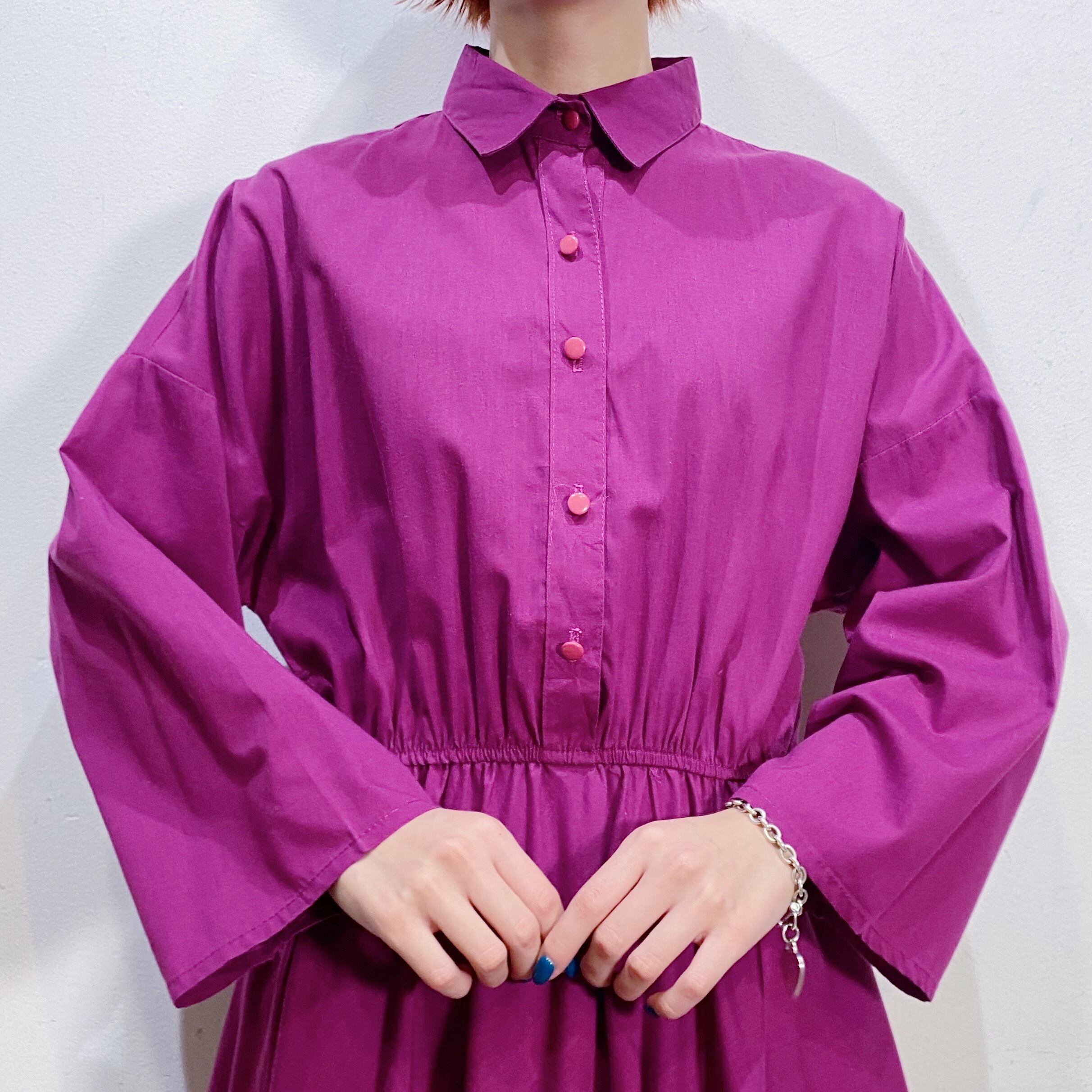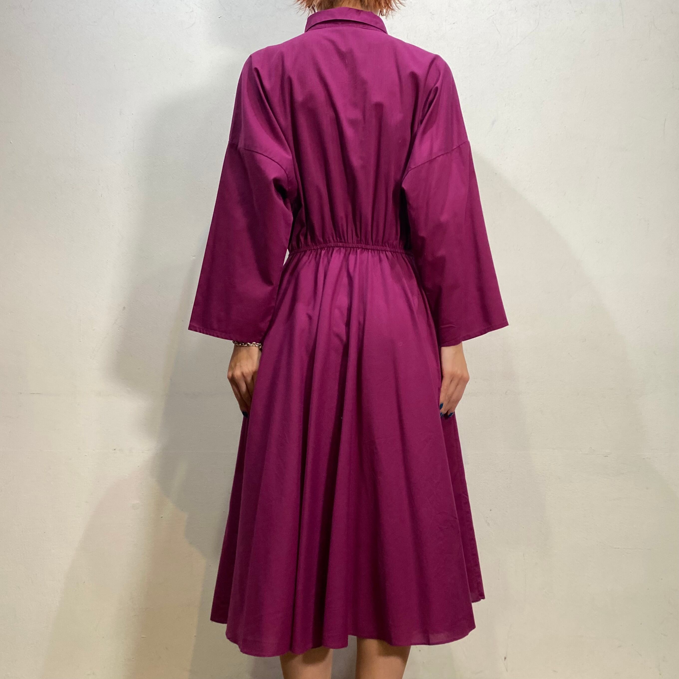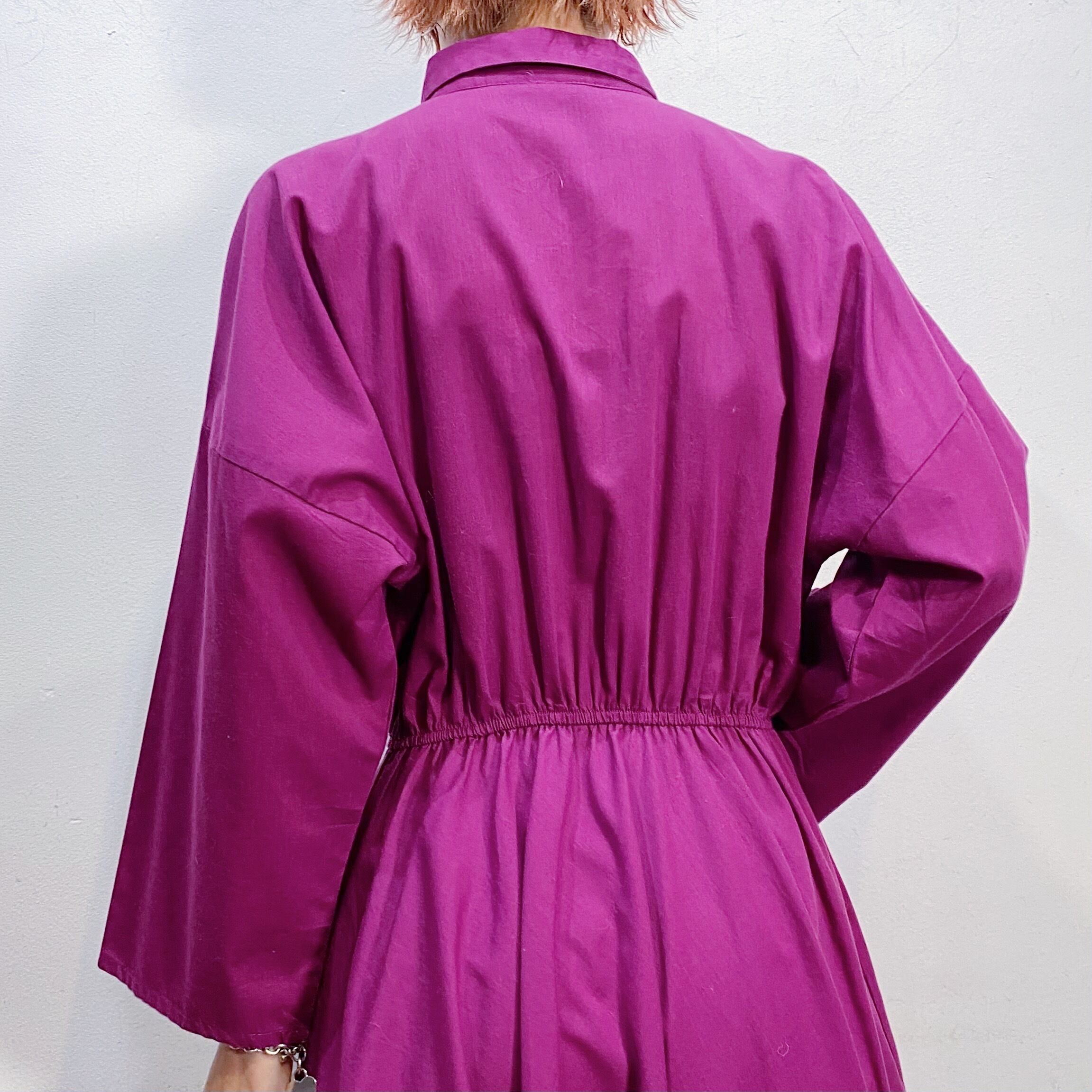 パープルカラーが可愛い、80年代のシャツワンピースです。