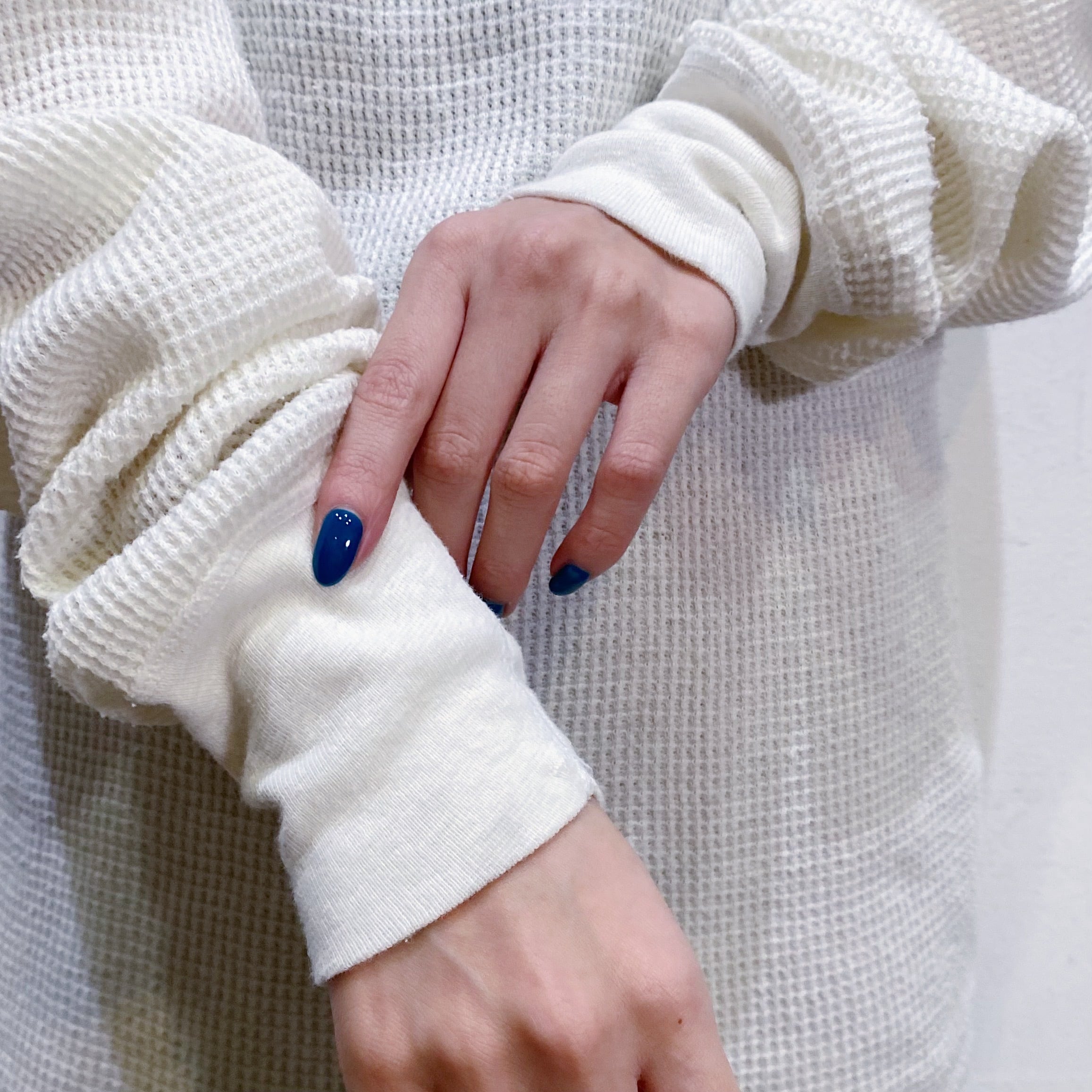 程よい首回りの開き加減と、ぽてっとしたボリュームあるお袖のシルエットが可愛いです。