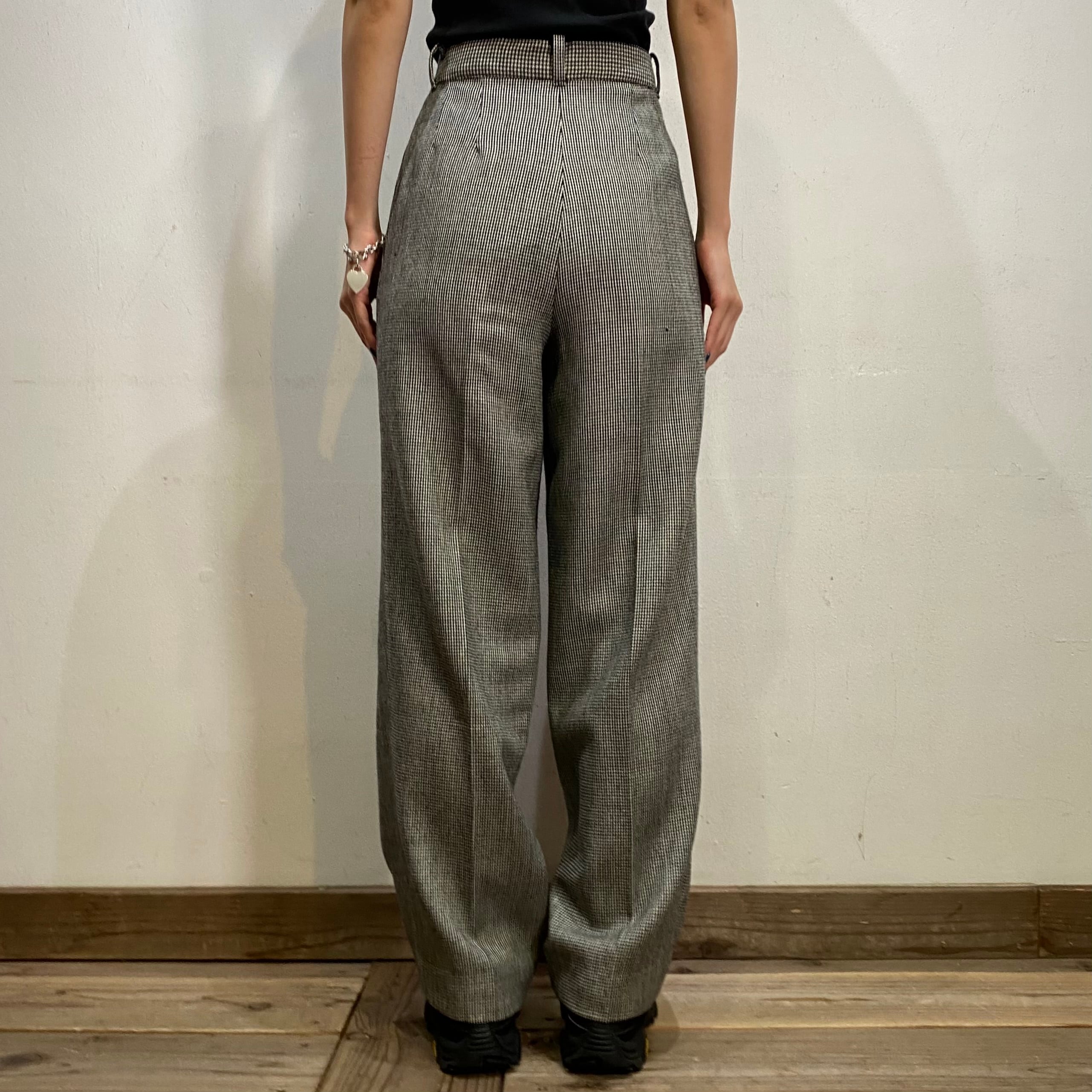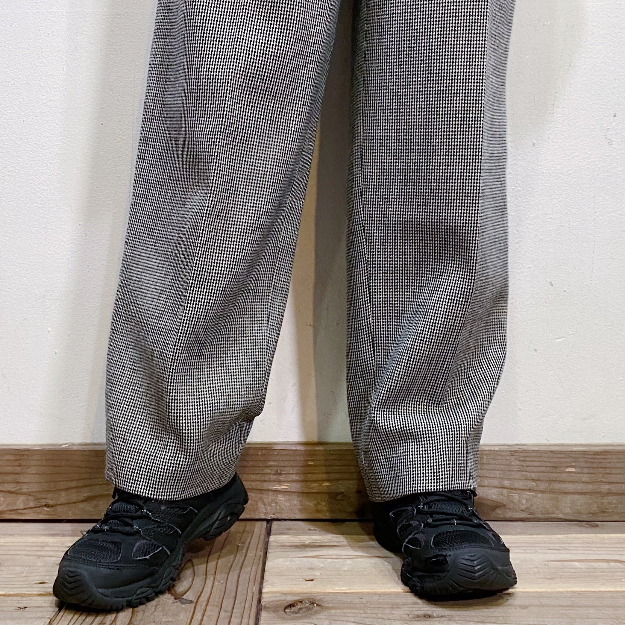 モノトーンカラーのチェックで着こなしやすい、スラックスパンツです。