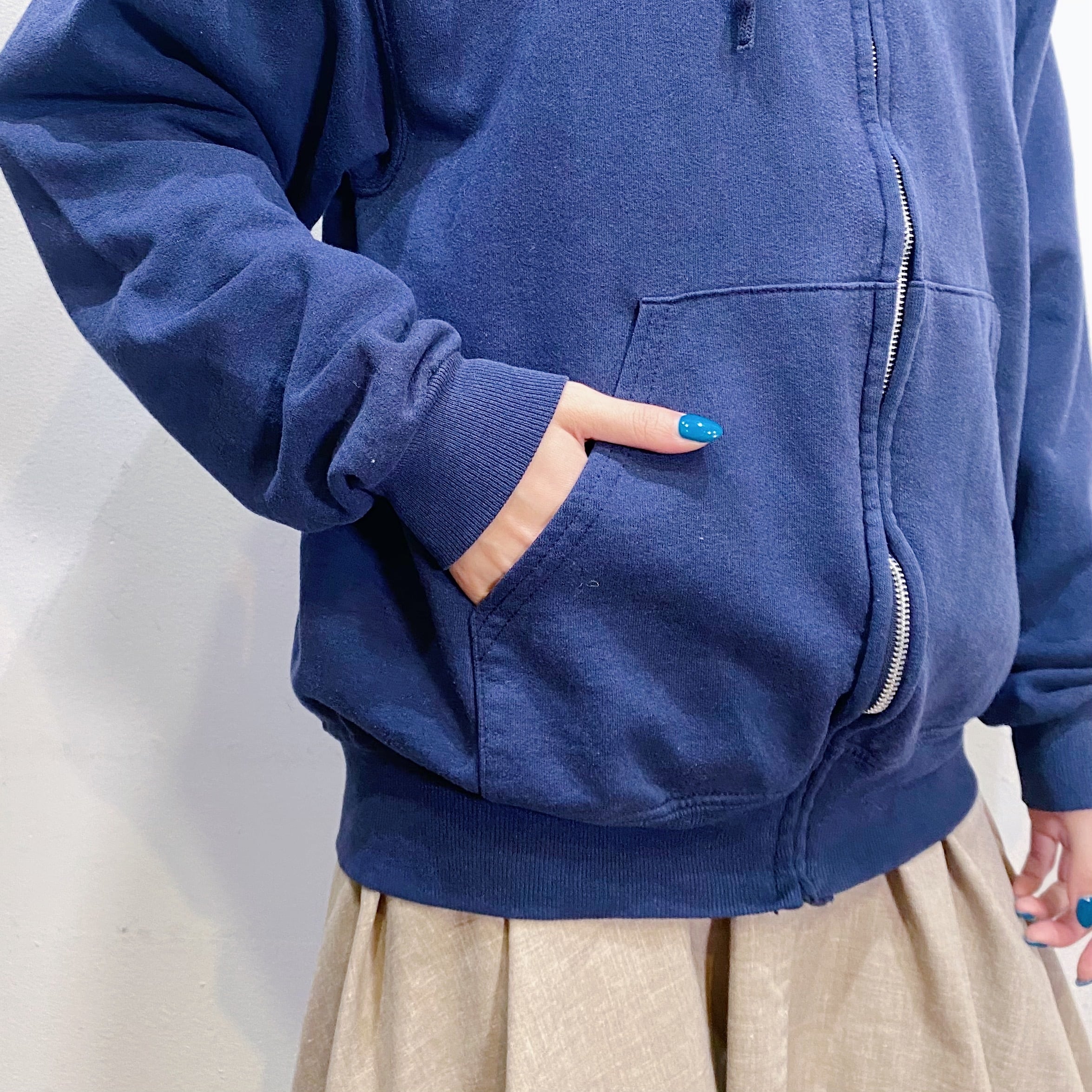 ネイビーベースで着こなしやすい、90年代のジップアップフーディーです。