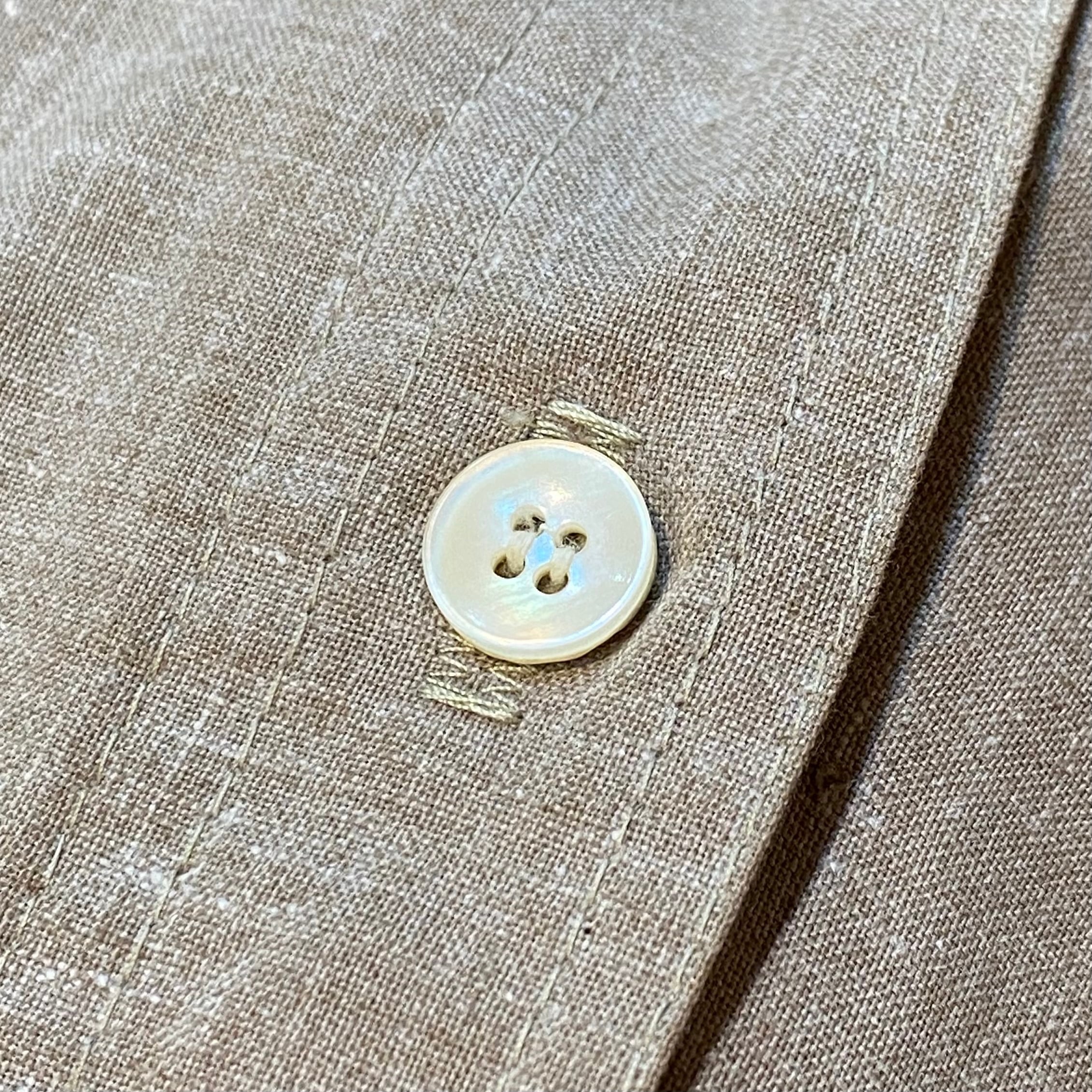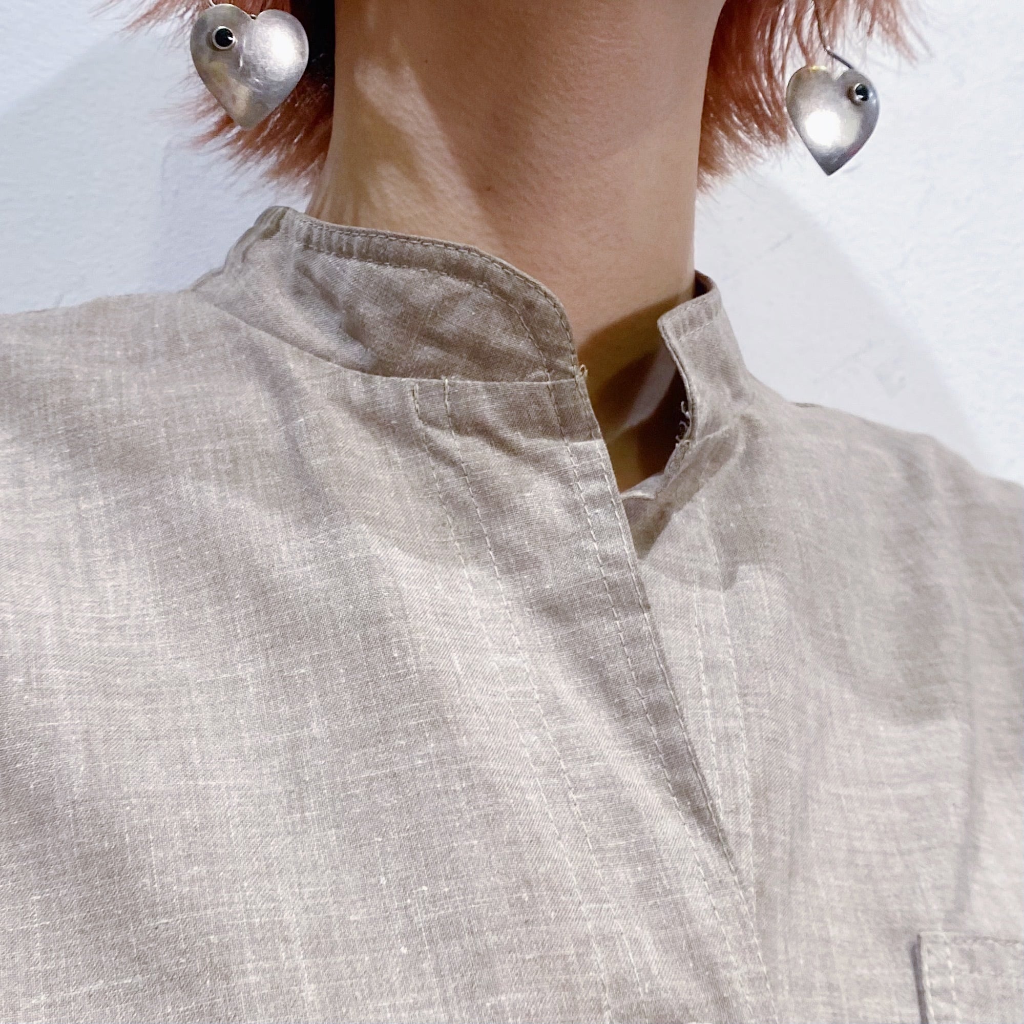 襟はスタンドネックになっておりますが、折り曲げて開襟にして着てもまた違った印象で楽しめます。