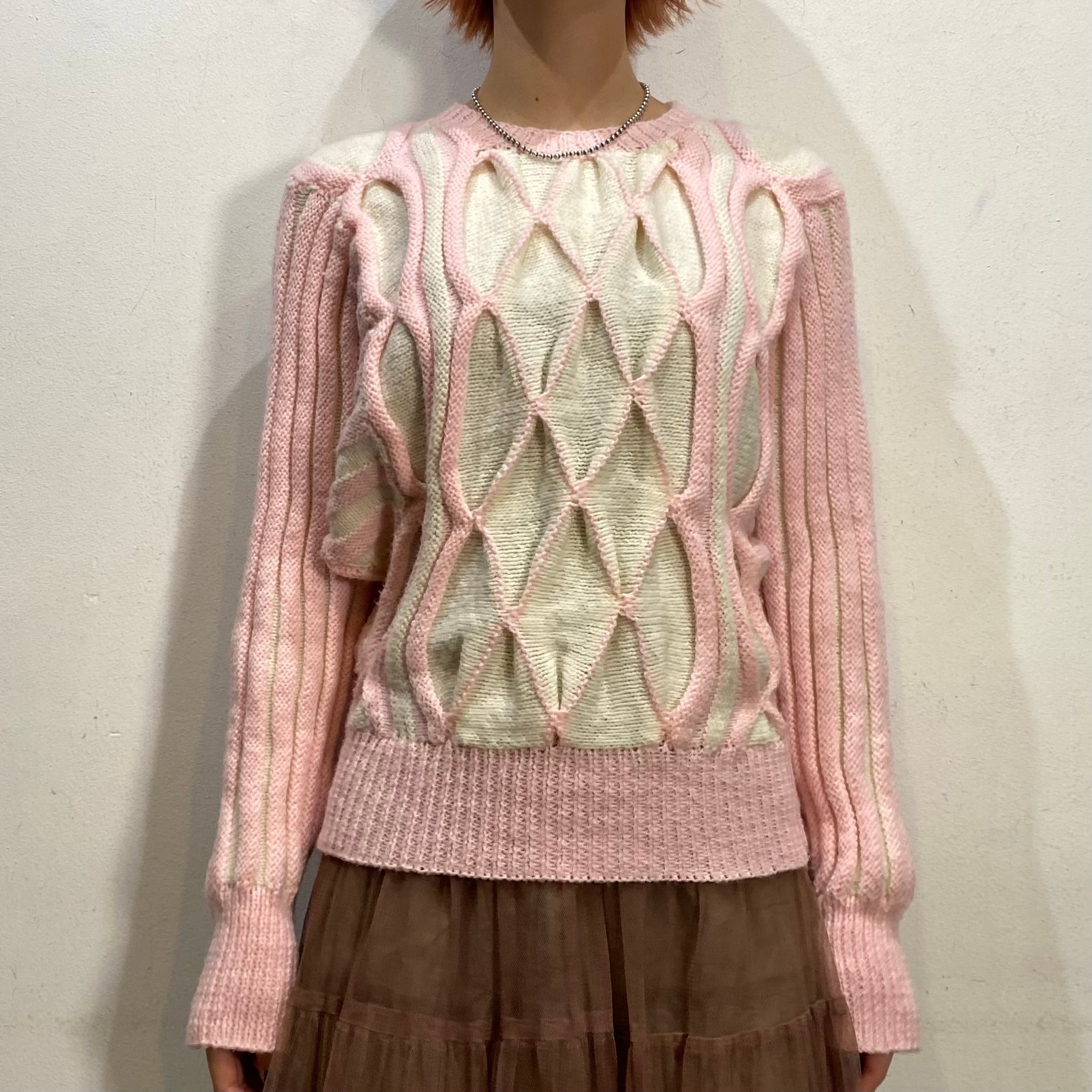 立体的な編み模様がとっておきに可愛い、80年代のニットセーターです。