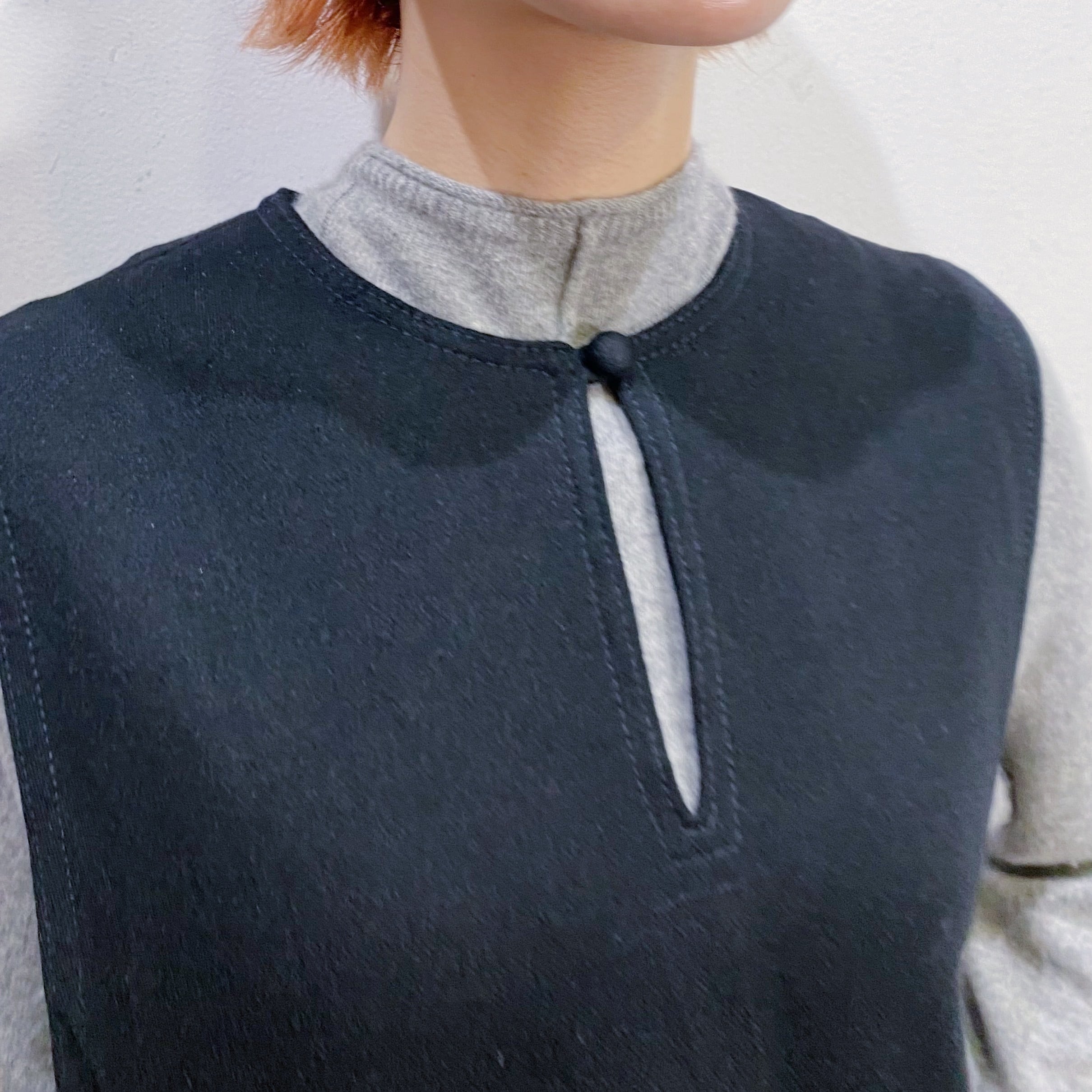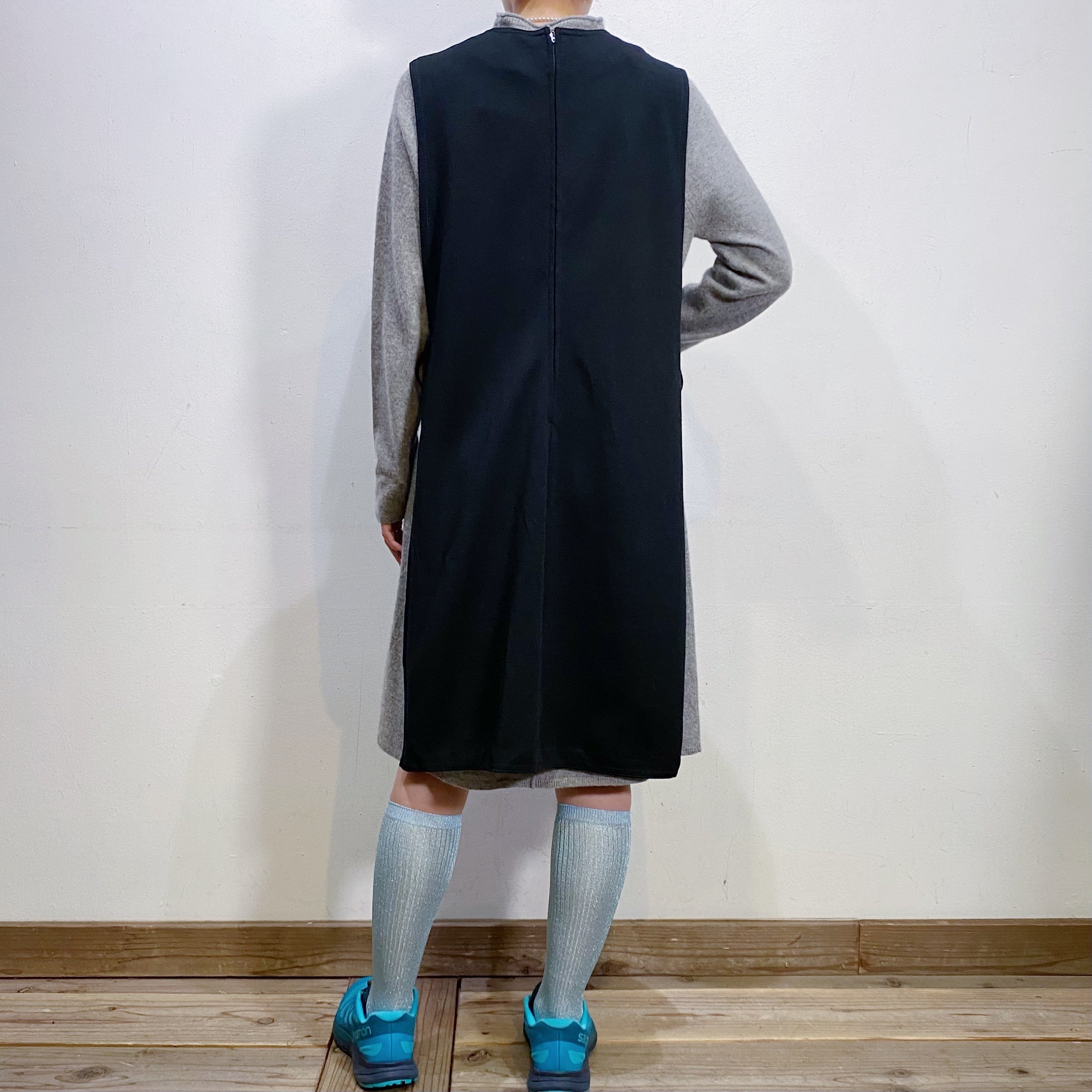 着用写真のようにワンピースの上に重ねても、パンツスタイルなどいつものコーディネートの上に重ねて印象を変えて楽しめますよ。
