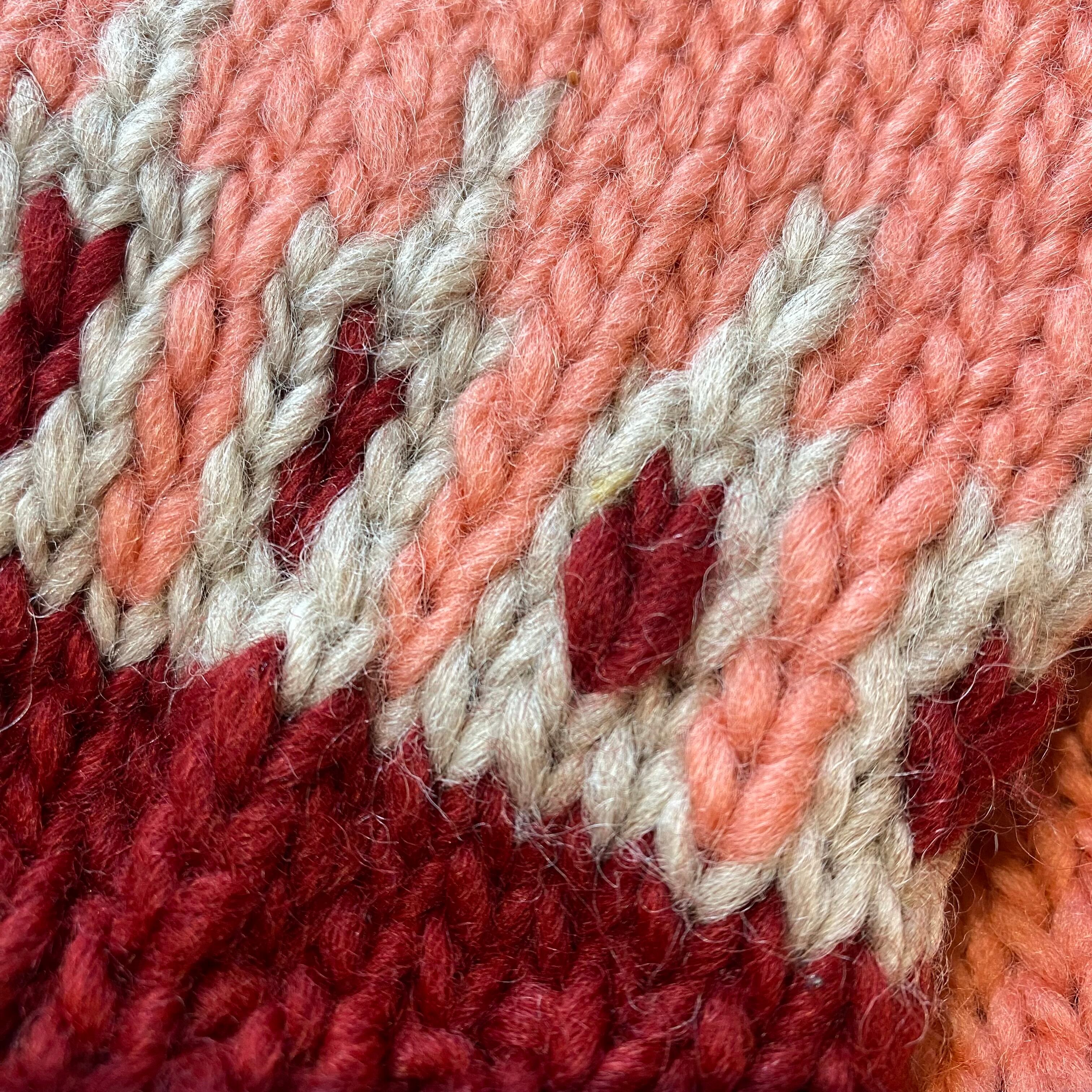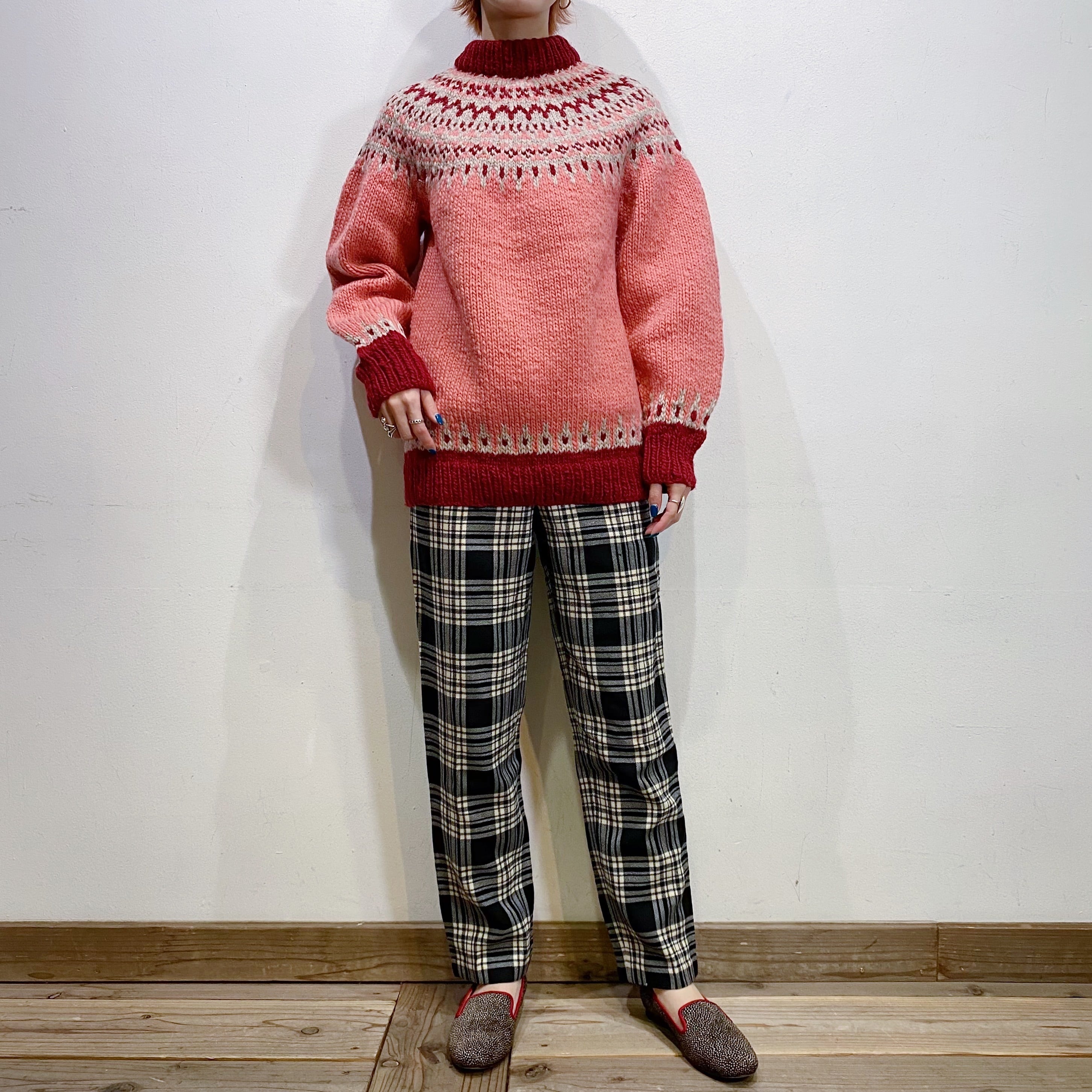 ノルディックセーターの中でも少し珍しい、こっくりミルキーなピンク色の一枚。