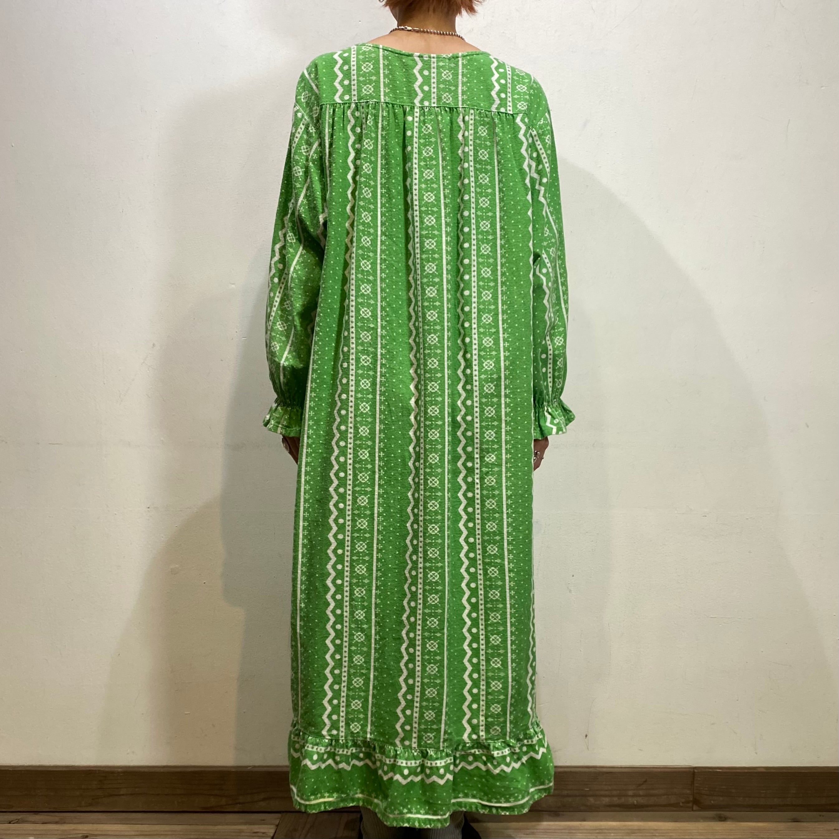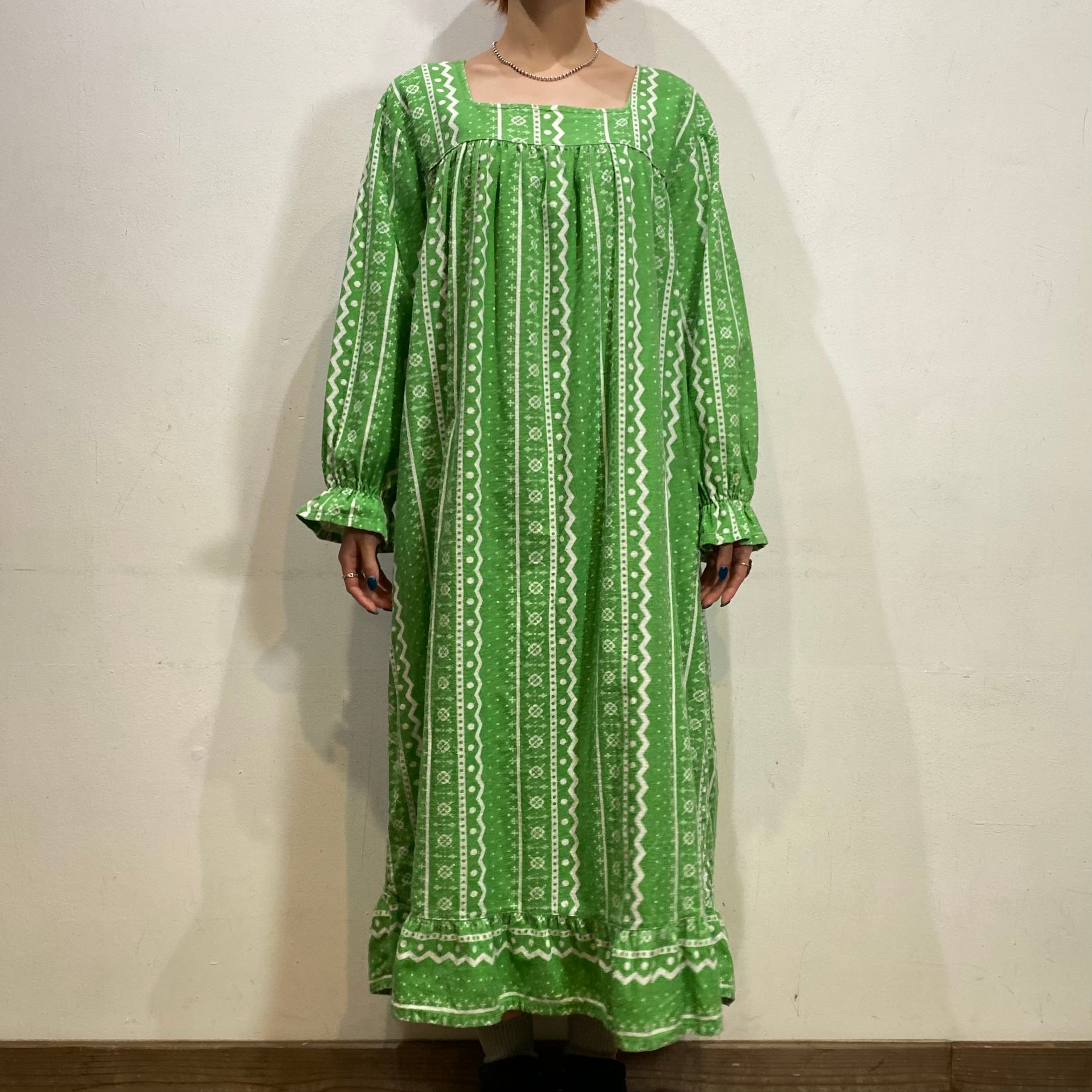 70-80s light green long smock dress