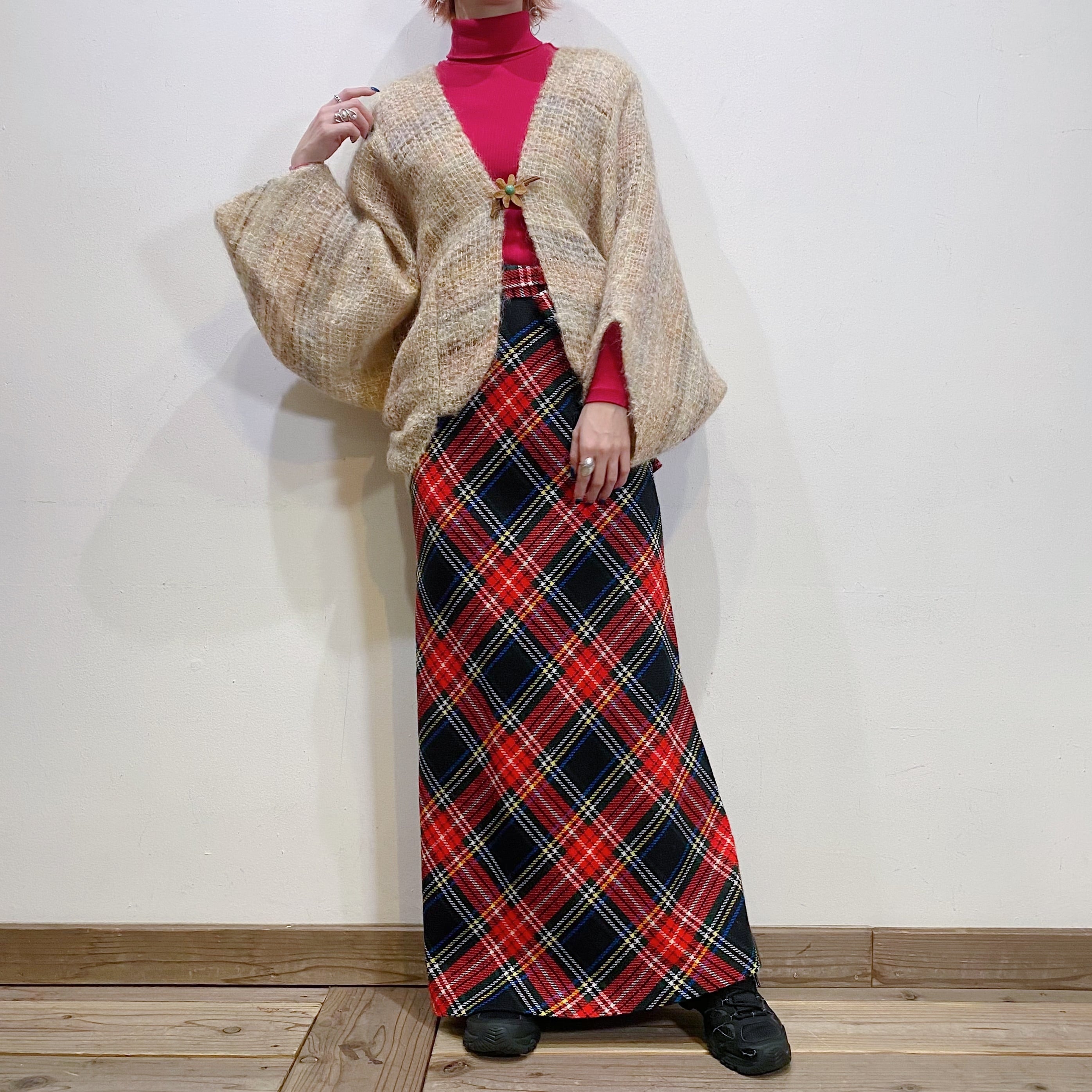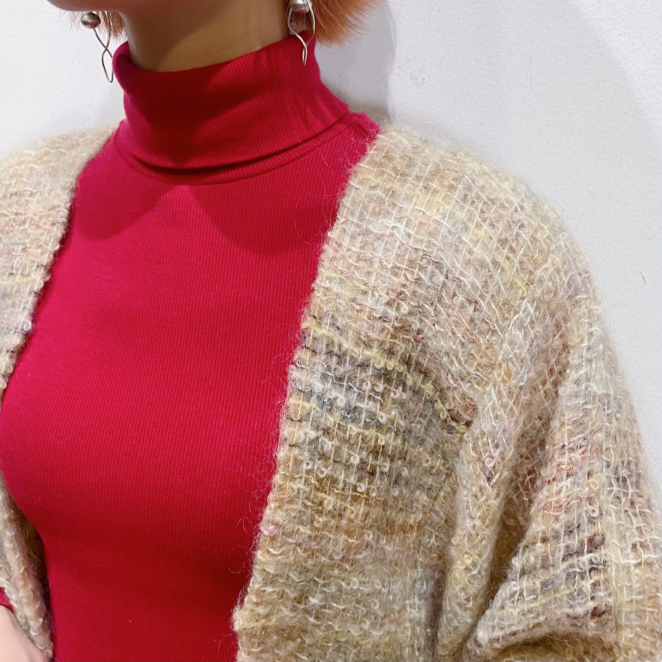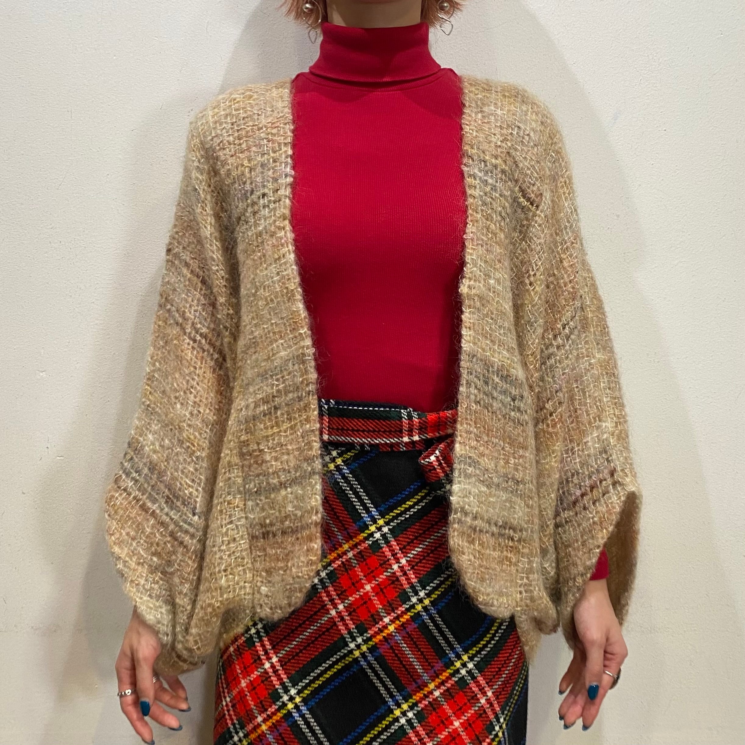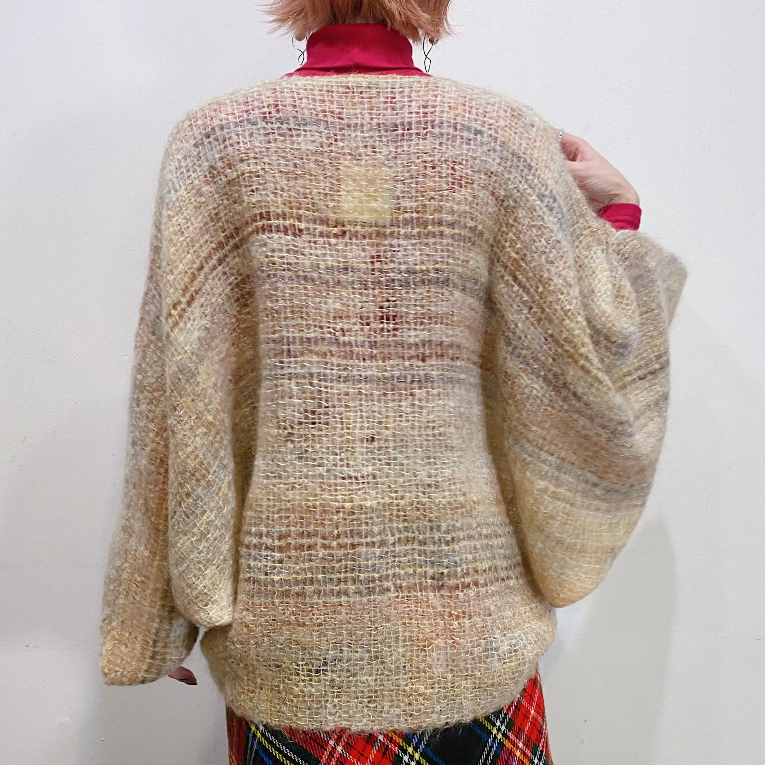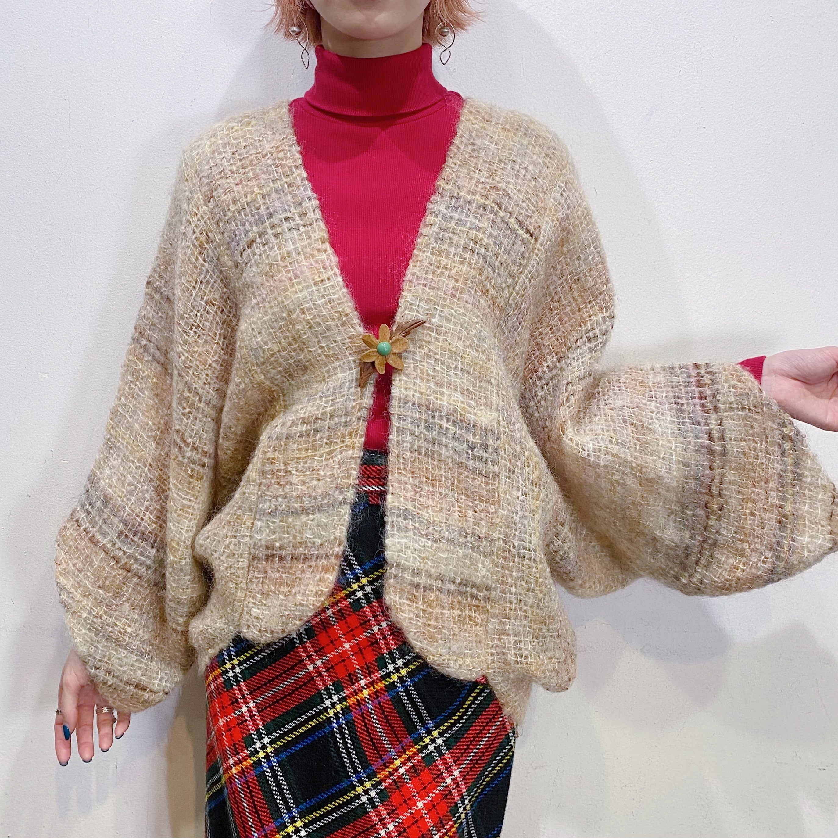 もったりとしたお袖のデザインにふわふわのモヘアニットが可愛い、60年代のカーディガンです。