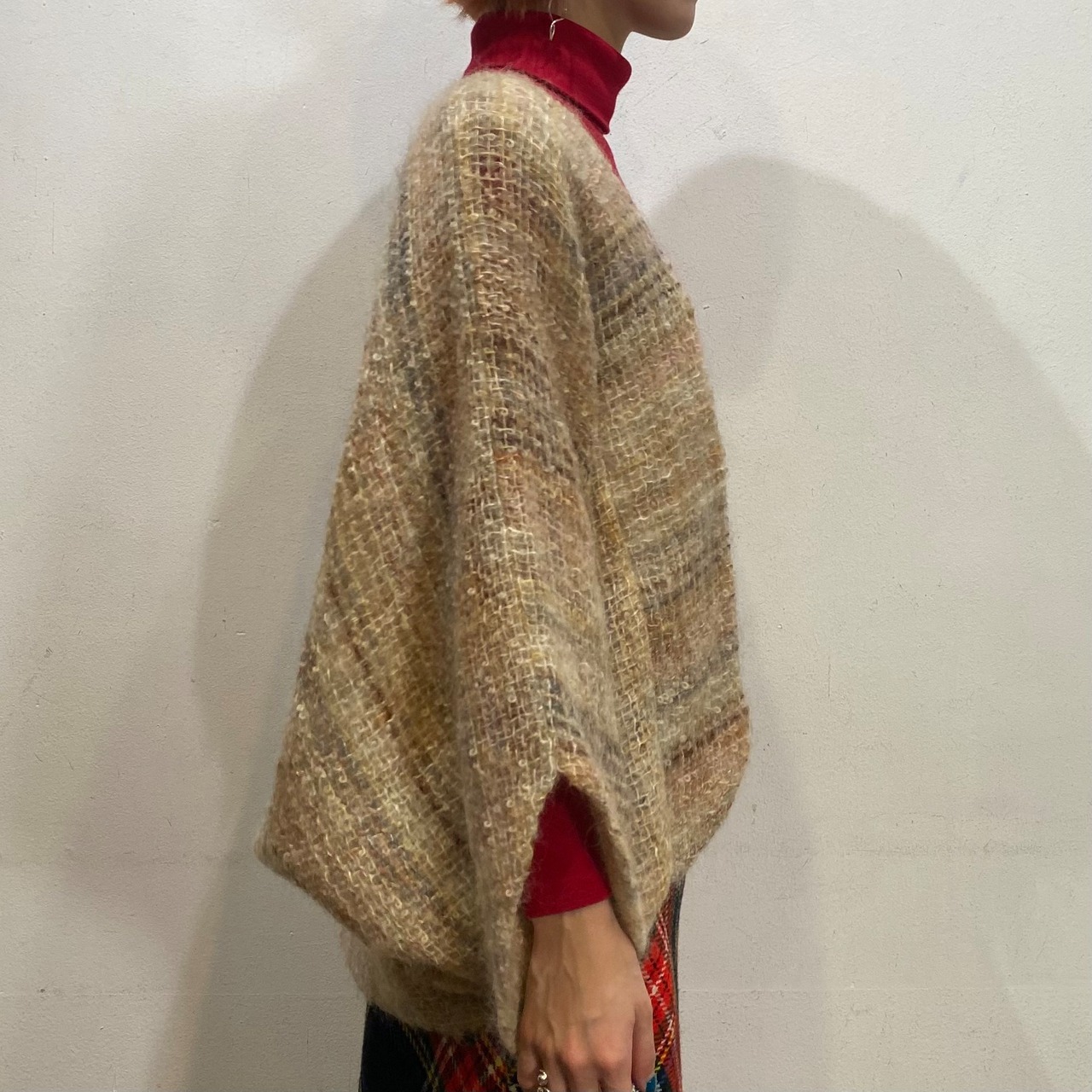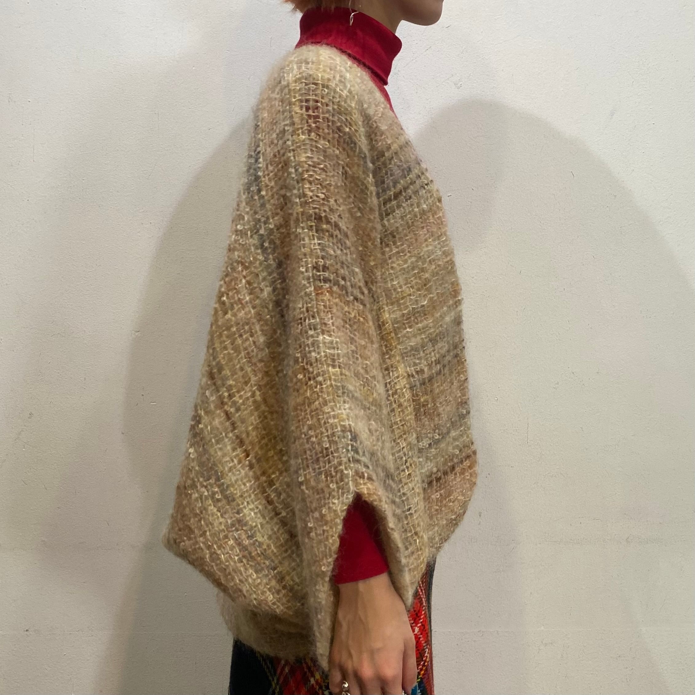 ブラウンからベージュの様々な色がミックスされたニットは温かみがあって、着ても目で見ても暖かいですよ。