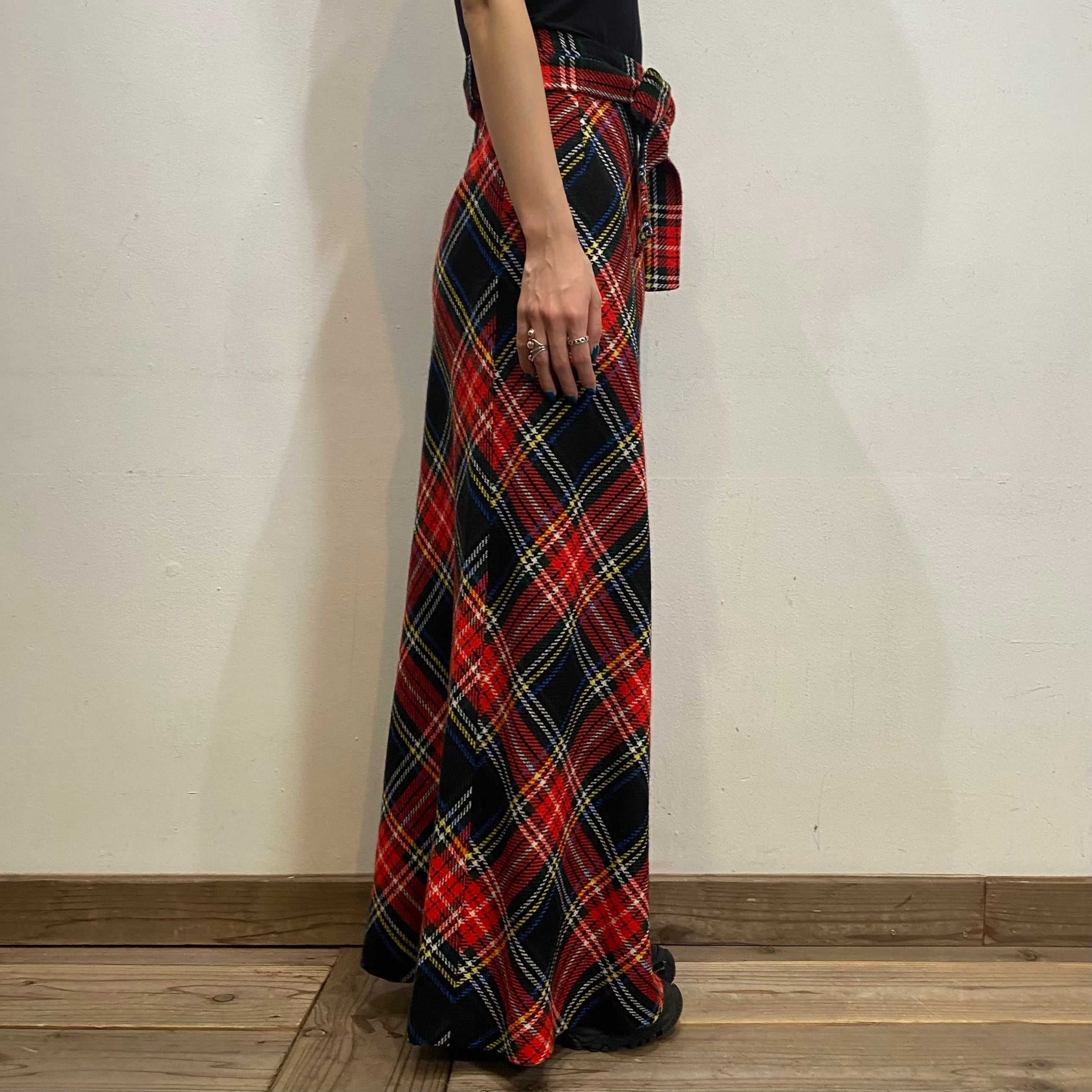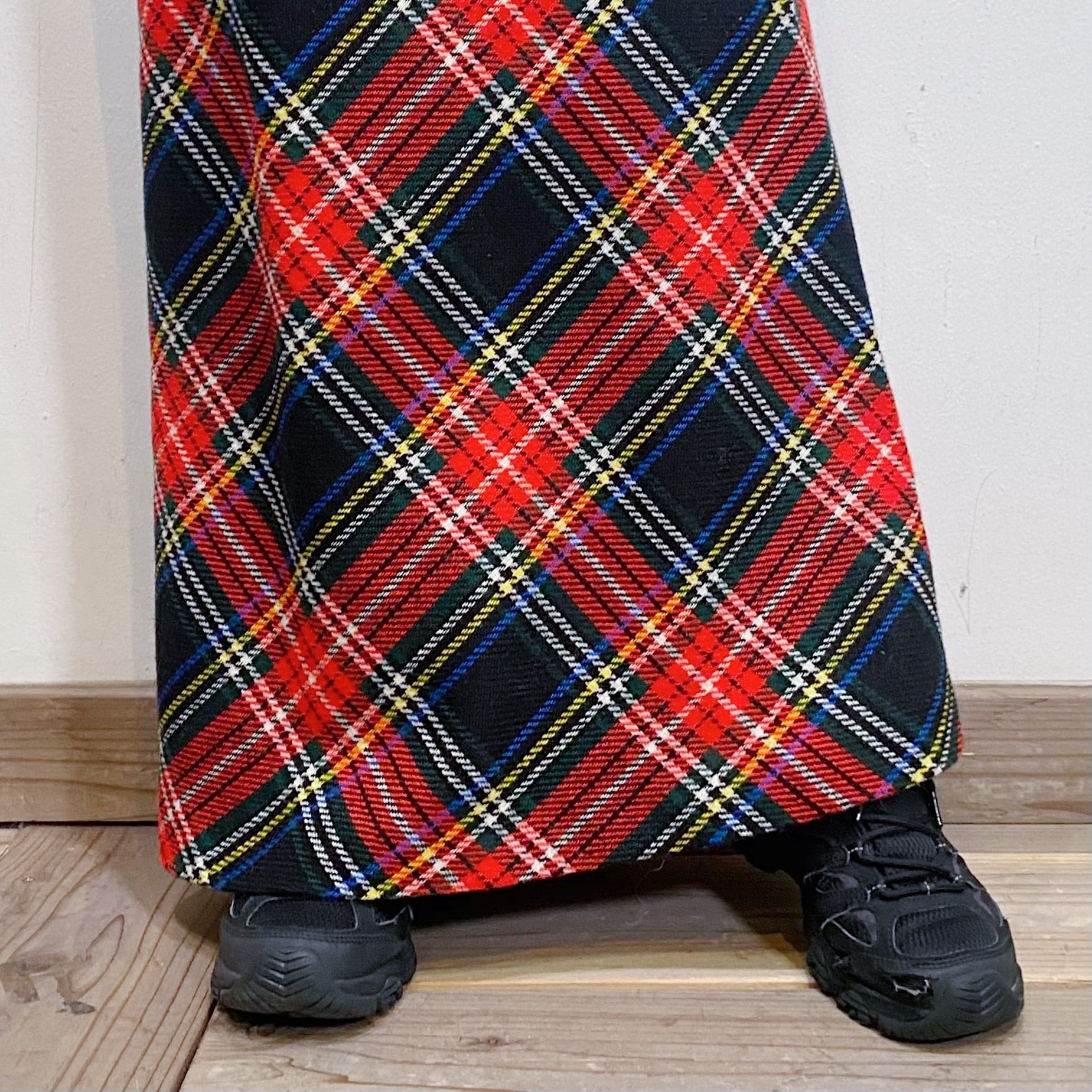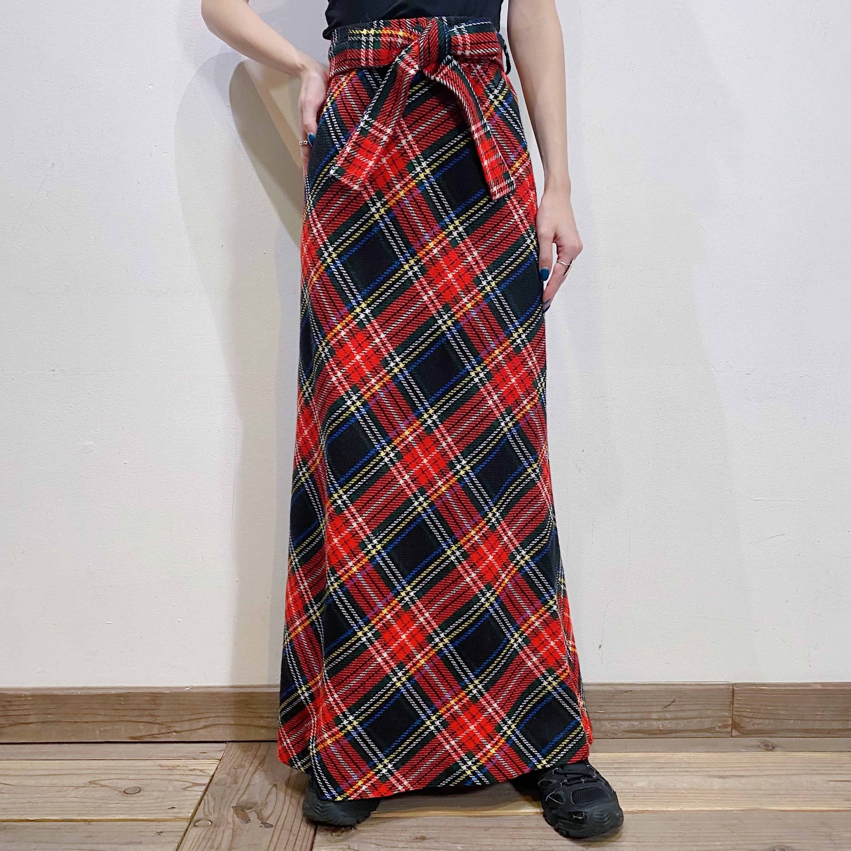 赤のタータンチェックが可愛い、70年代のウールスカートです。