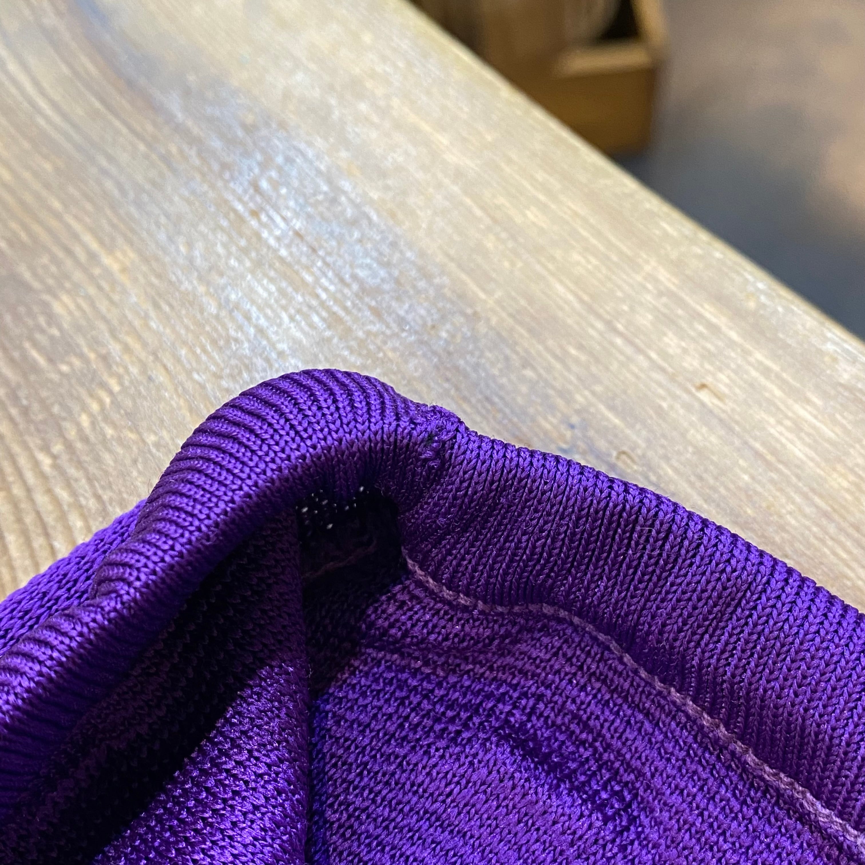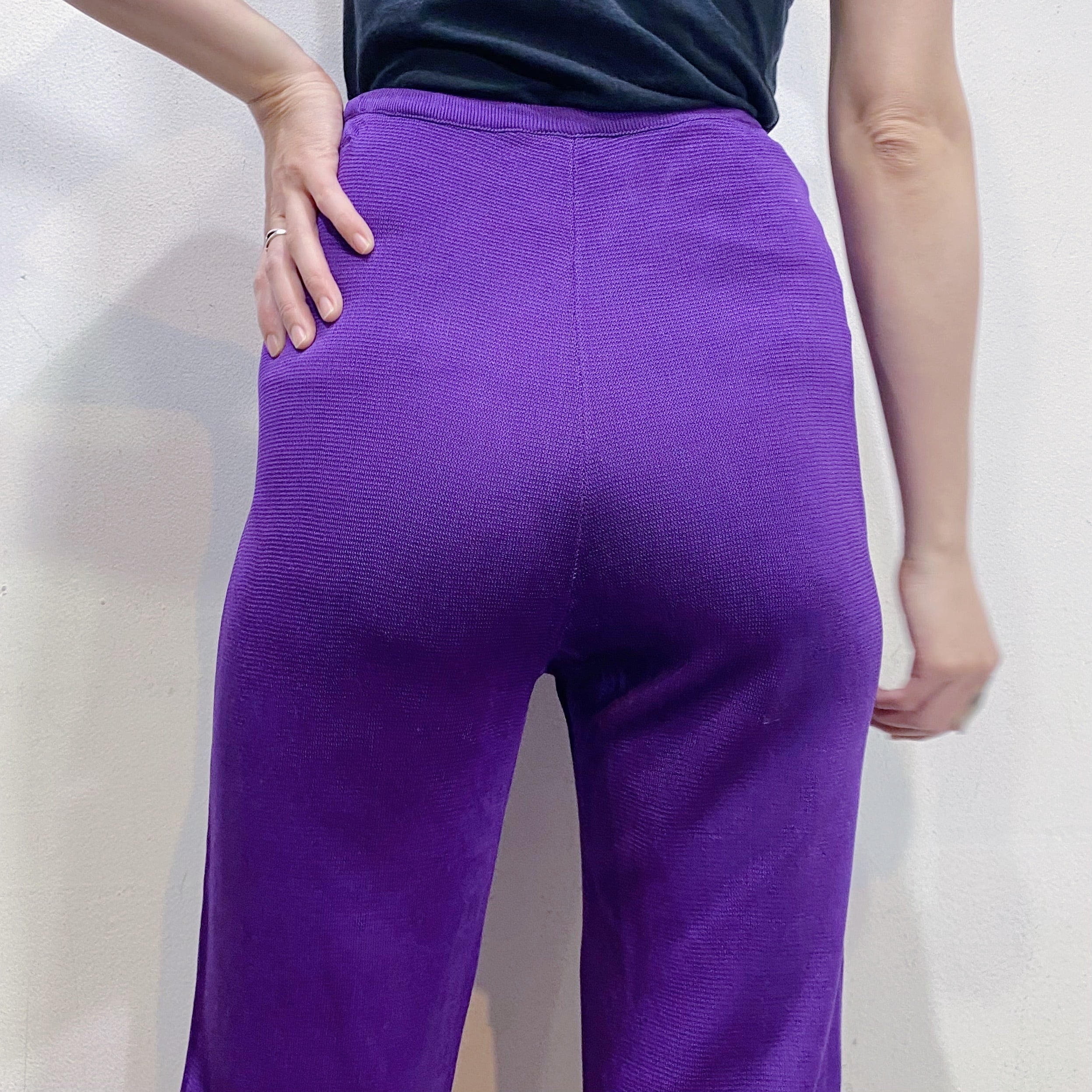 鮮やかなパープルがコーディネートのポイントになる、70年代のパンツです。