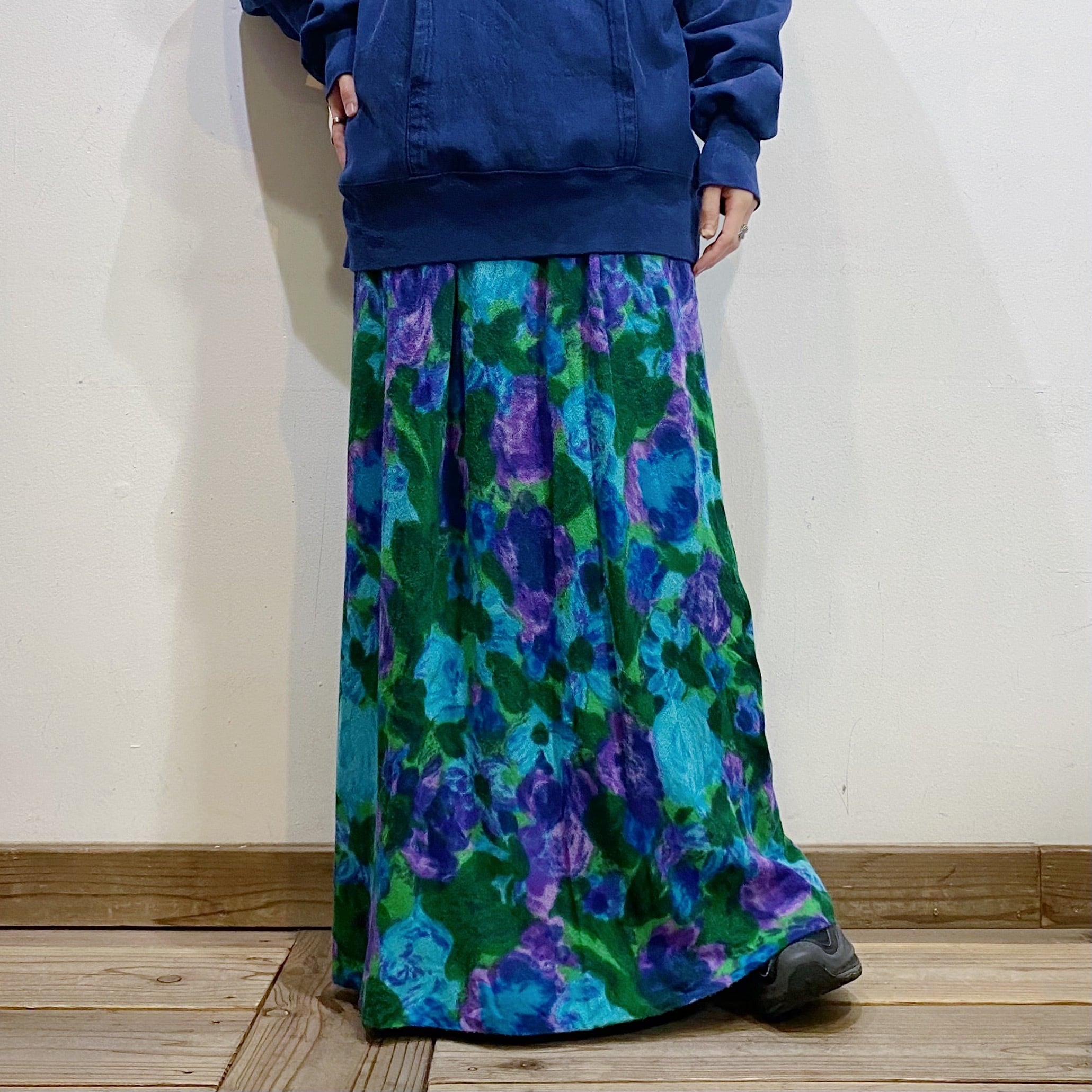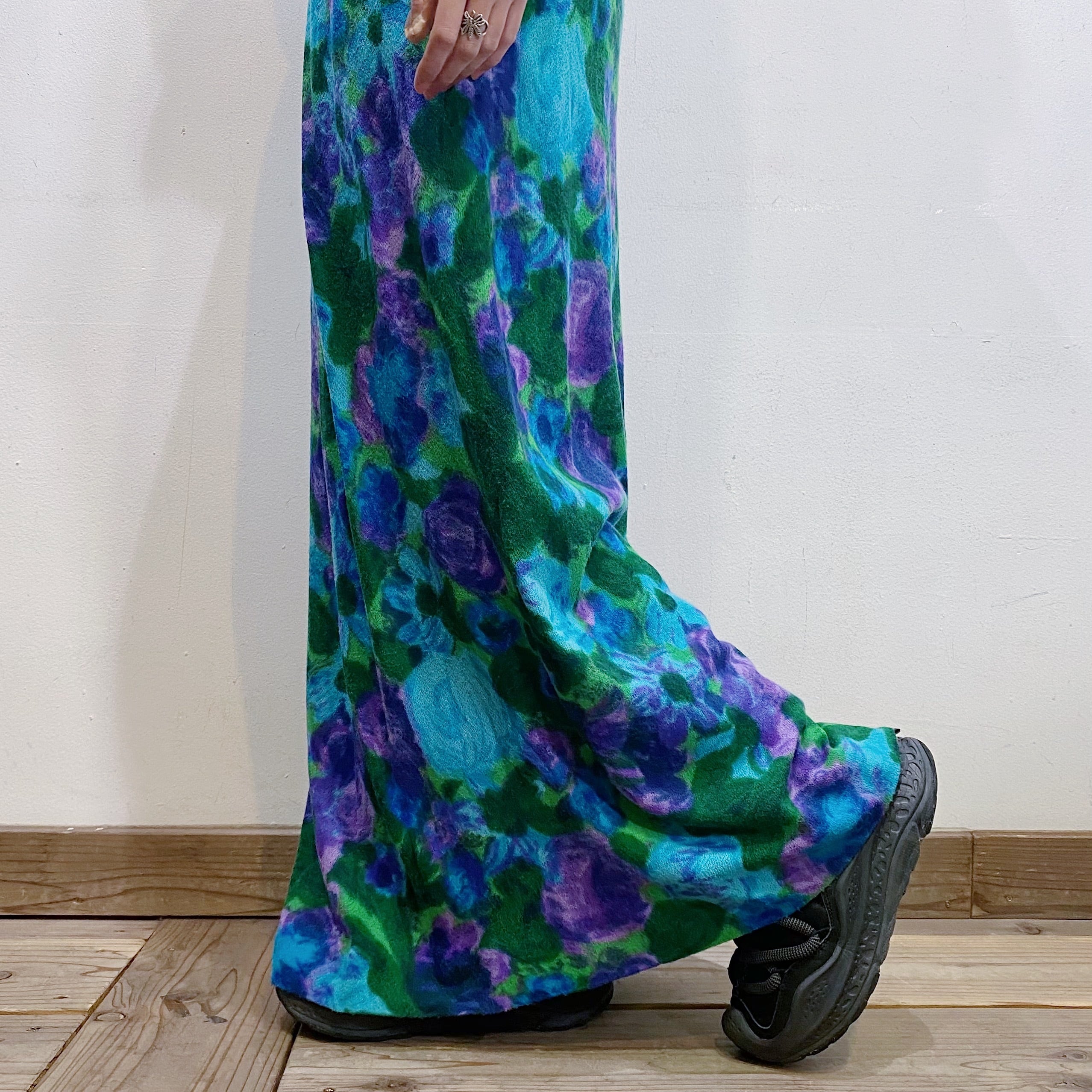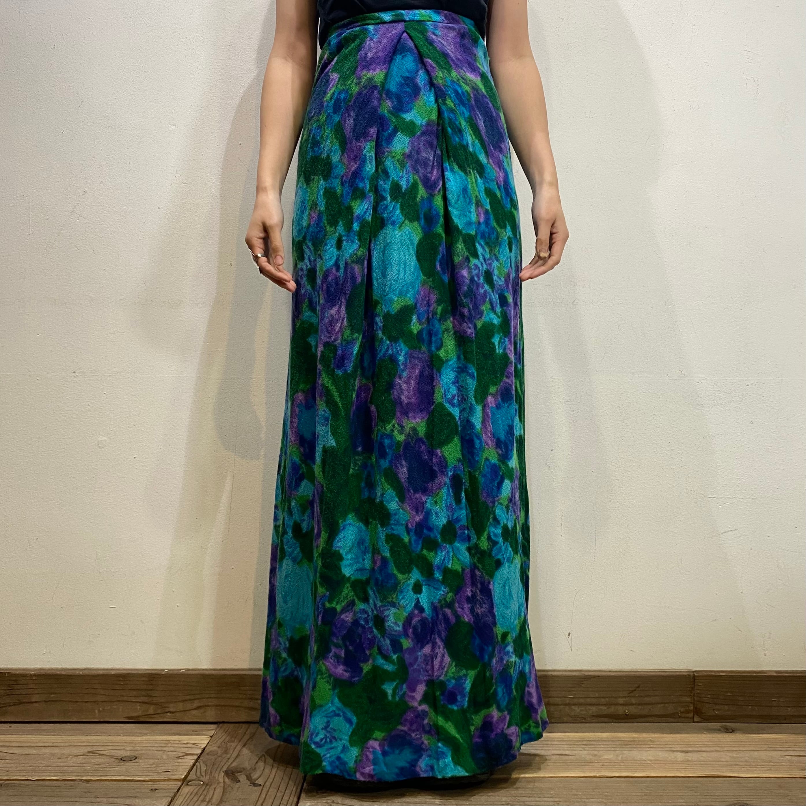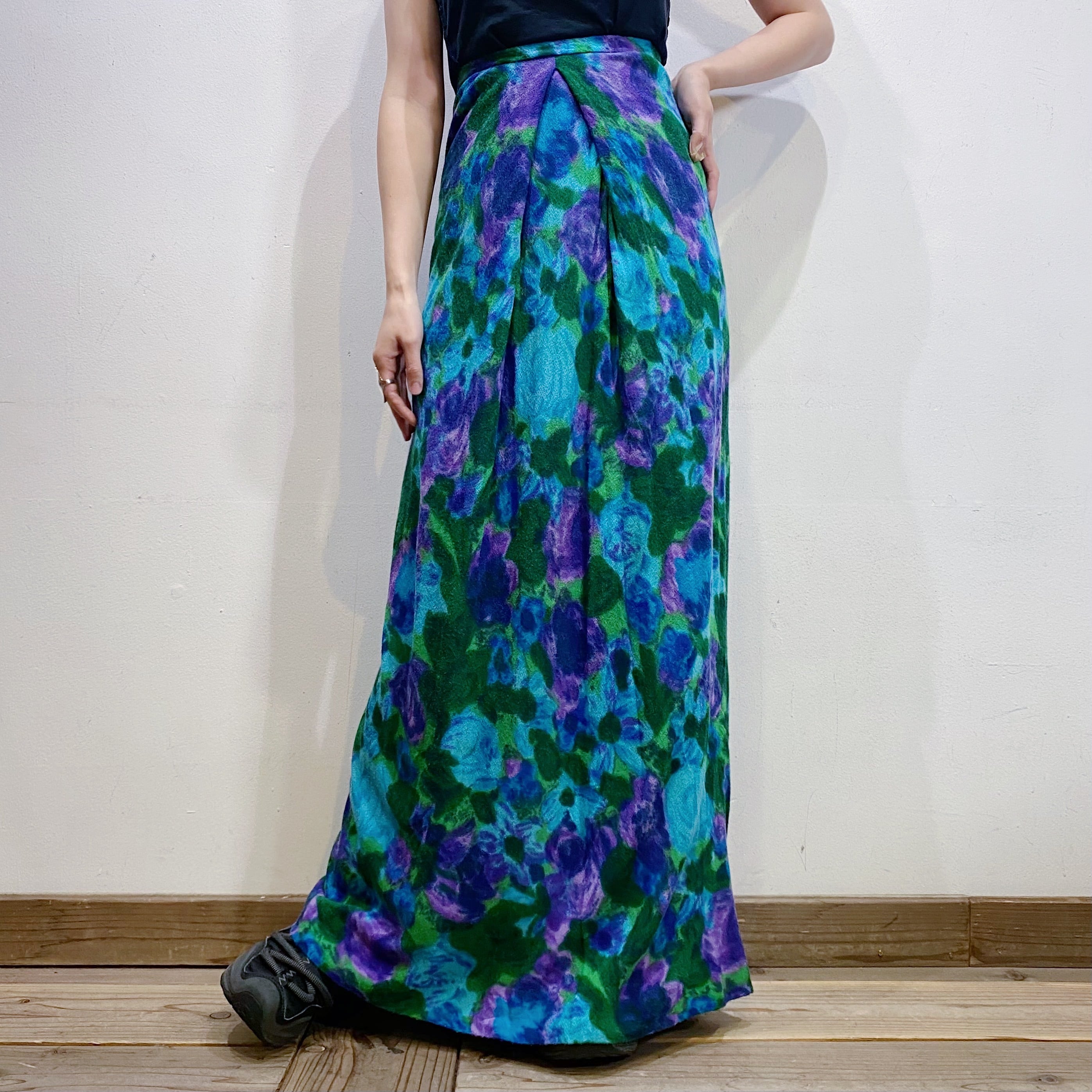 抽象的な花柄がアートで可愛い、I.Magninの70年代ロングスカートです。