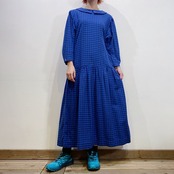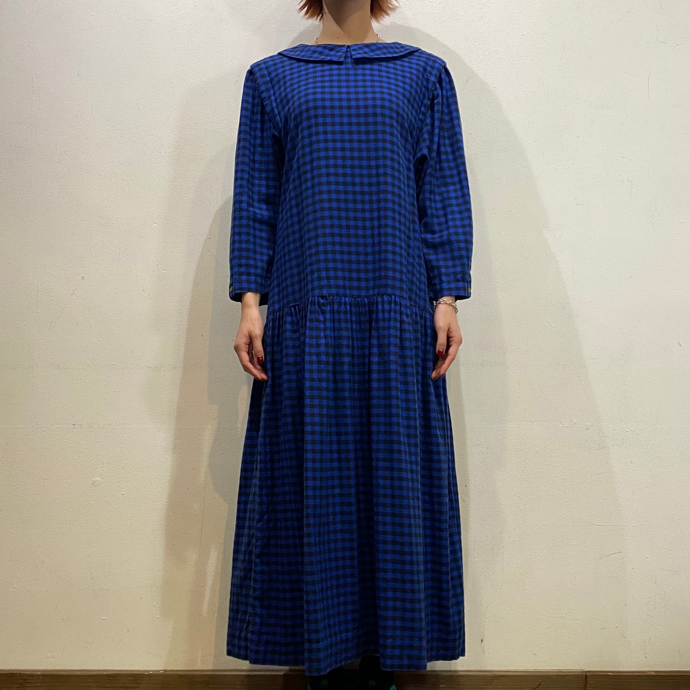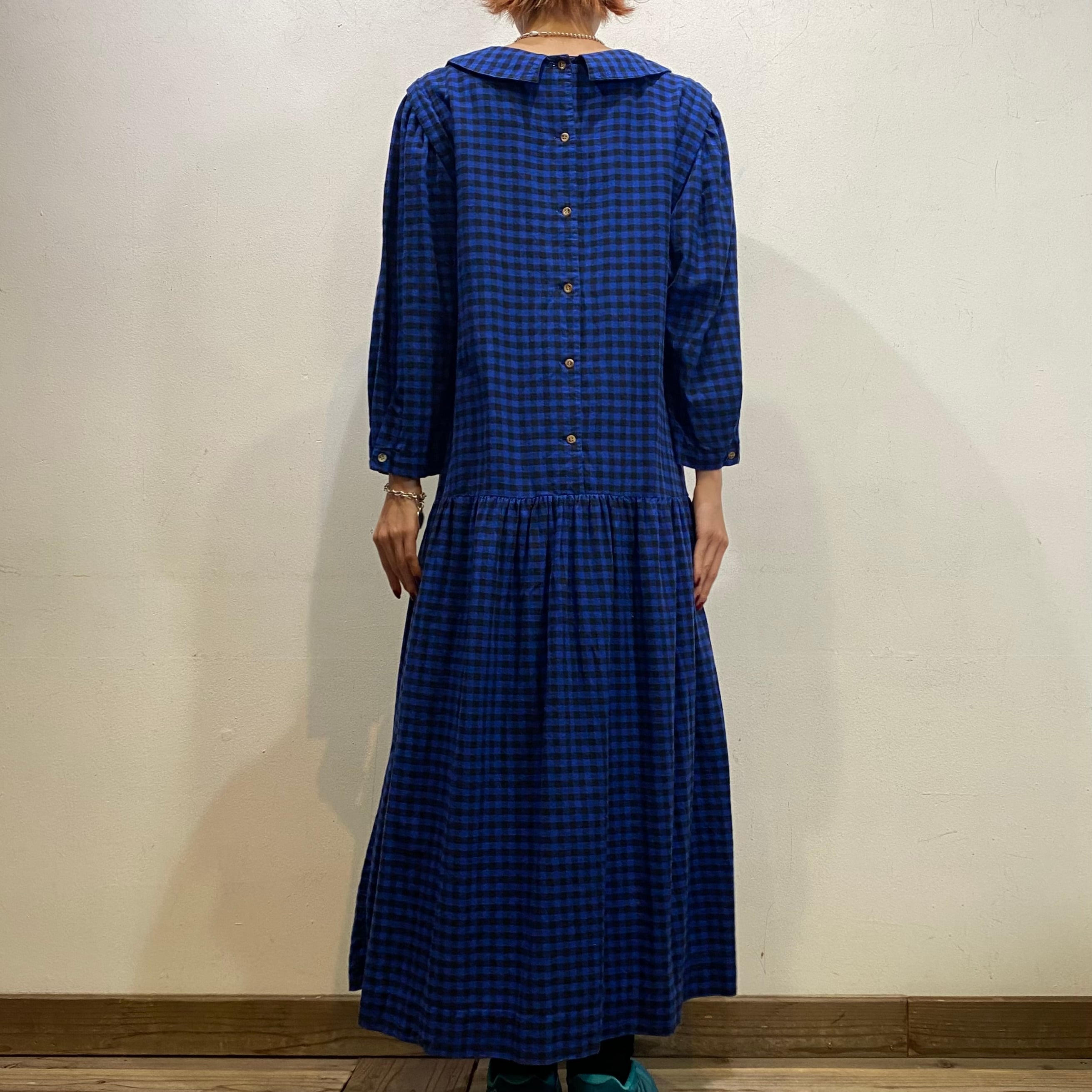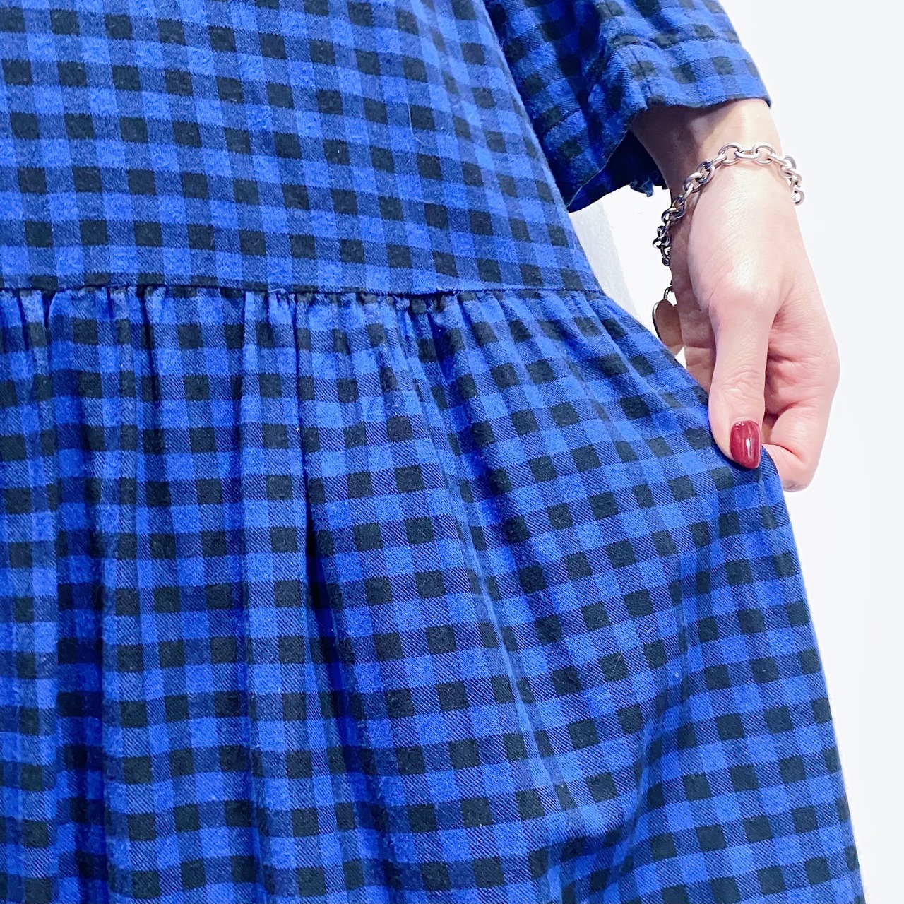 ネルシャル素材の、襟やローウエストが可愛いワンピースです。