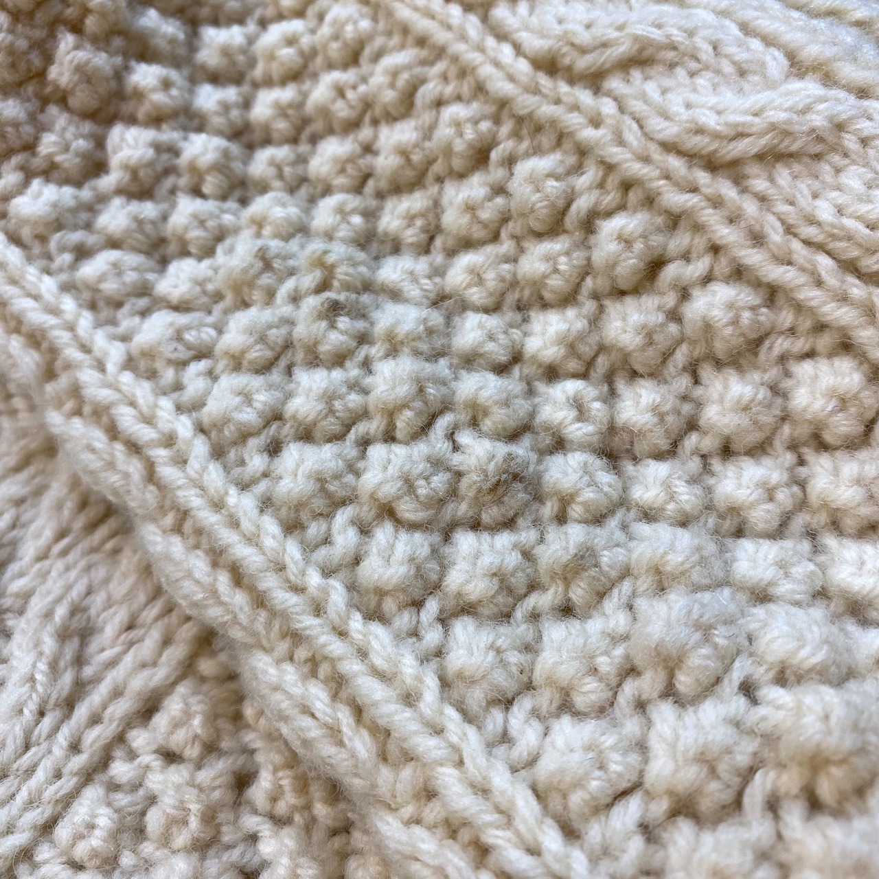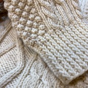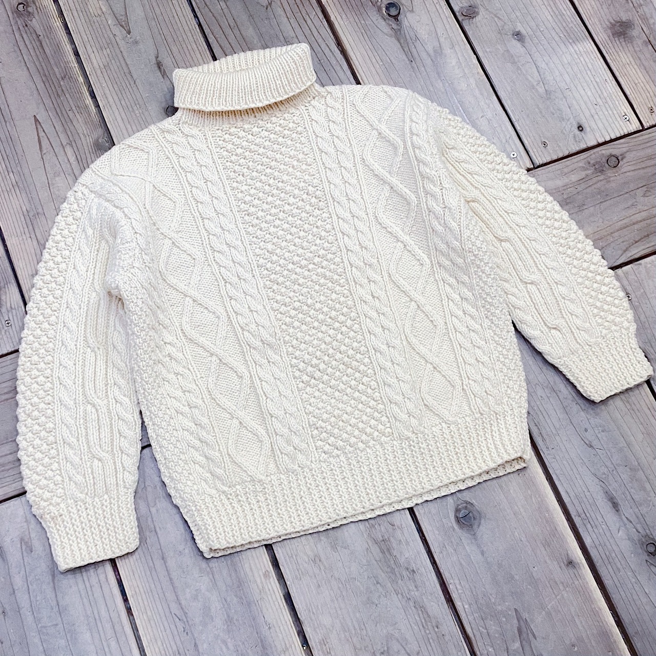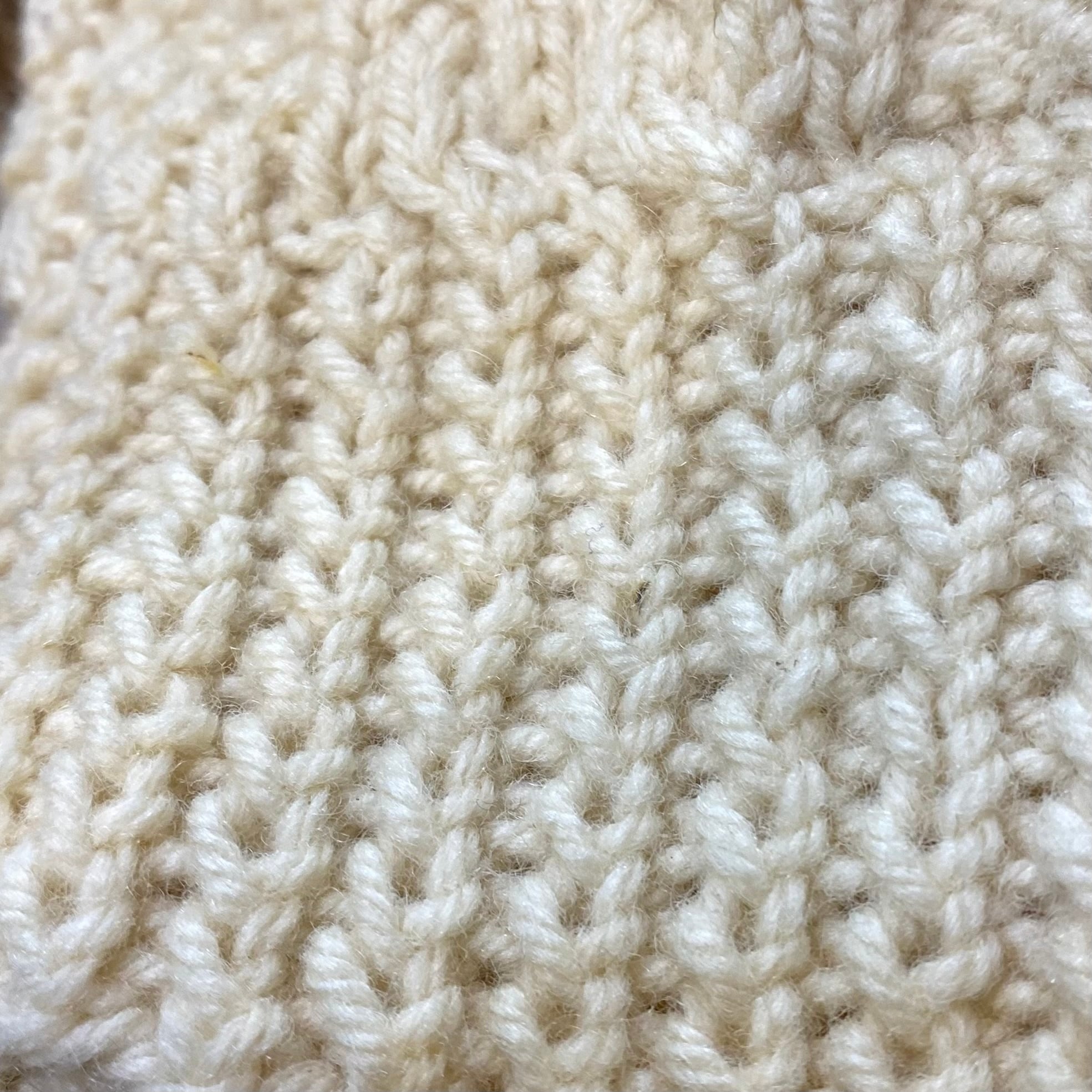 袖の端に色変わりのように見える部分がありますが、これは元々のウールに別の糸が混入しているパターンであり、シミというわけではありません。