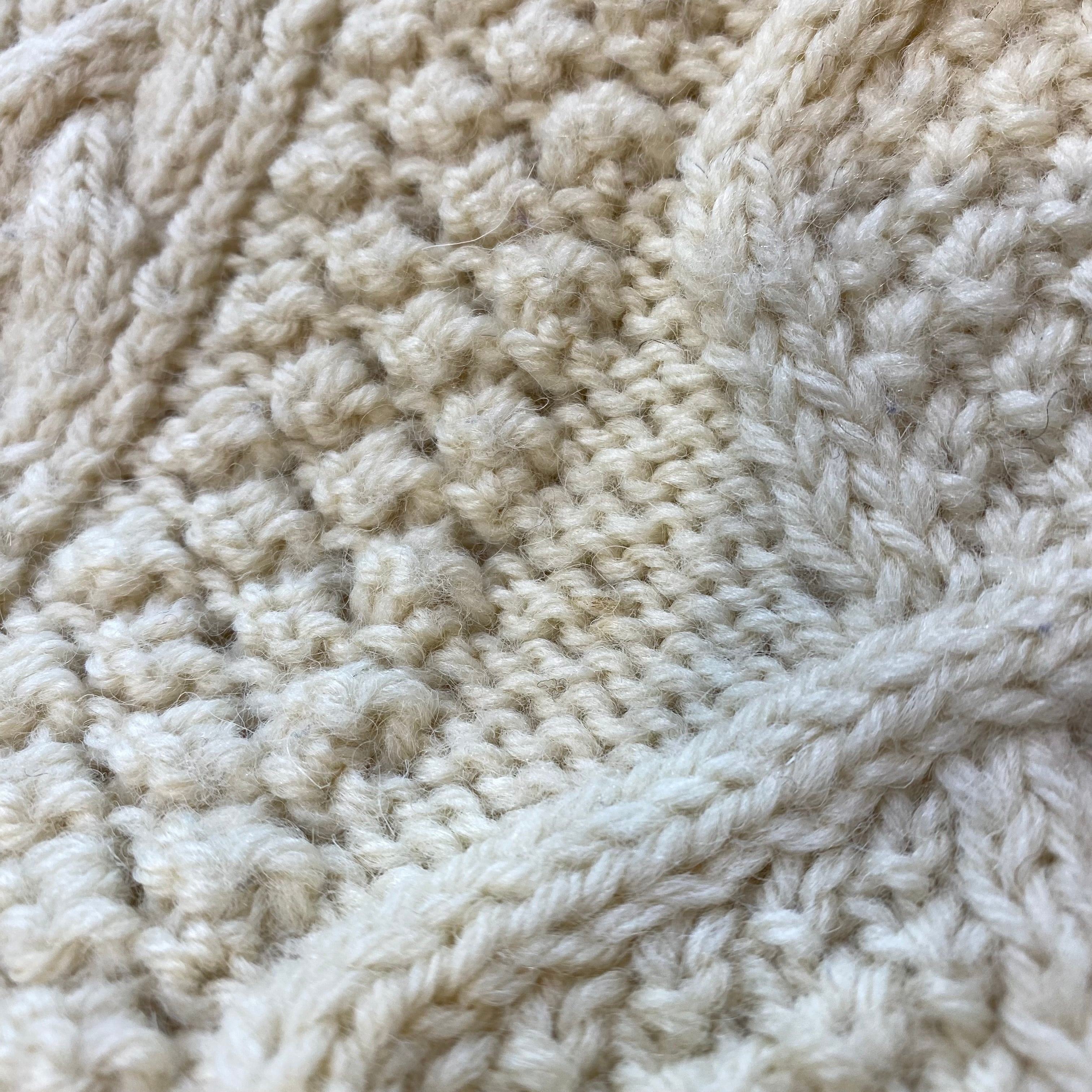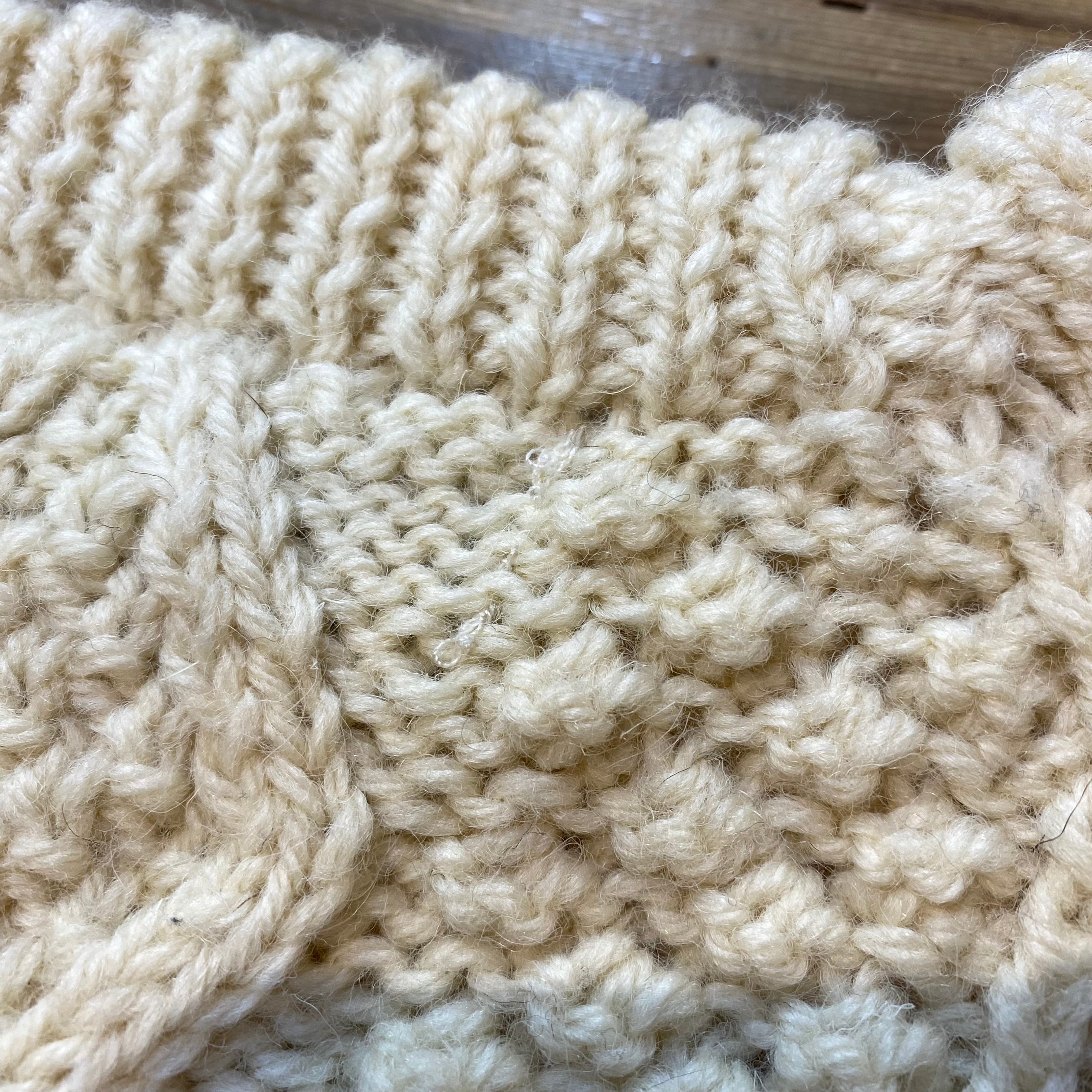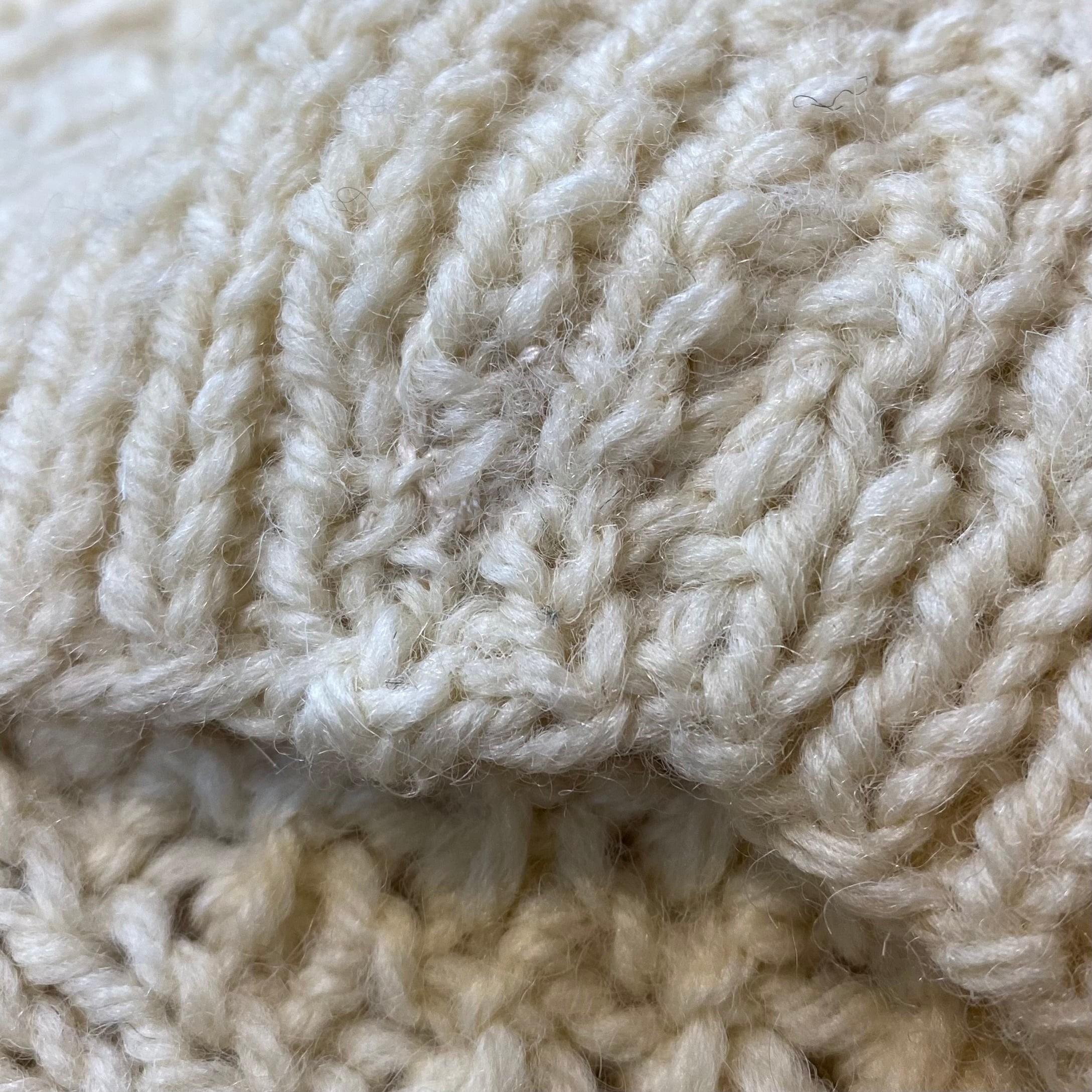 袖の端に色変わりのように見える部分がありますが、これは元々のウールに別の糸が混入しているパターンであり、シミというわけではありません。