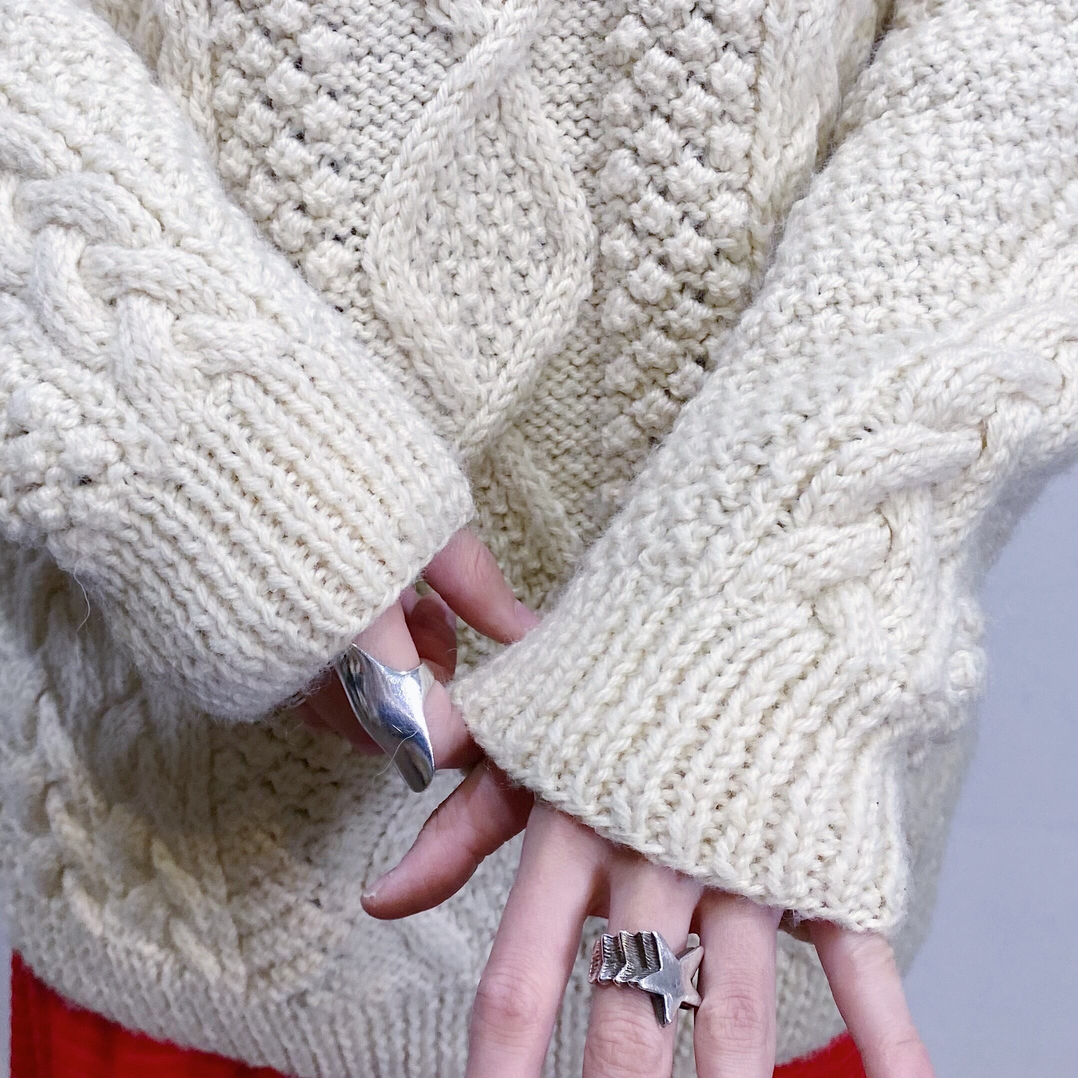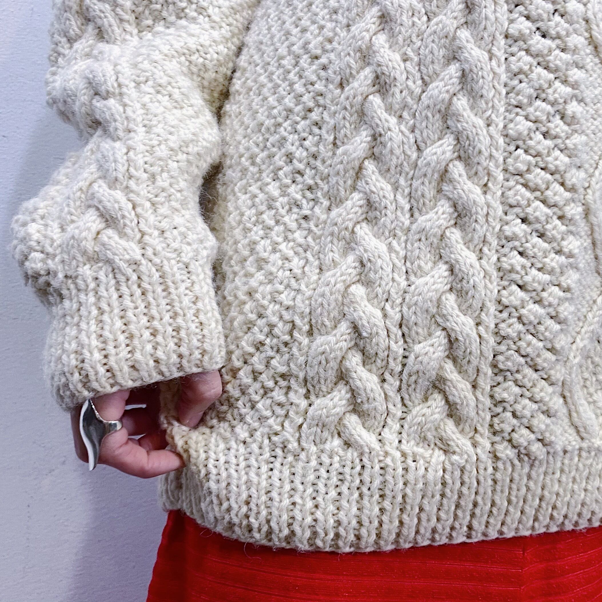 お探しの方が多い、大き目サイズが可愛いフィッシャーマンニットです。