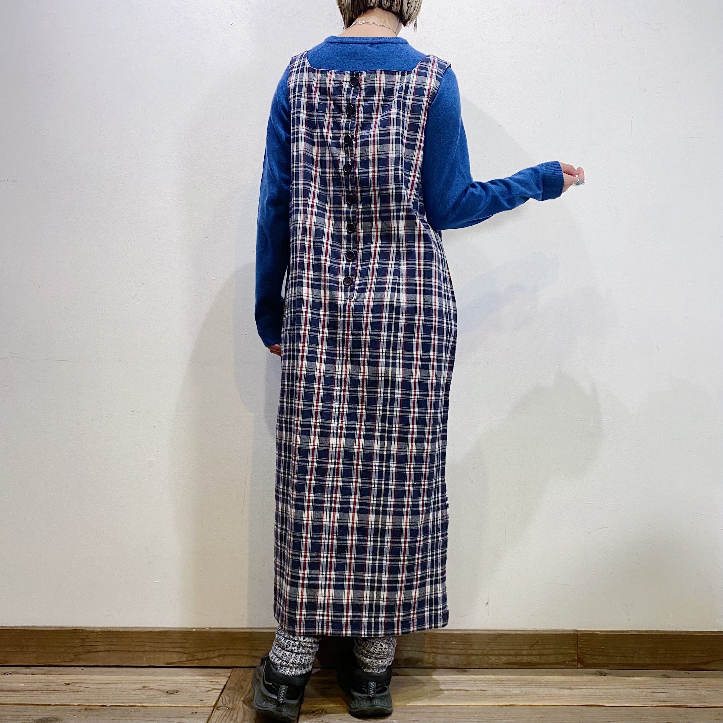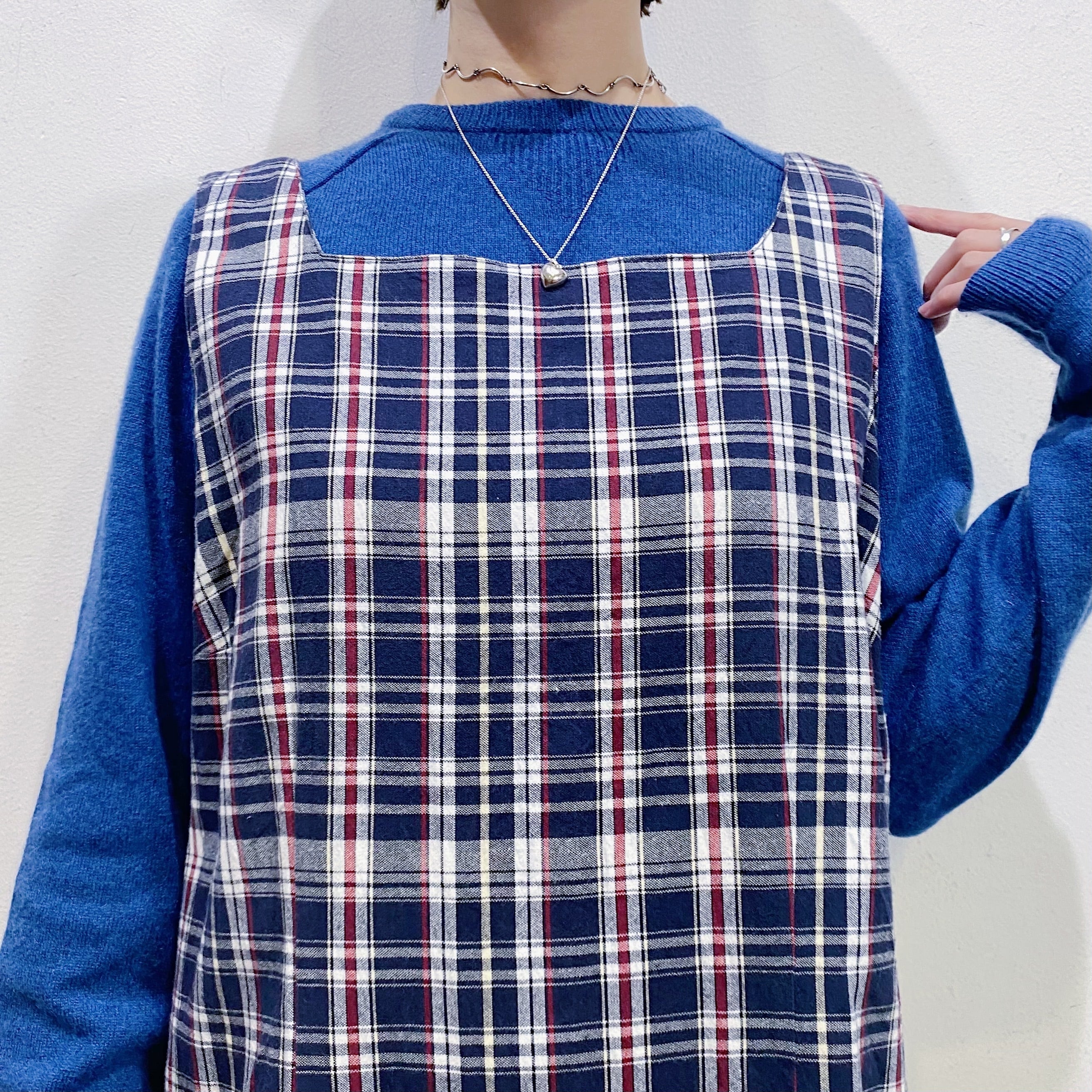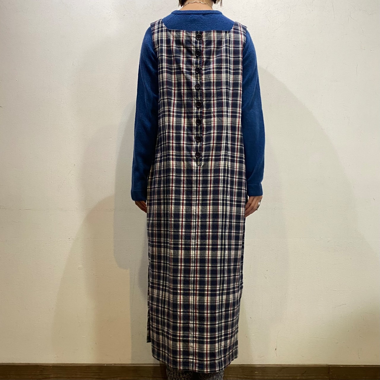 コットン素材のチェックが可愛い、90年代のジャンパーワンピースです。