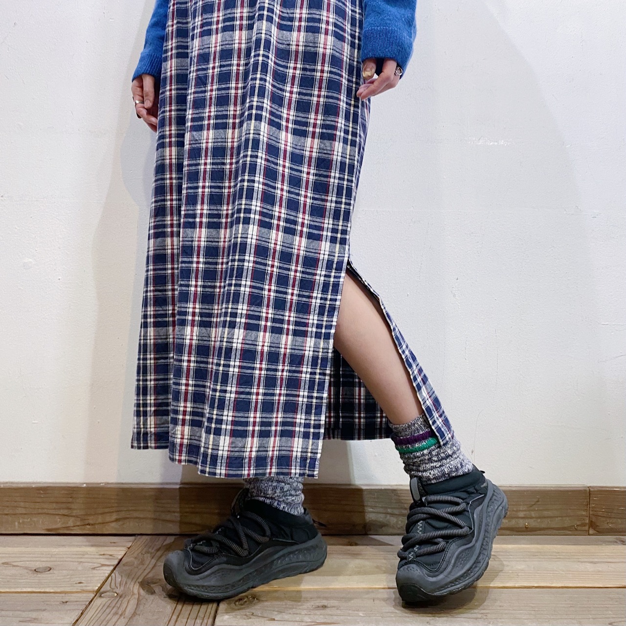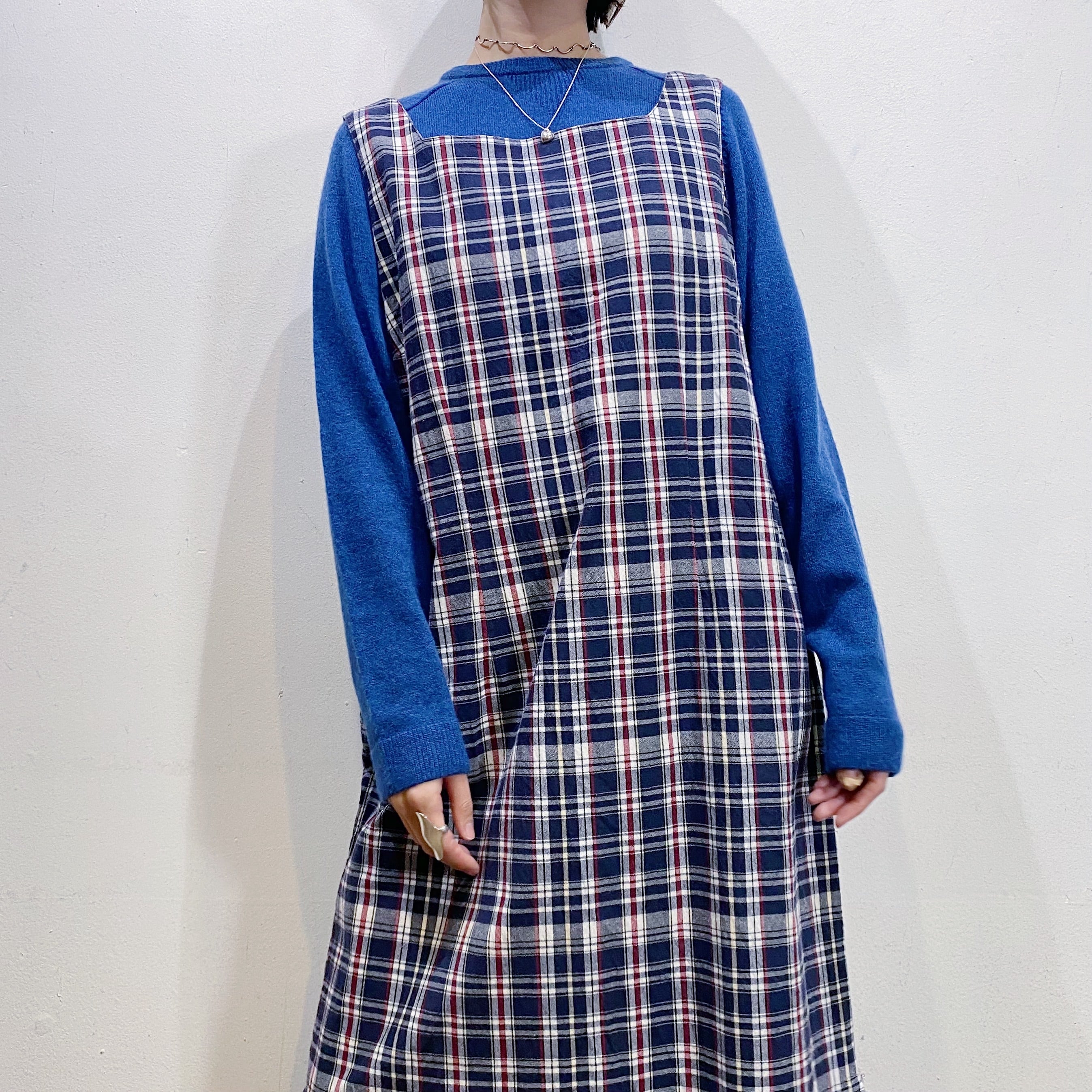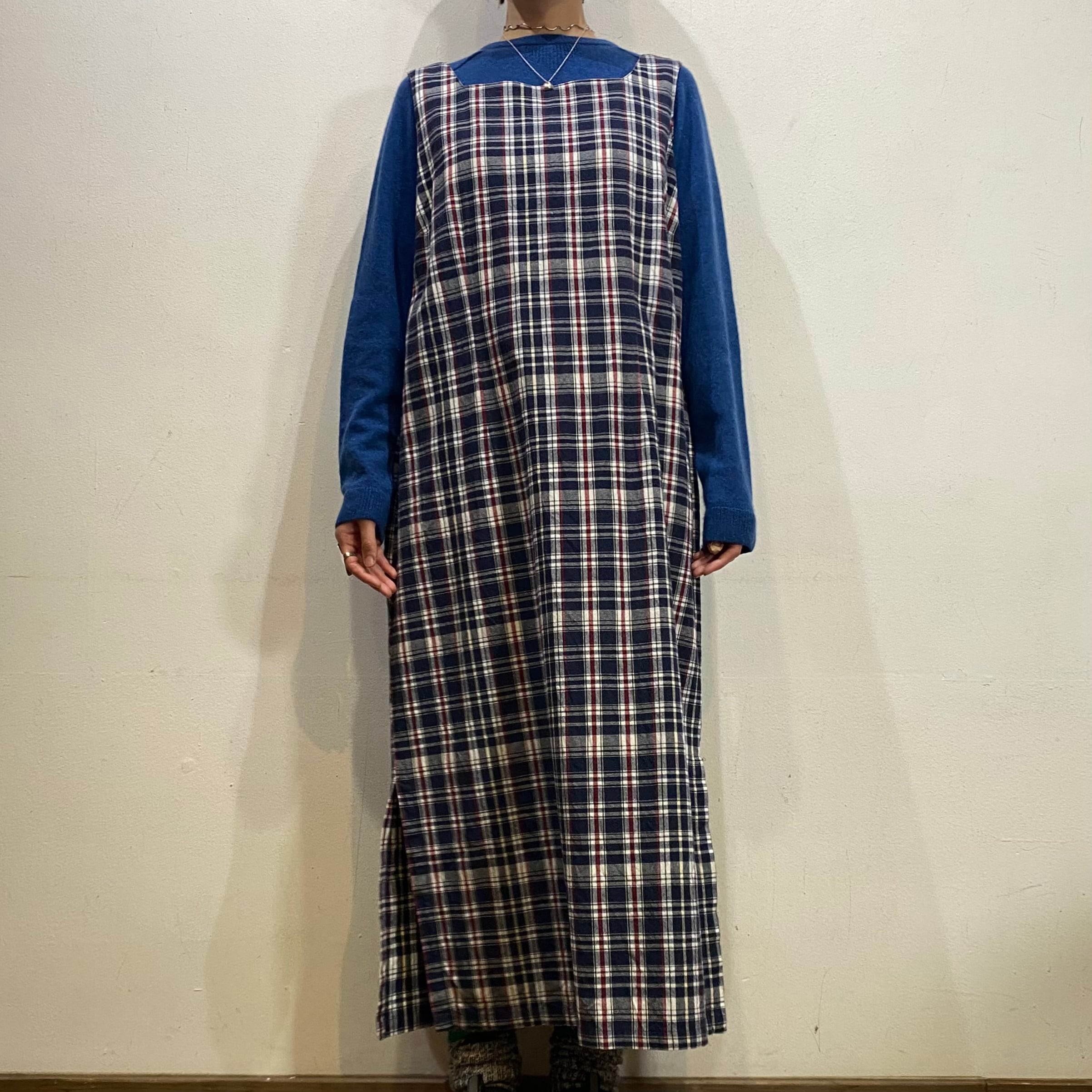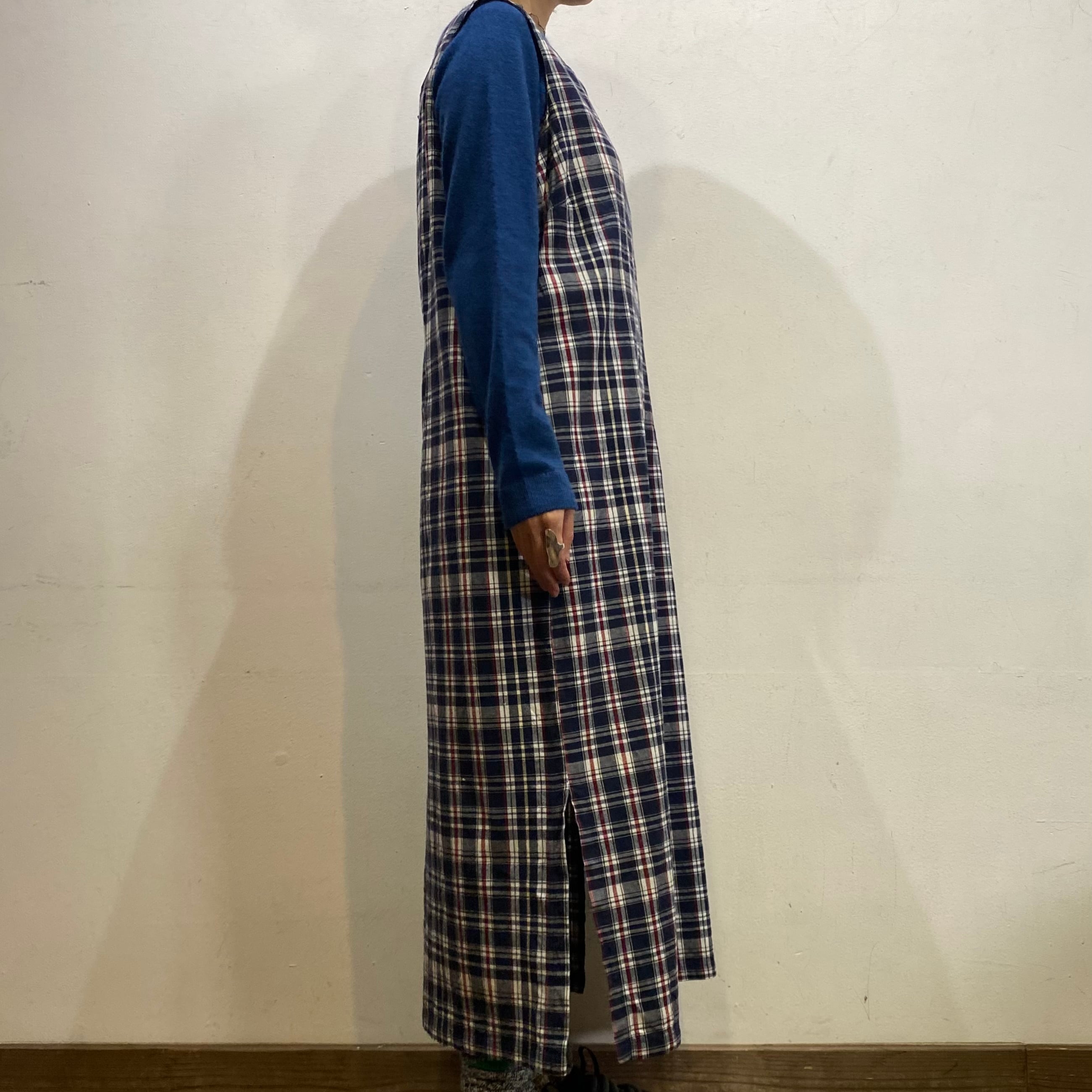 コットン素材のチェックが可愛い、90年代のジャンパーワンピースです。