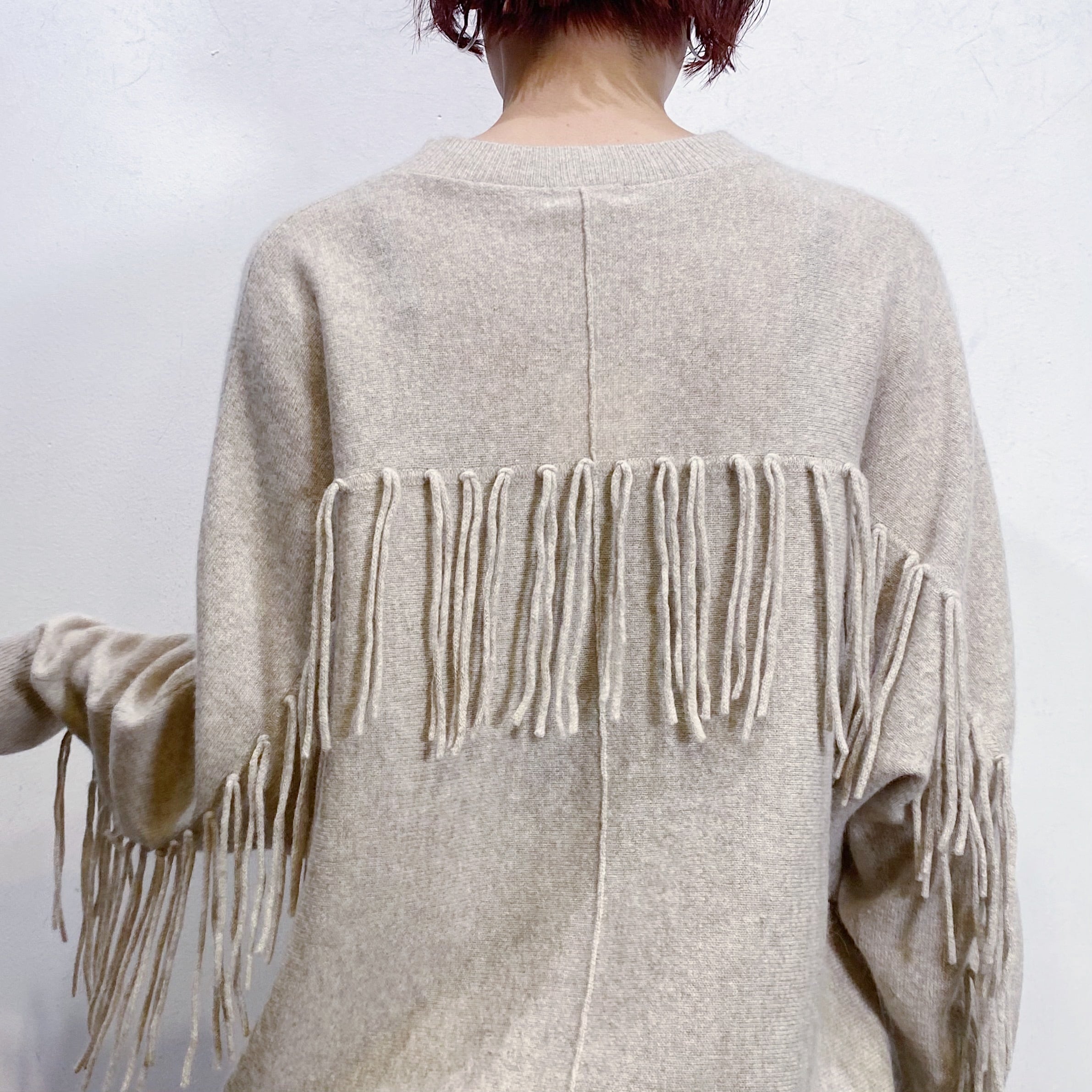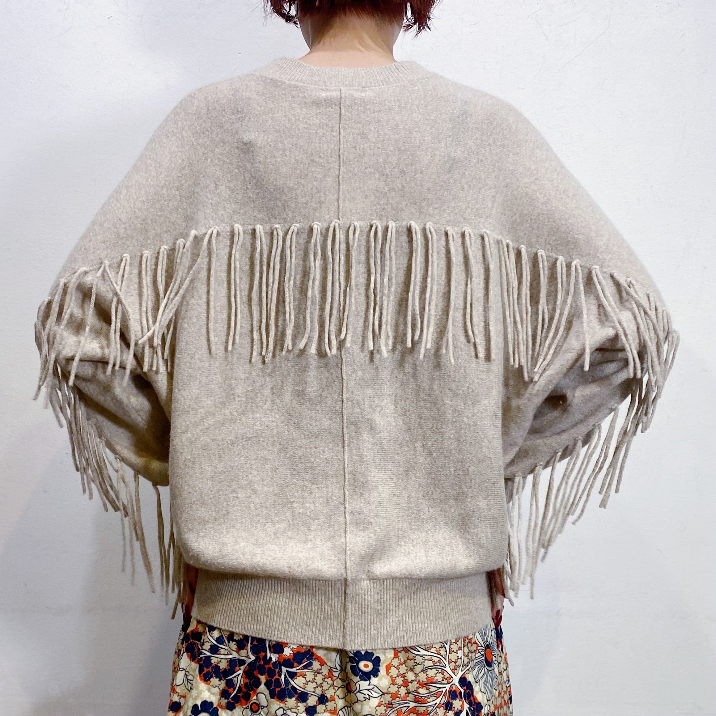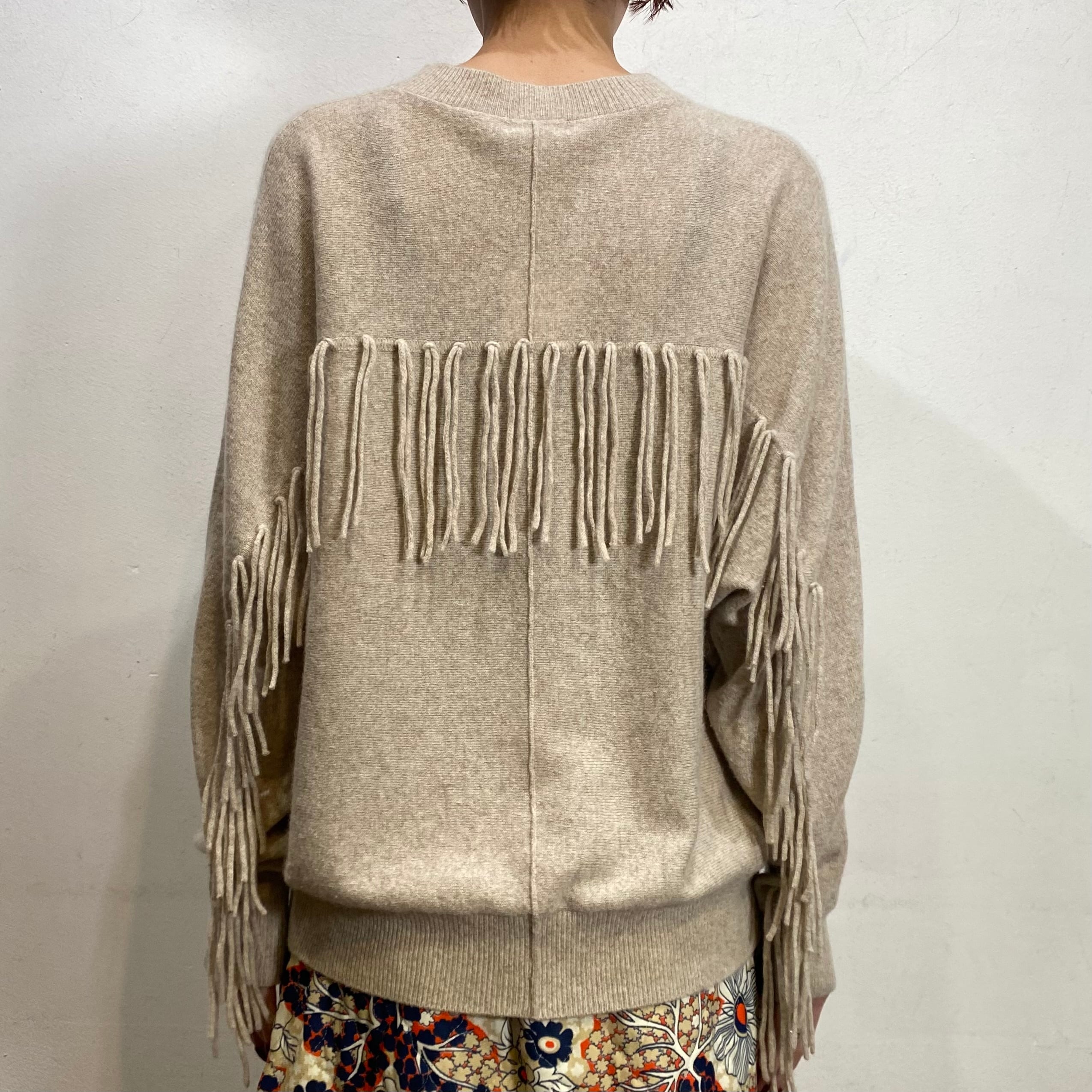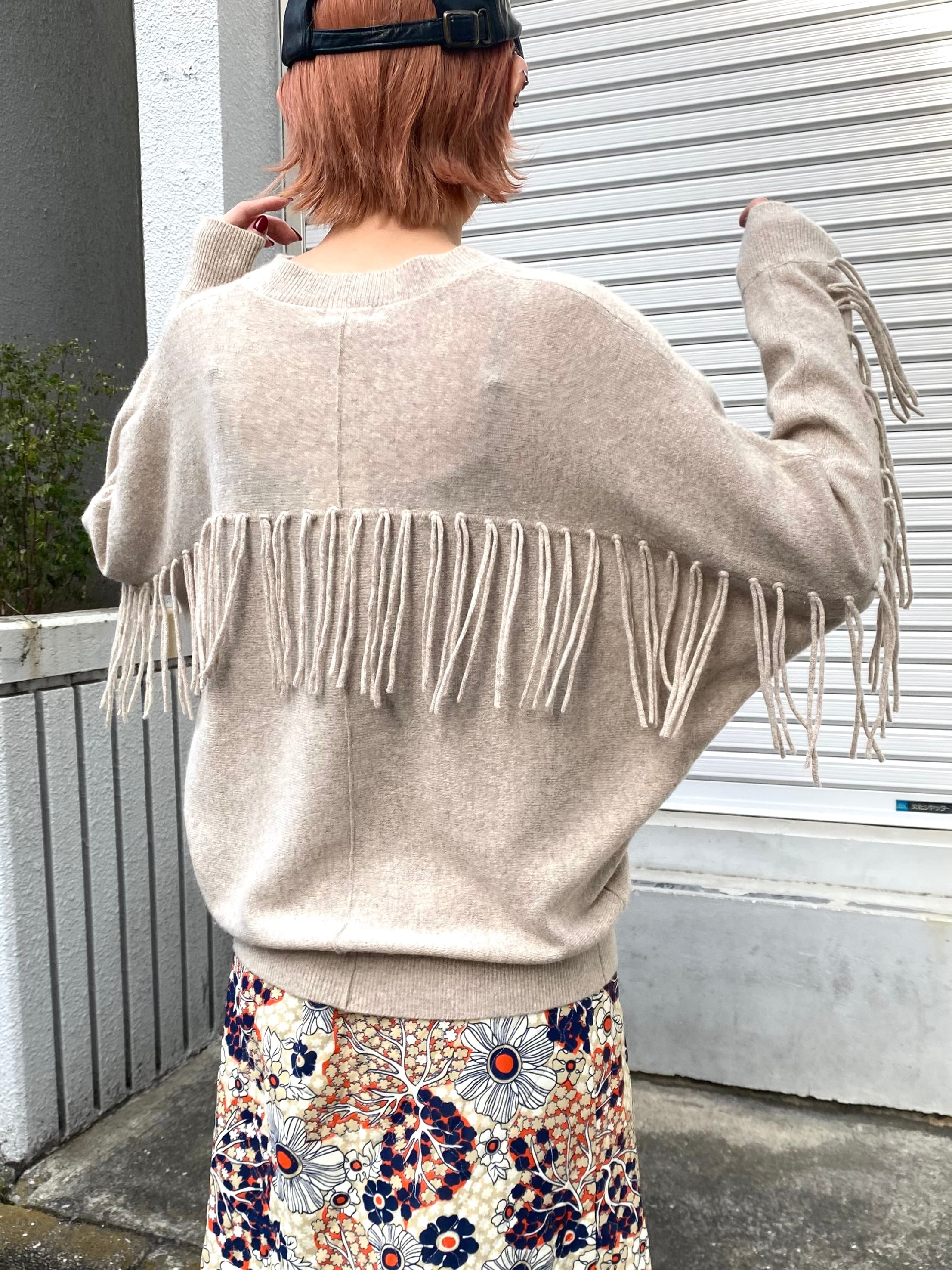 こちらはベージュカラーで使い勝手良く、なんと言ってもバックのフリンジデザインがとってもキュート。