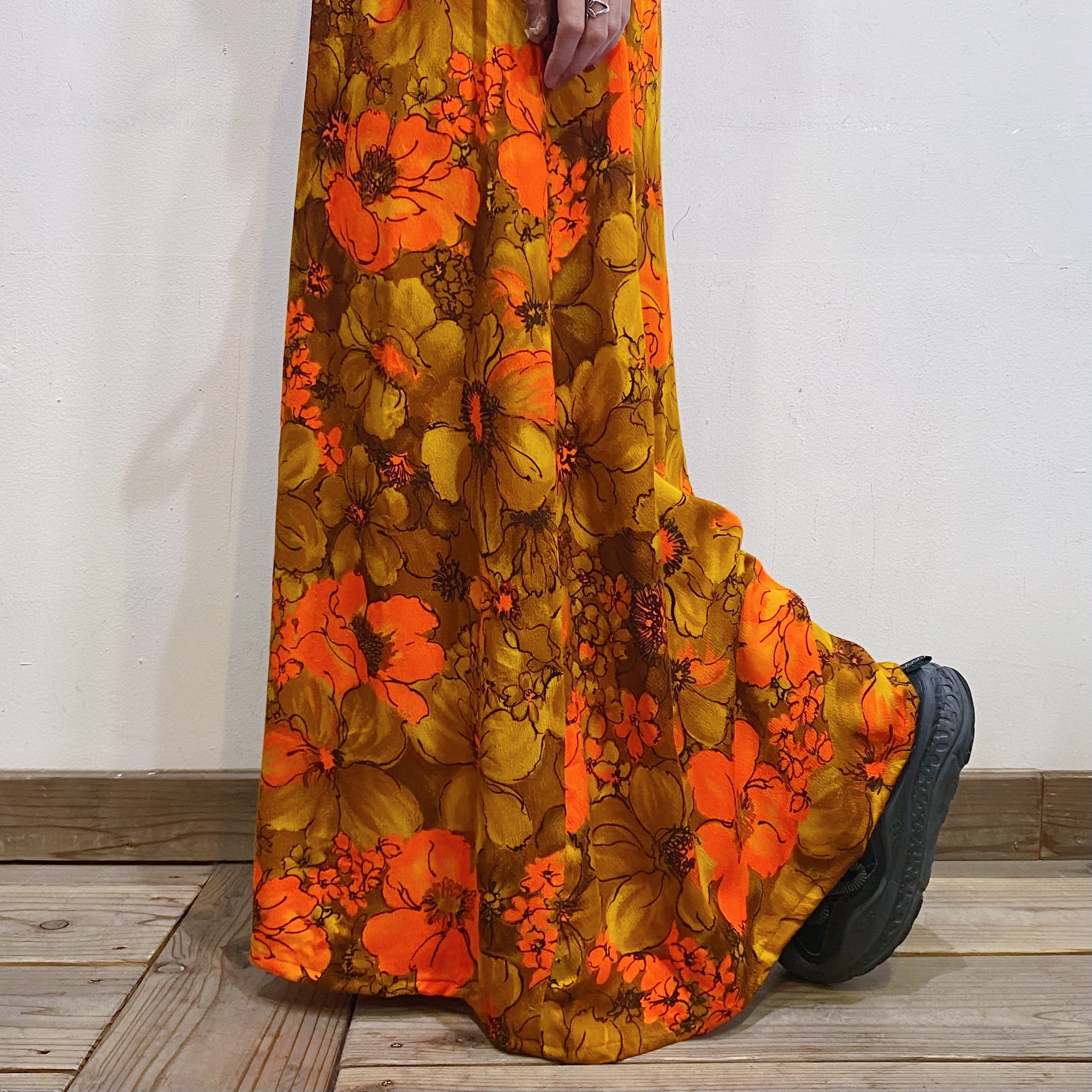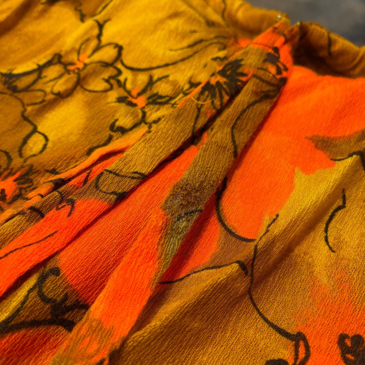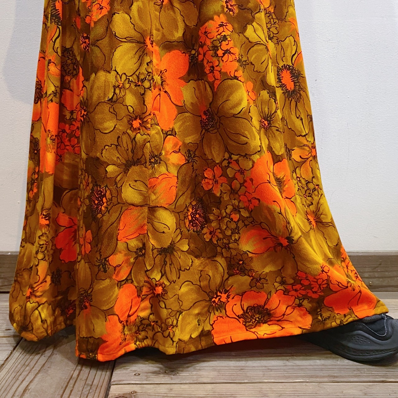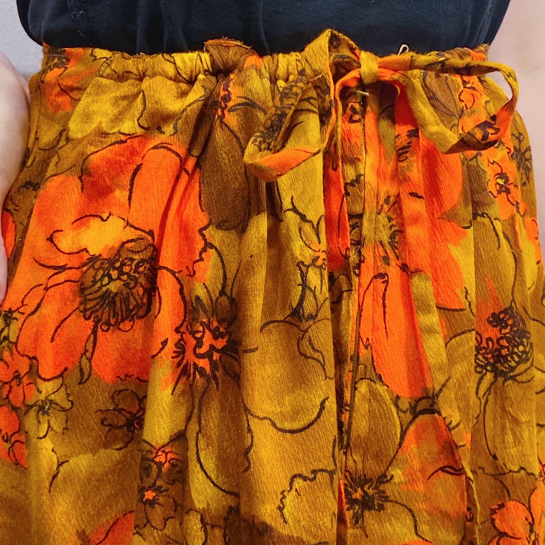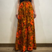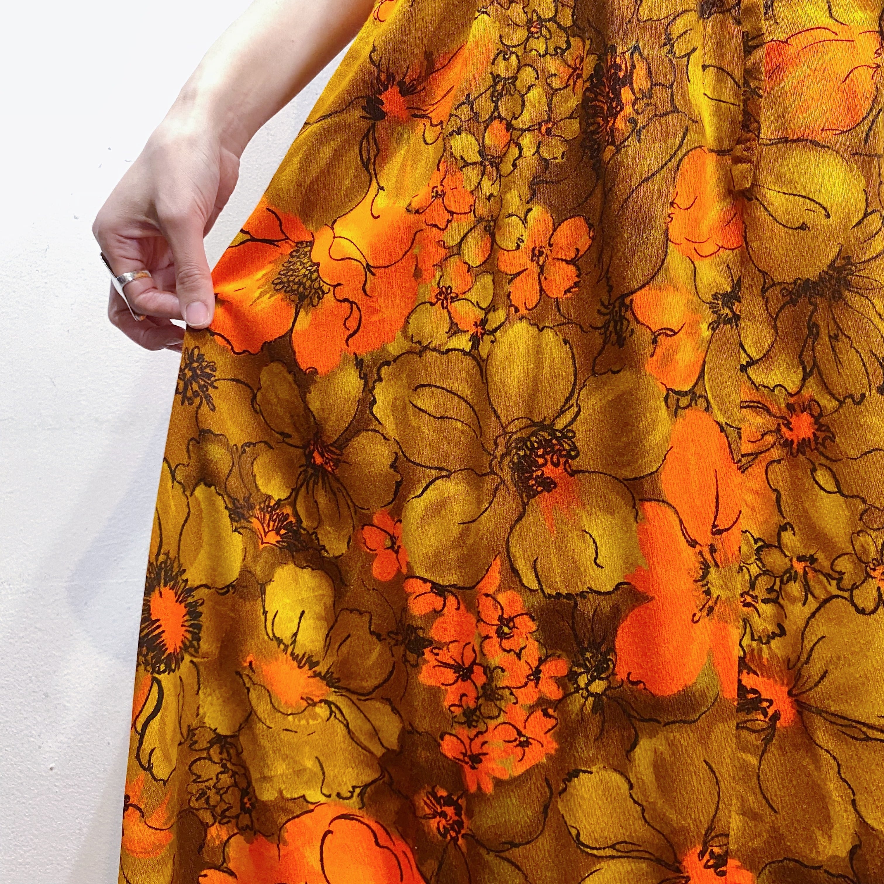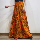 オレンジとブラウンの色合わせが可愛い、70年代の花柄スカートです。