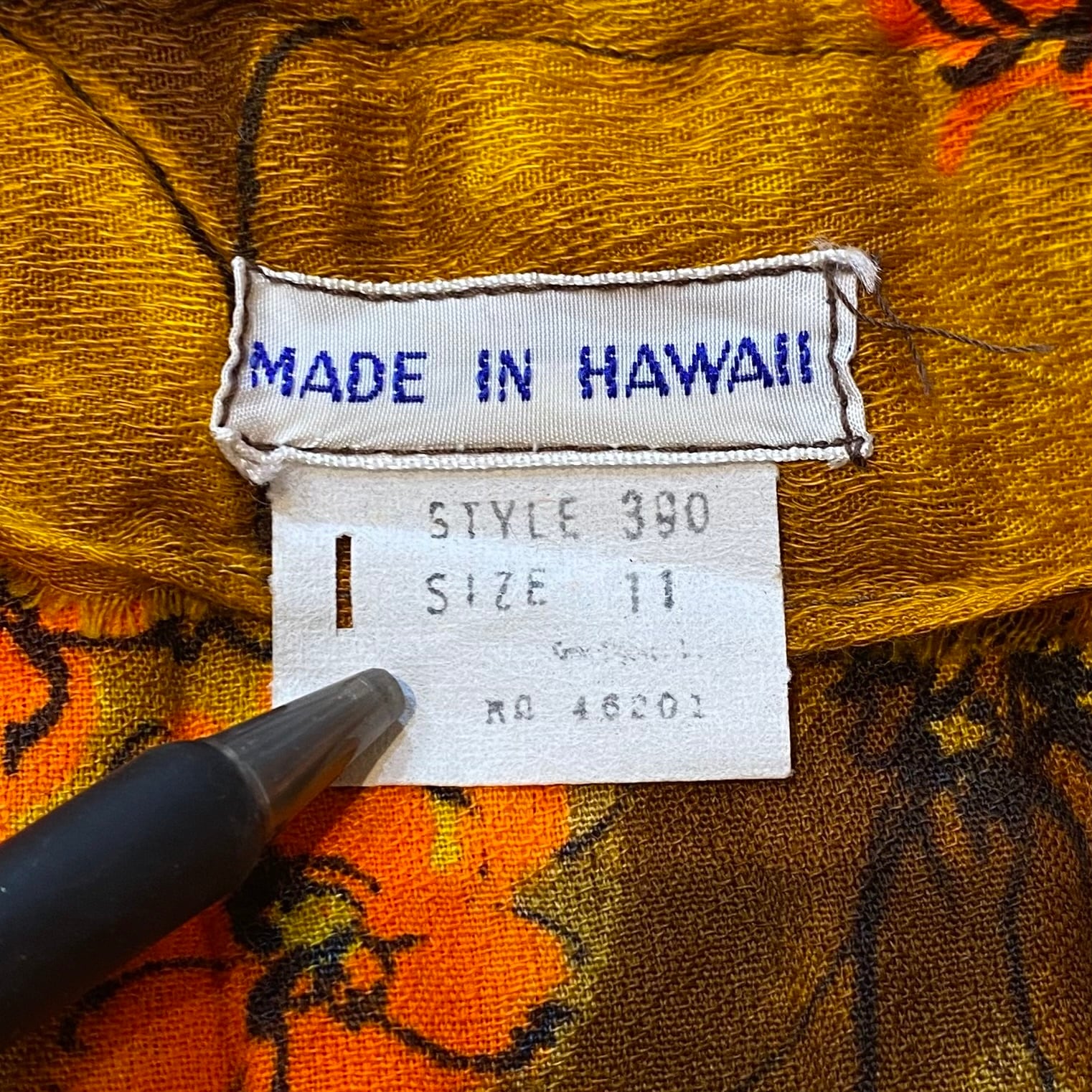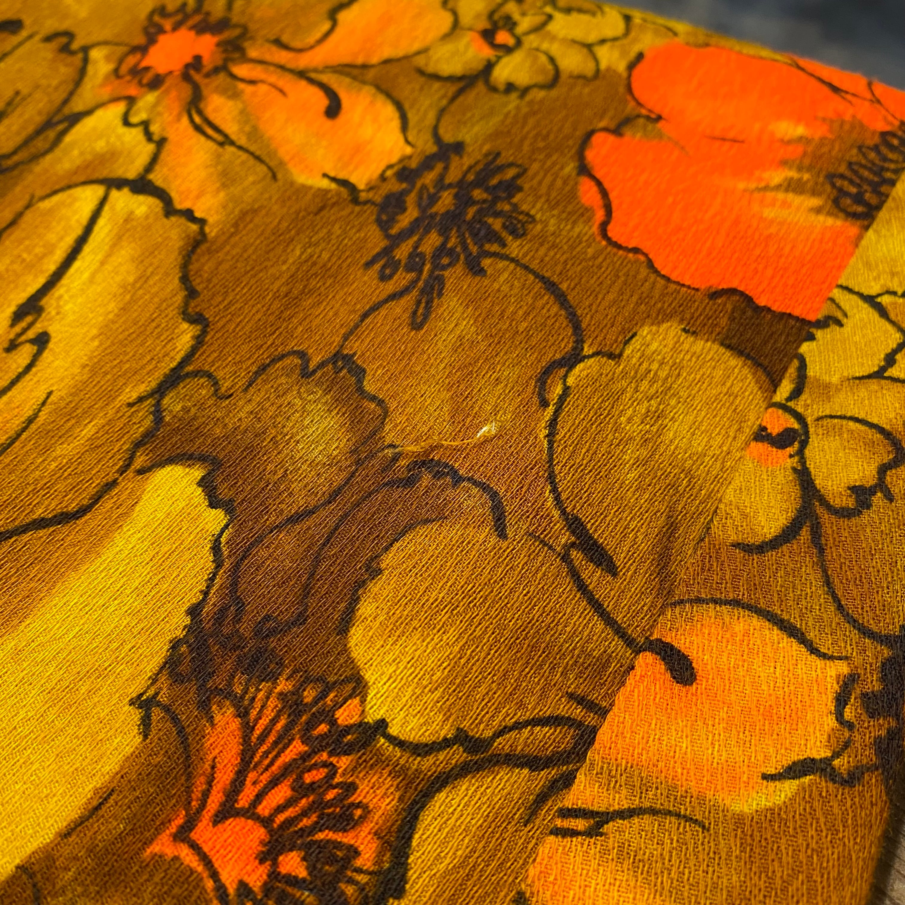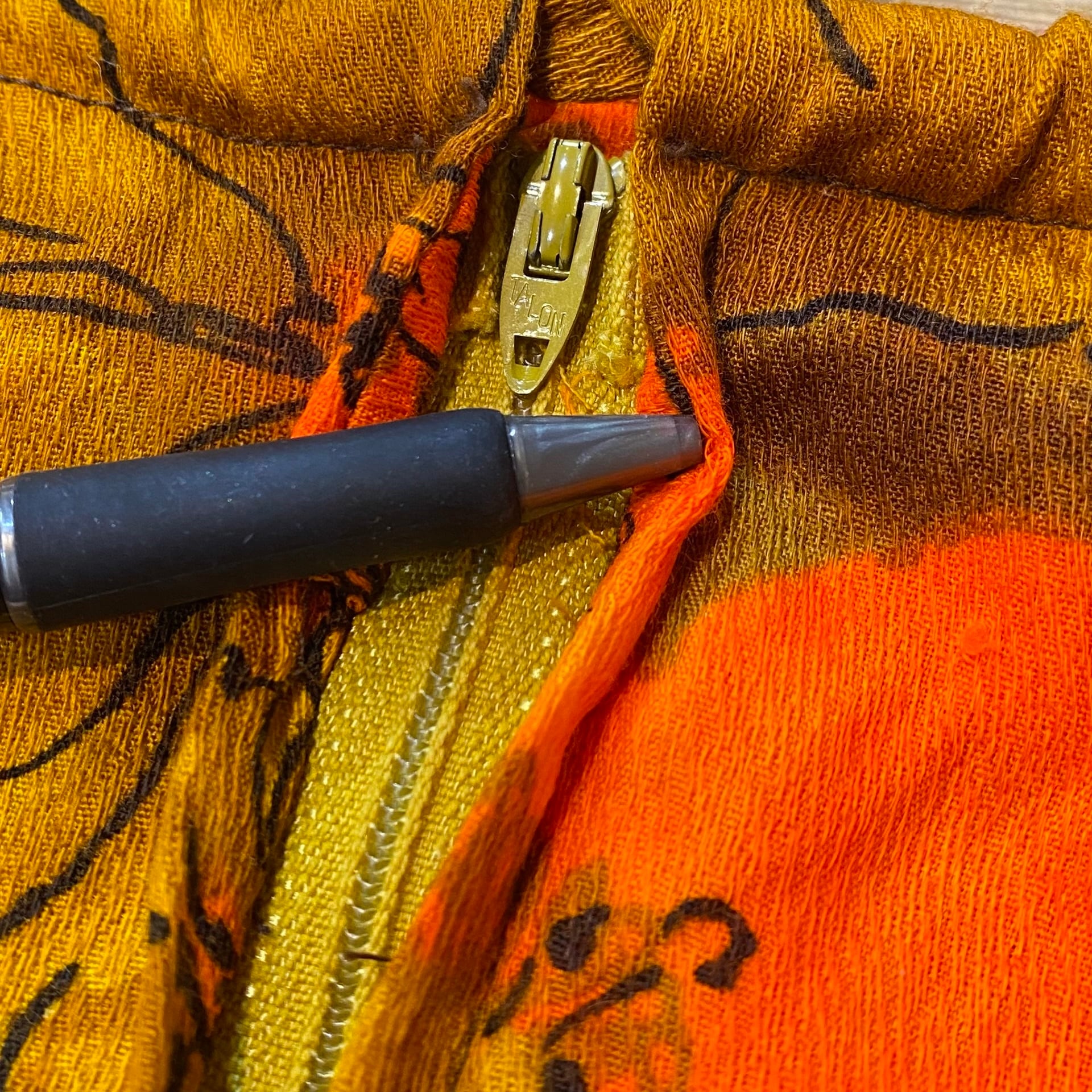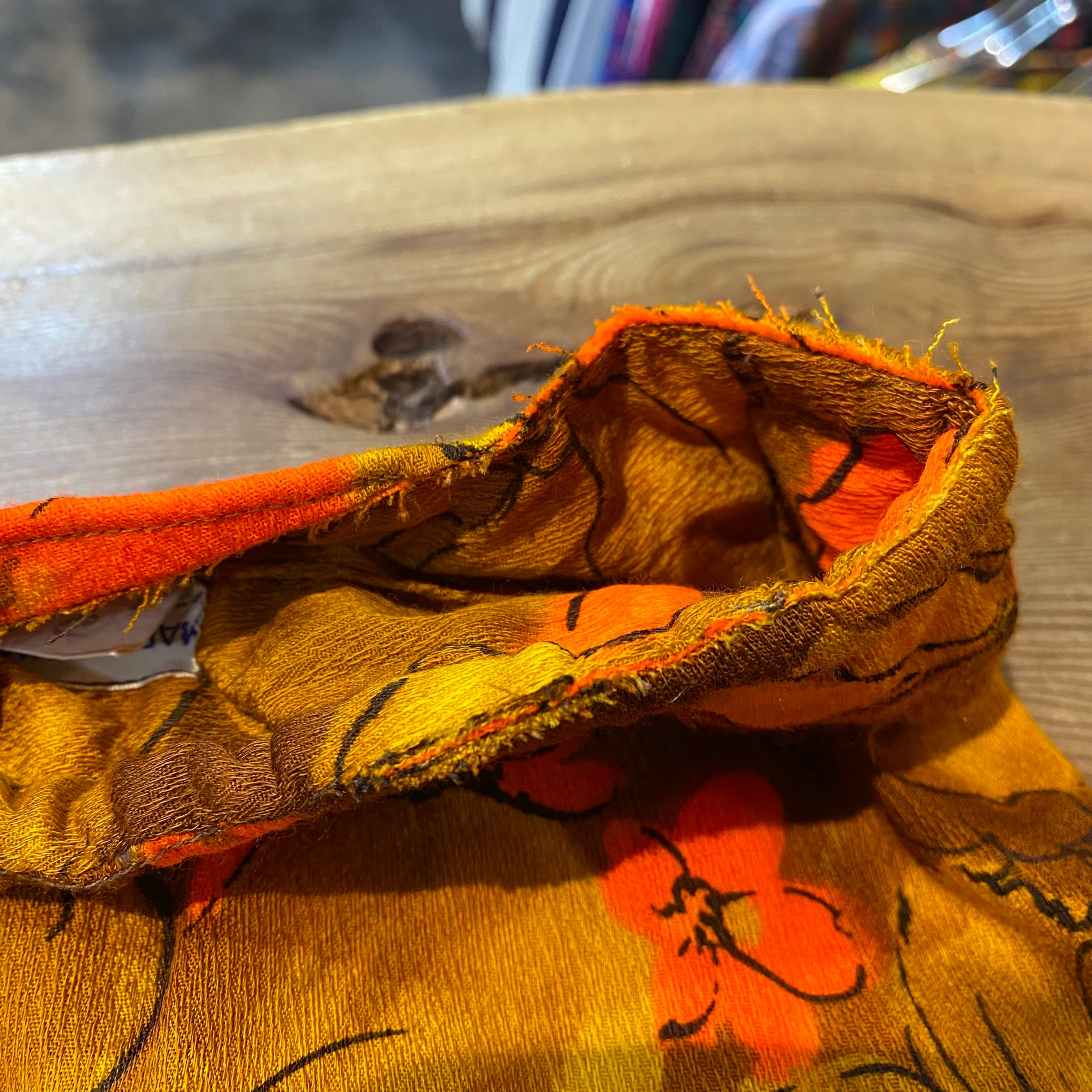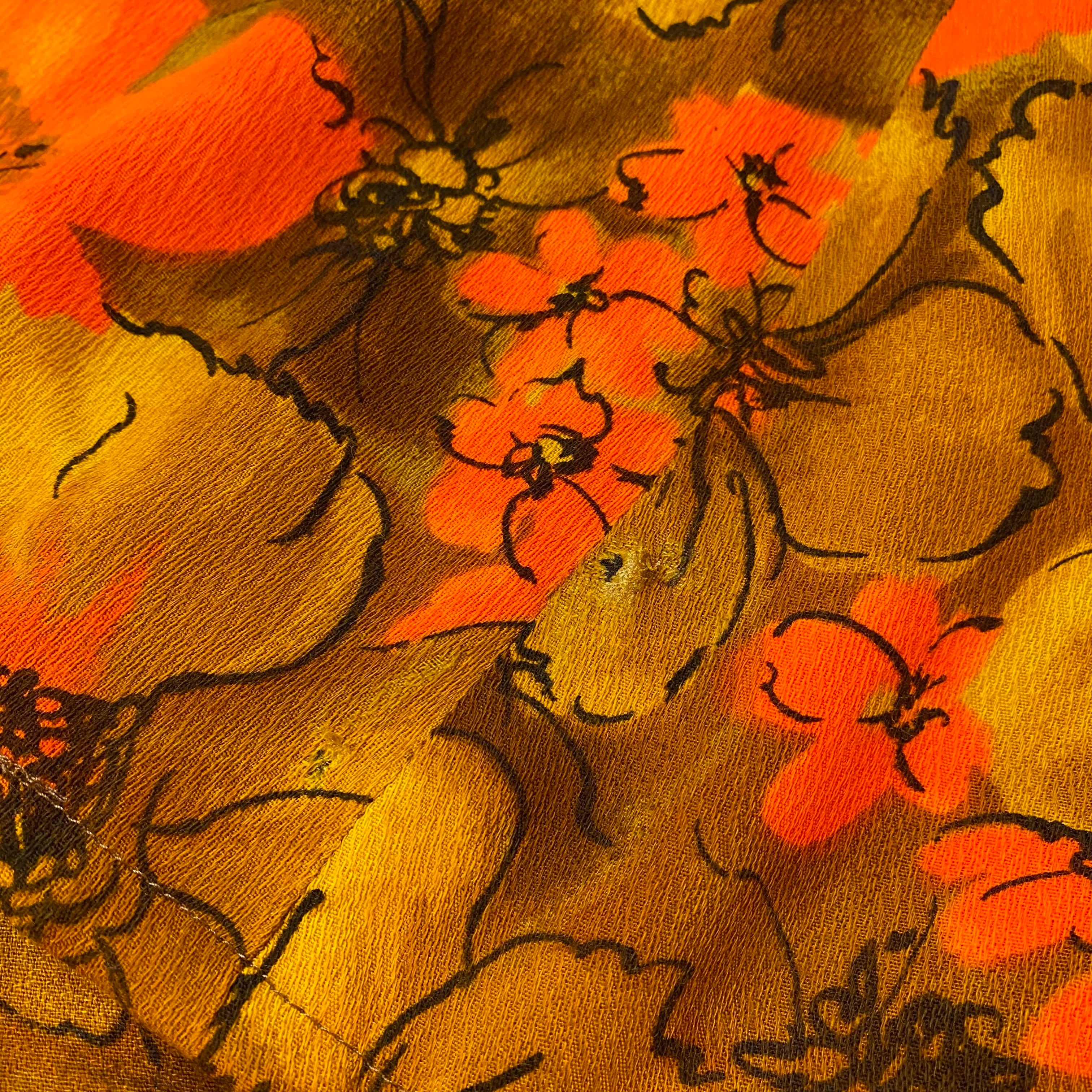 オレンジとブラウンの色合わせが可愛い、70年代の花柄スカートです。