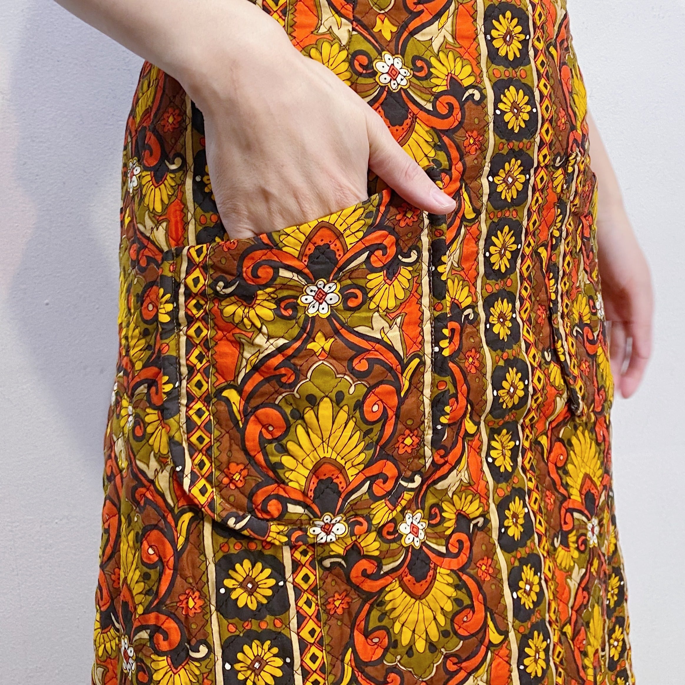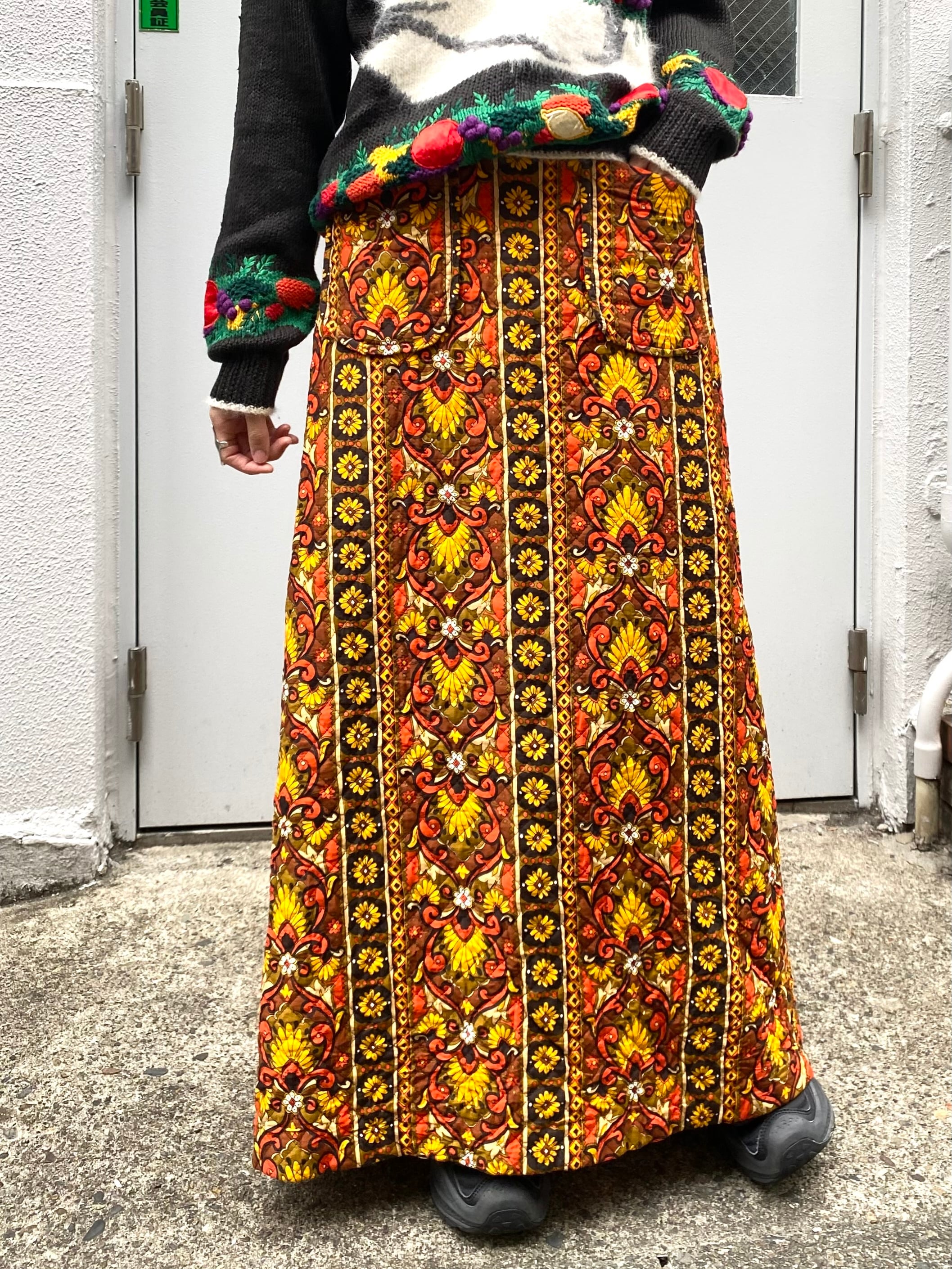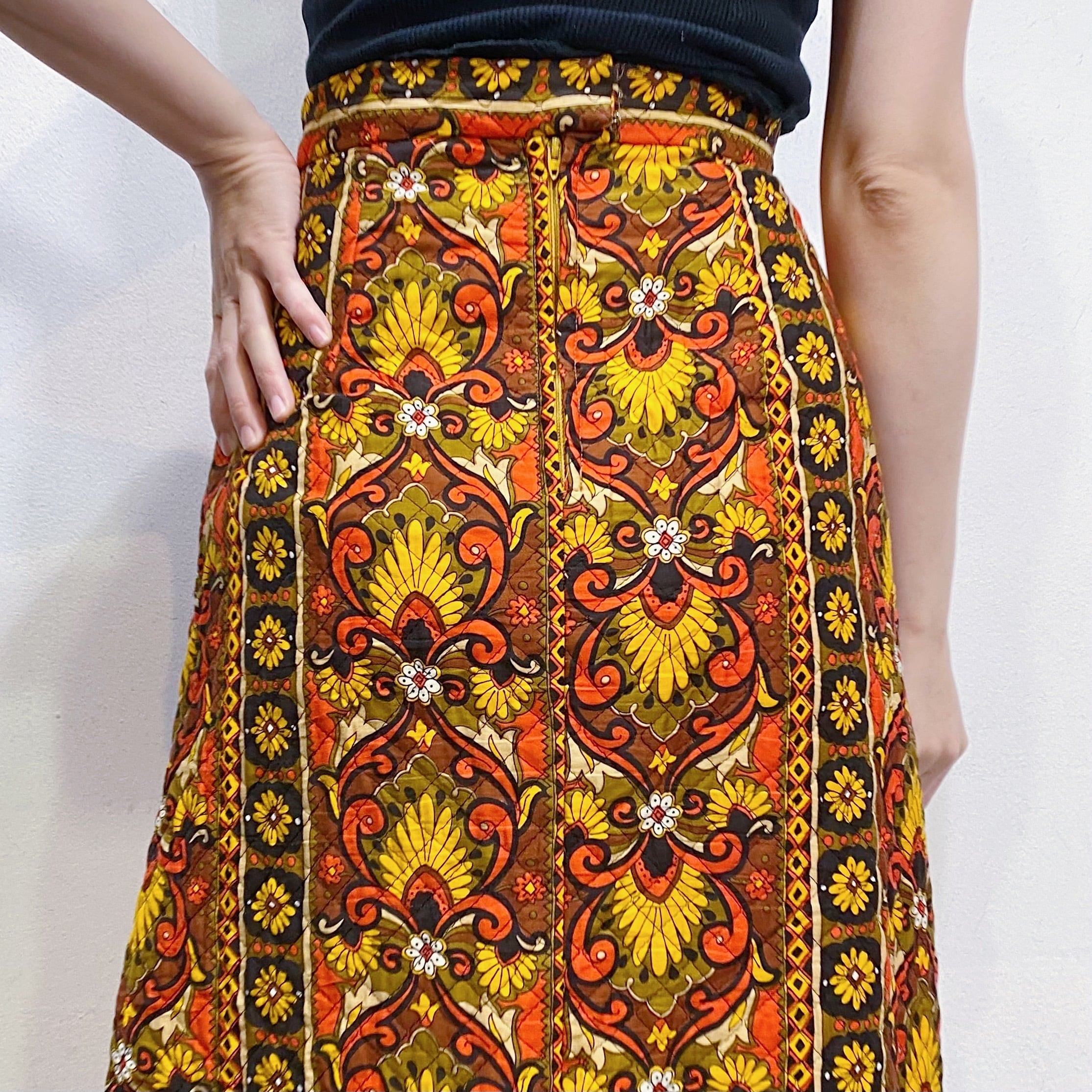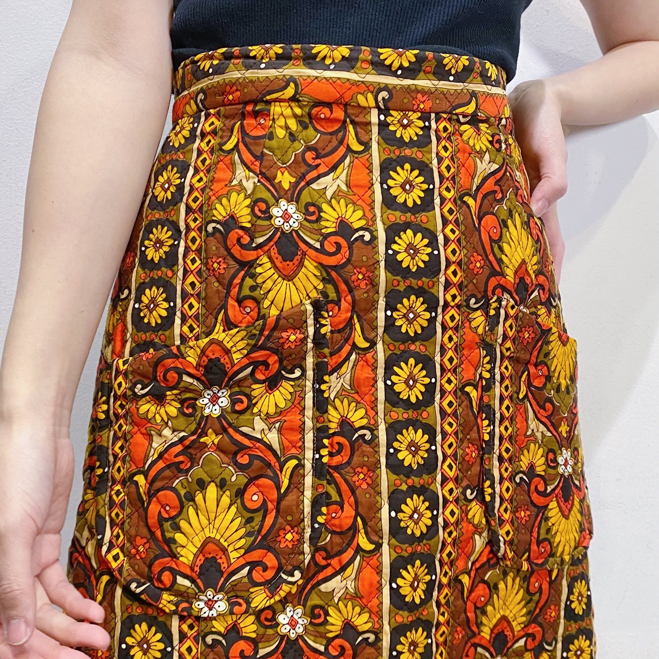 オレンジベースのテキスタイルが可愛い、60~70年代のキルティングスカートです。