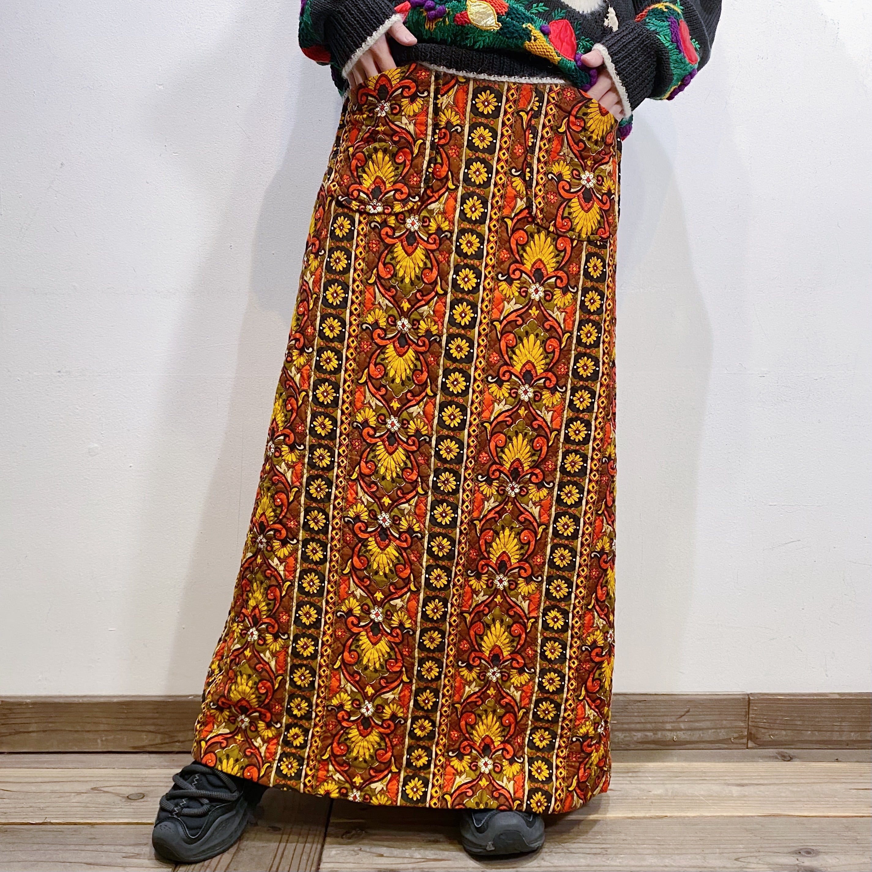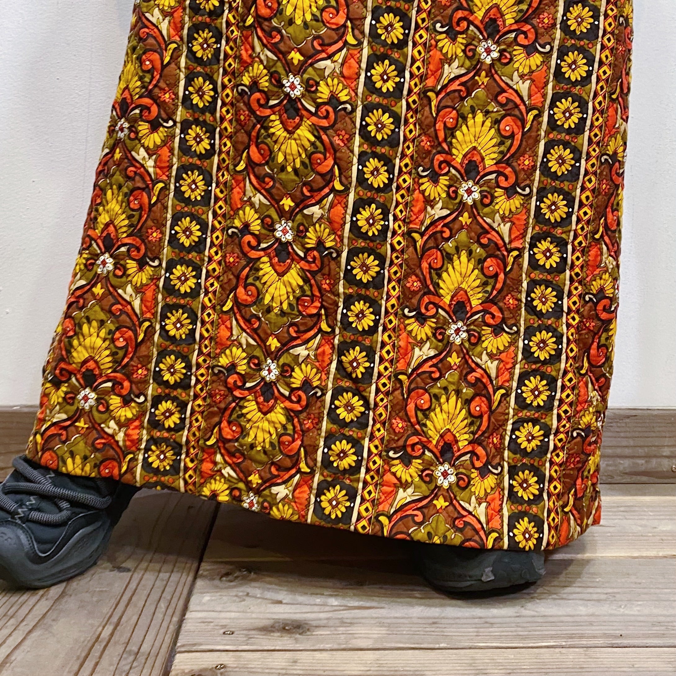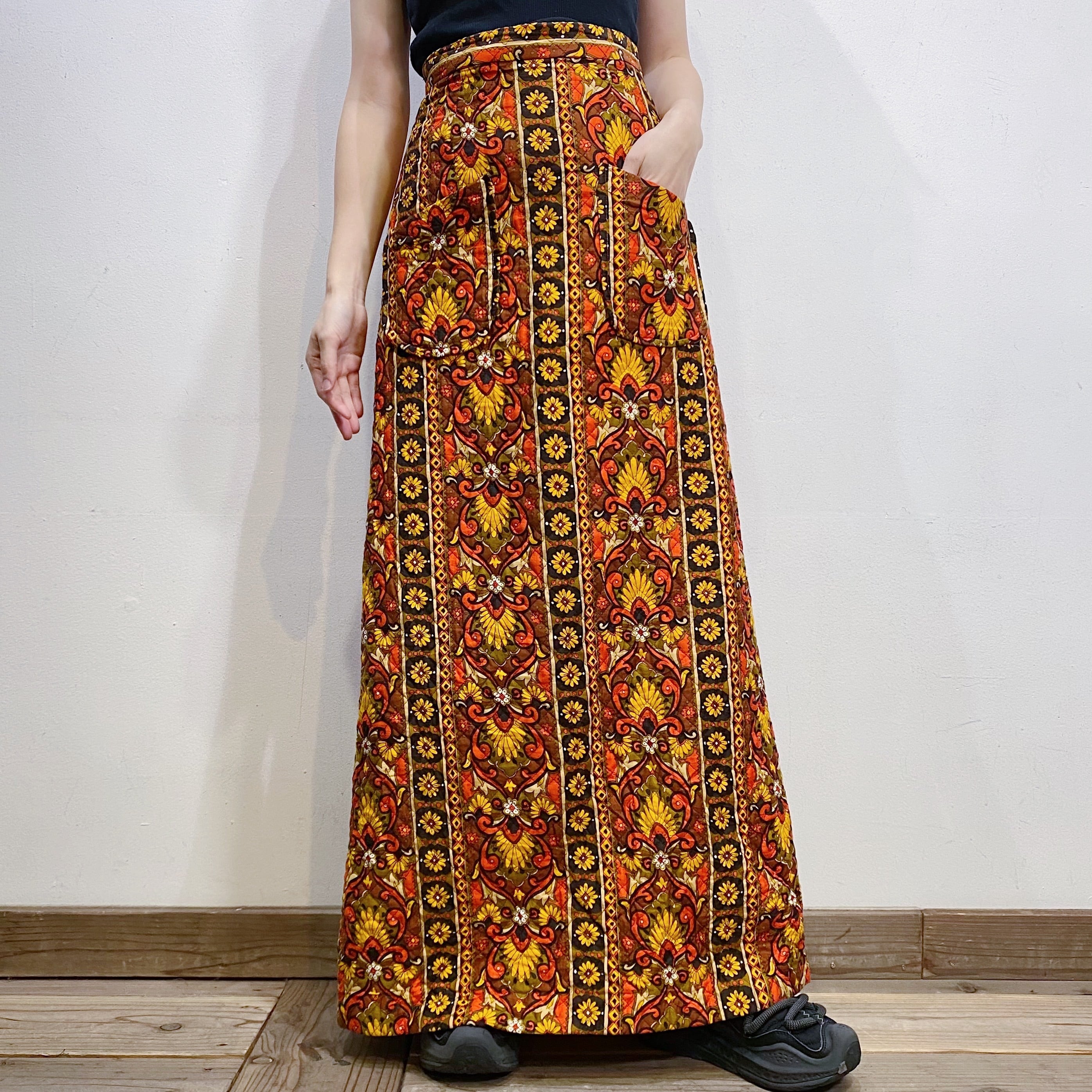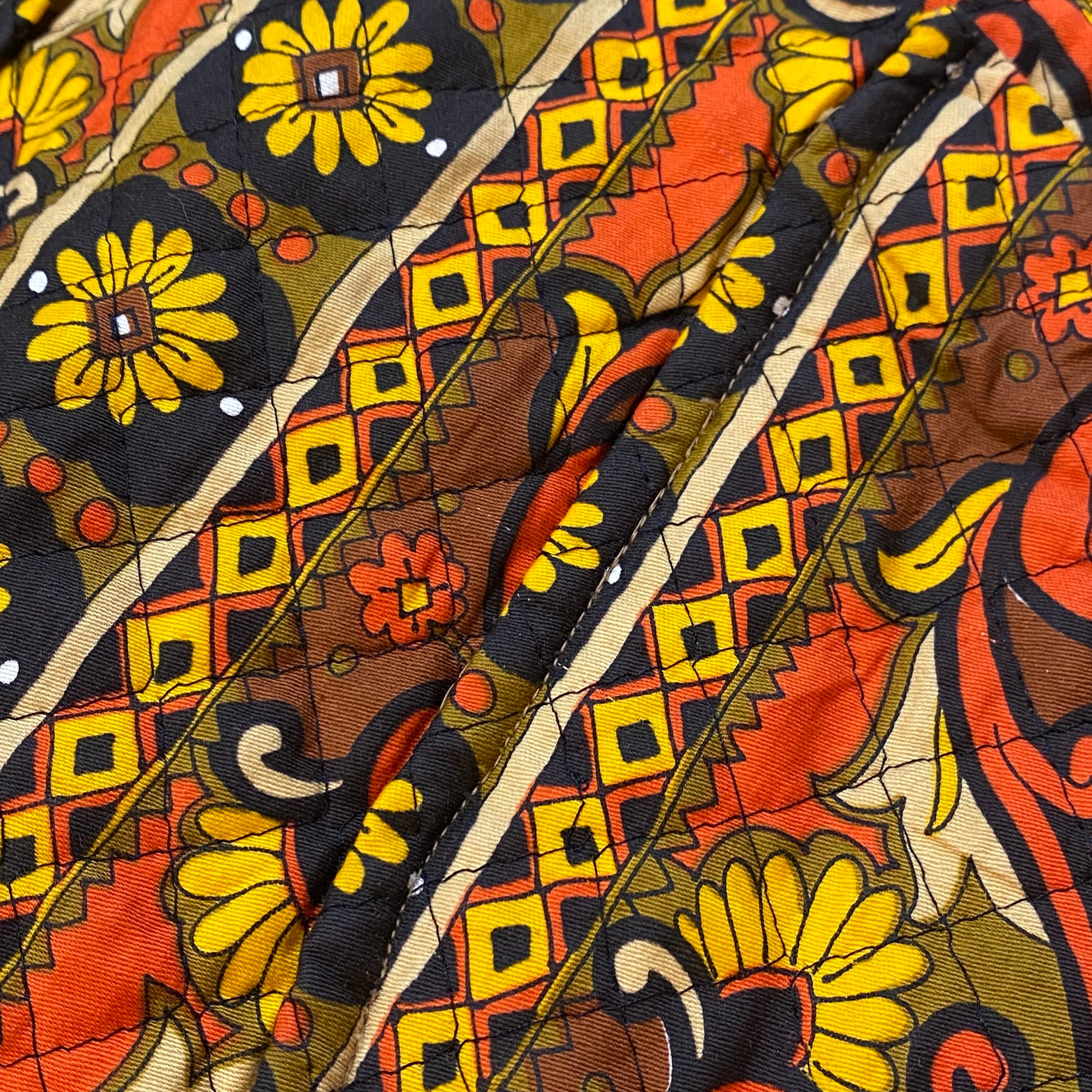 オレンジベースのテキスタイルが可愛い、60~70年代のキルティングスカートです。