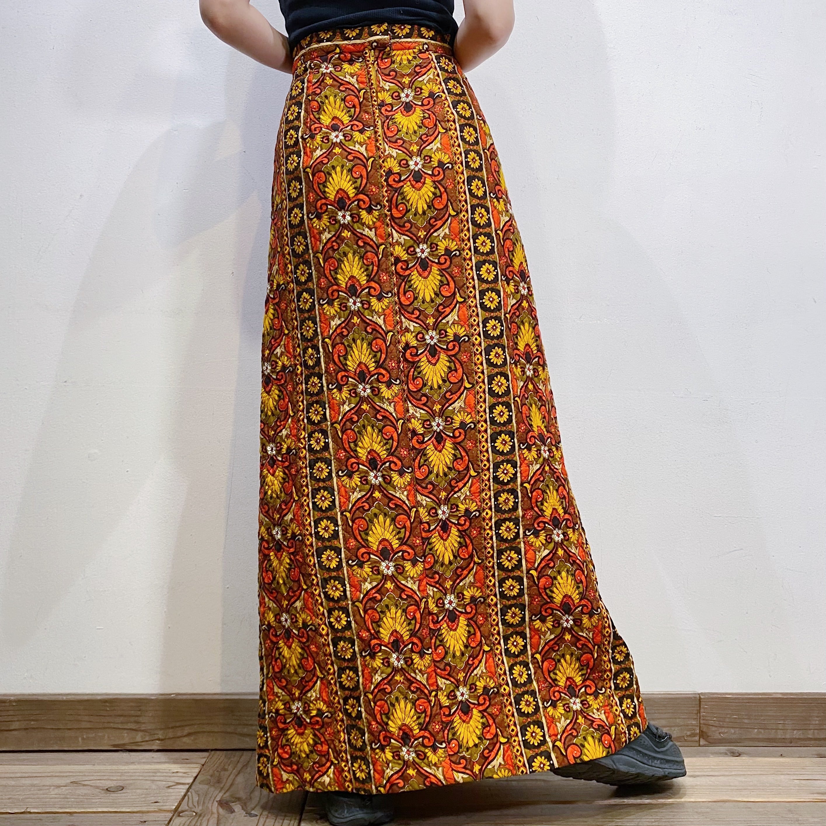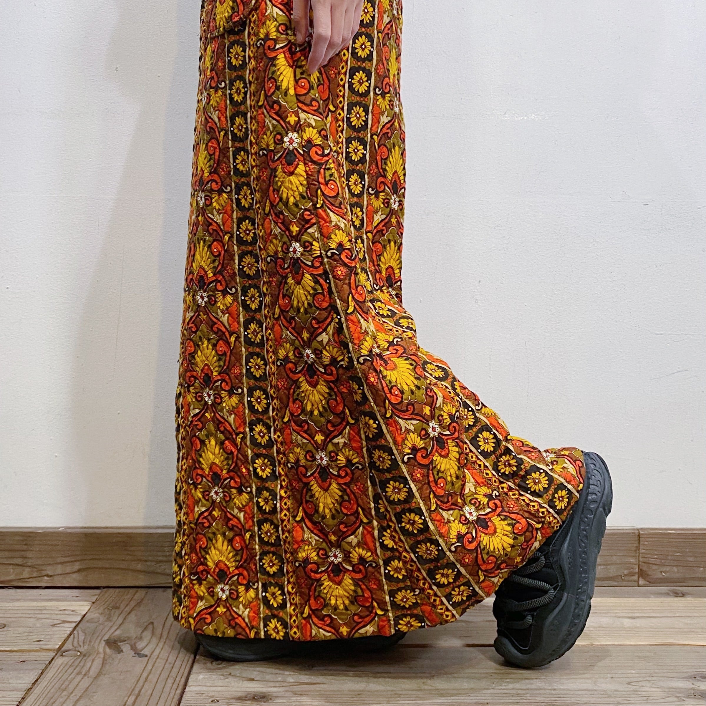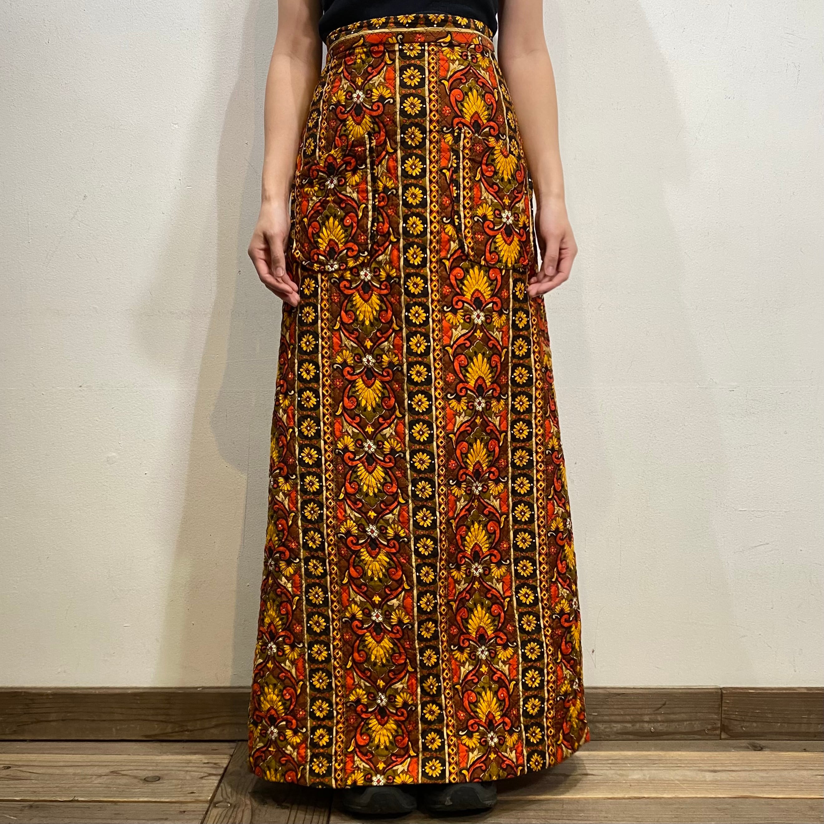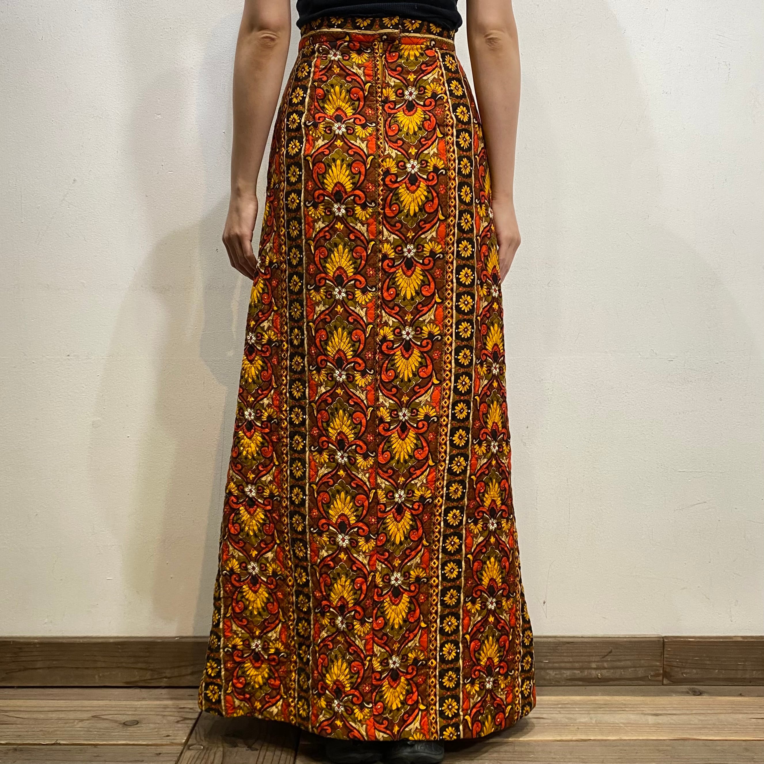 オレンジベースのテキスタイルが可愛い、60~70年代のキルティングスカートです。