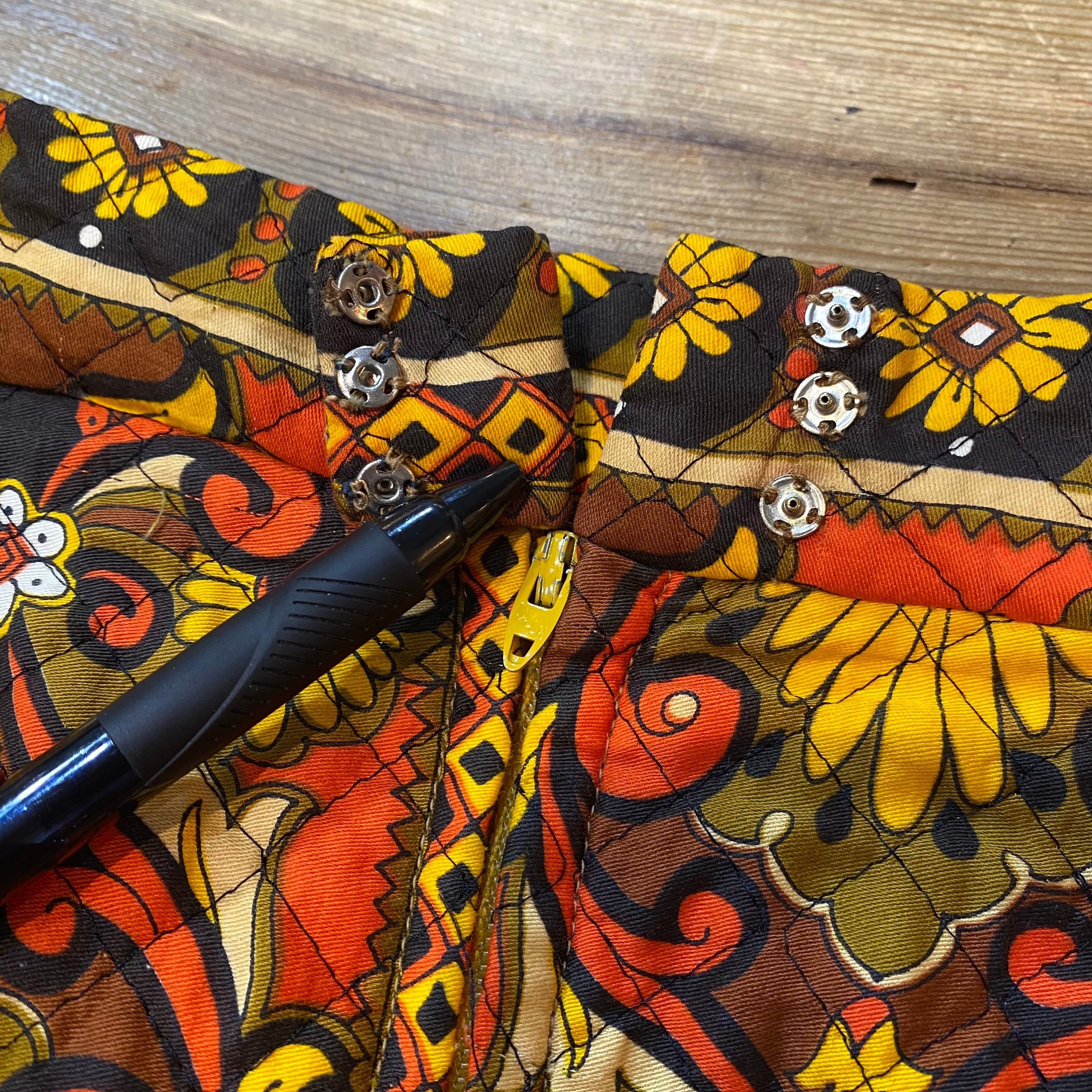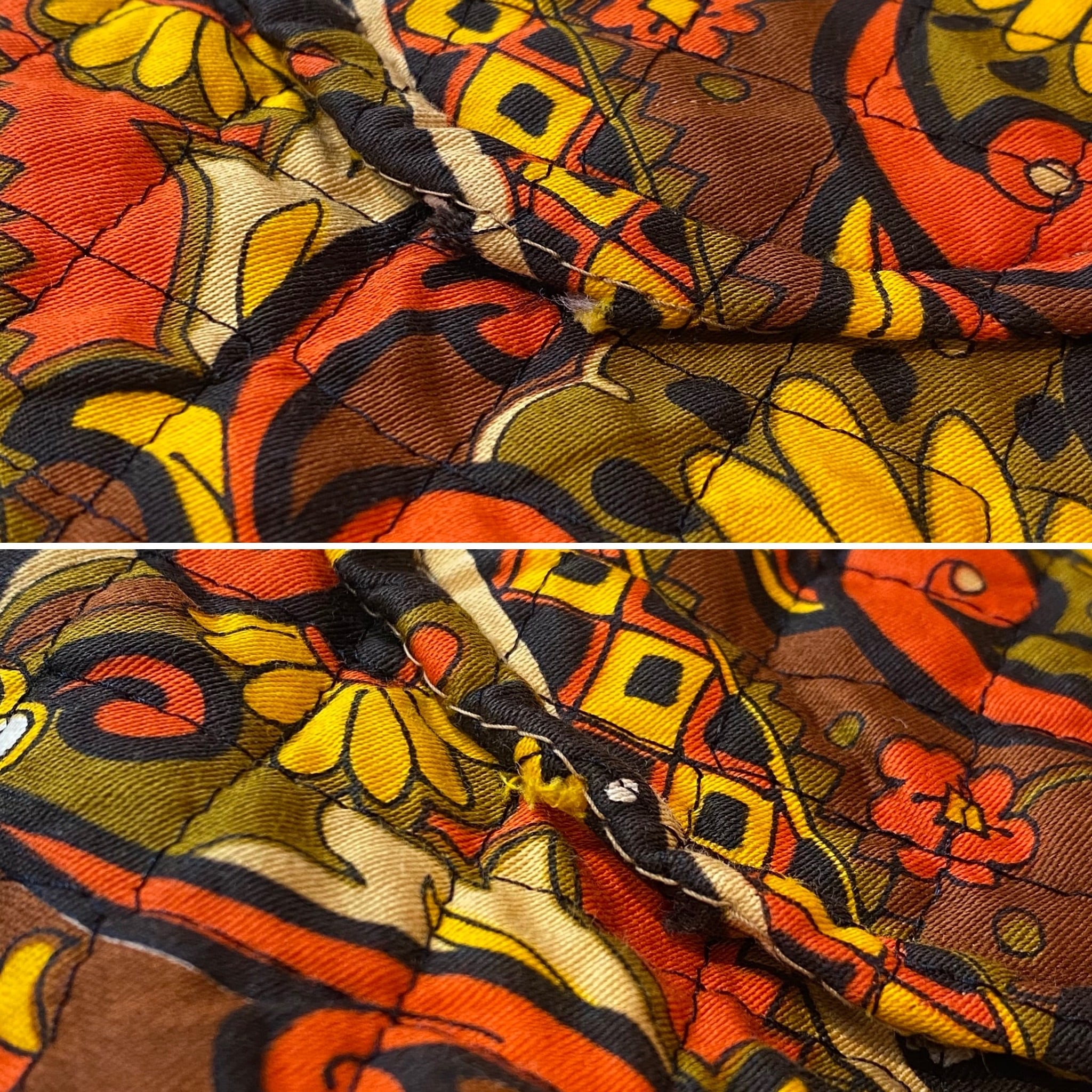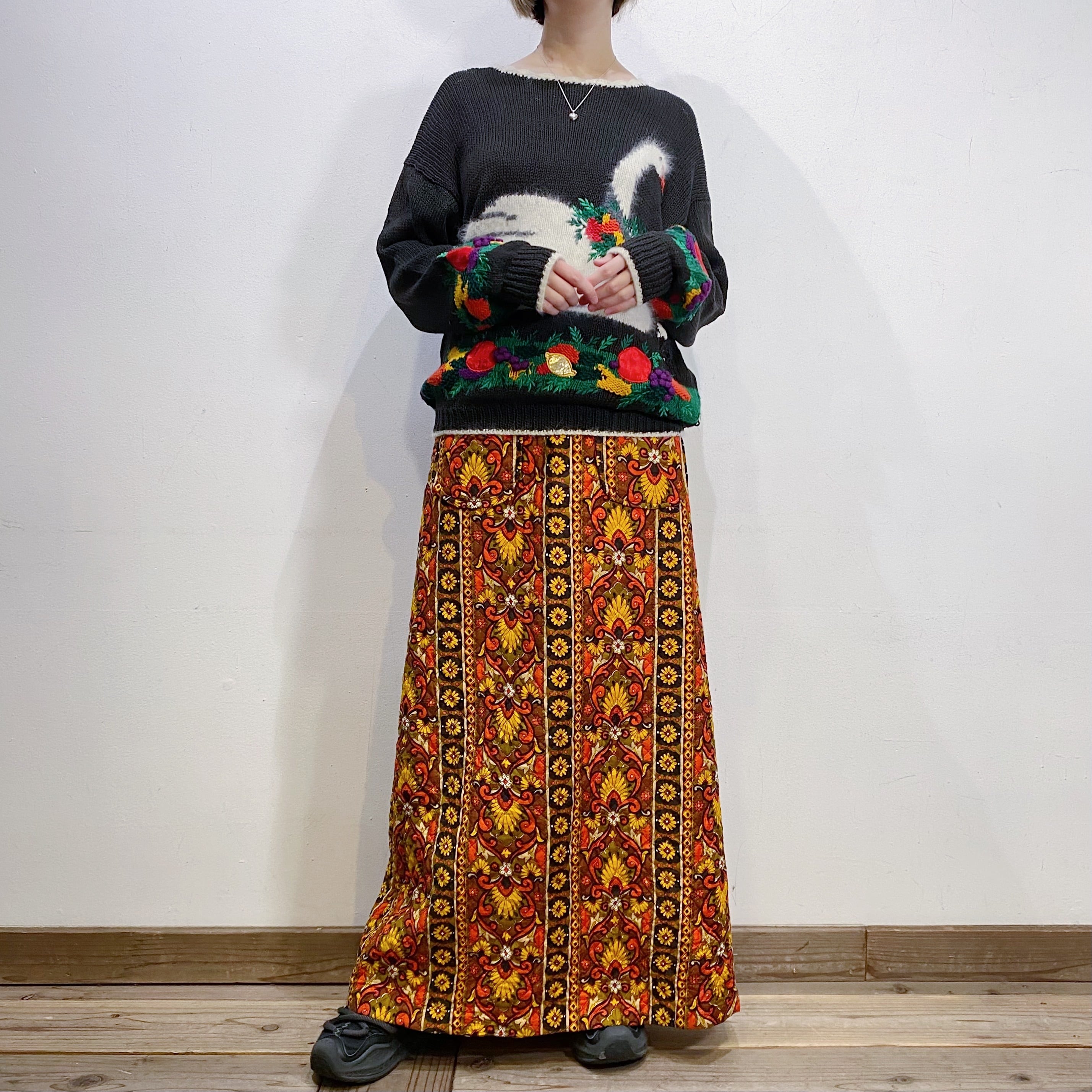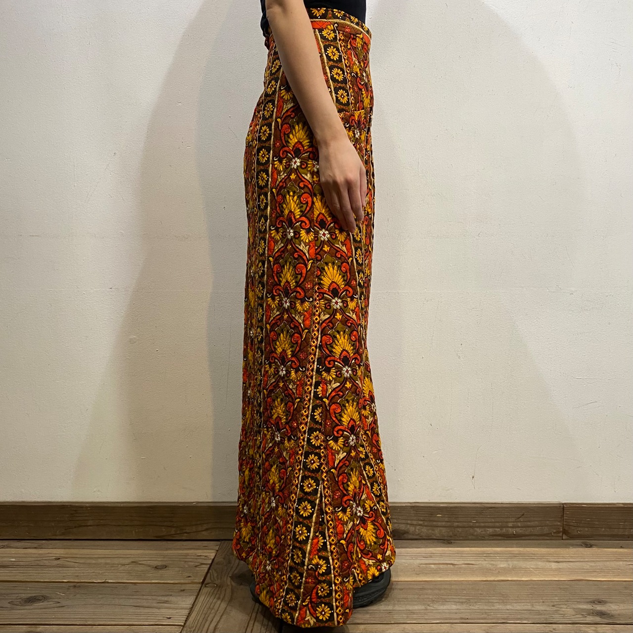オレンジベースのテキスタイルが可愛い、60~70年代のキルティングスカートです。