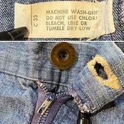 ステッチの軽度のホツレも見受けられますが、着用に問題はなく、いずれもヴィンテージデニム特有のアジや雰囲気として捉えていただけたらと思います。