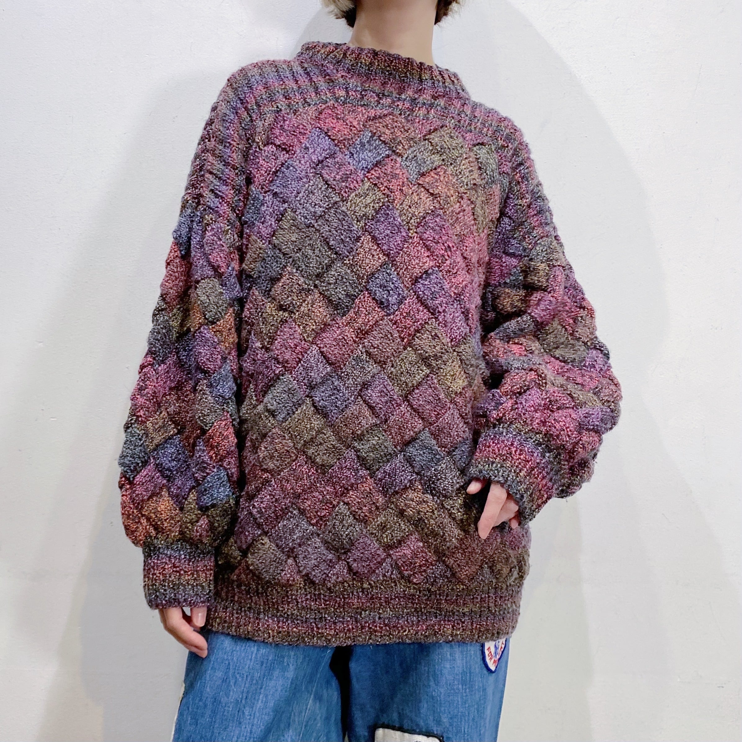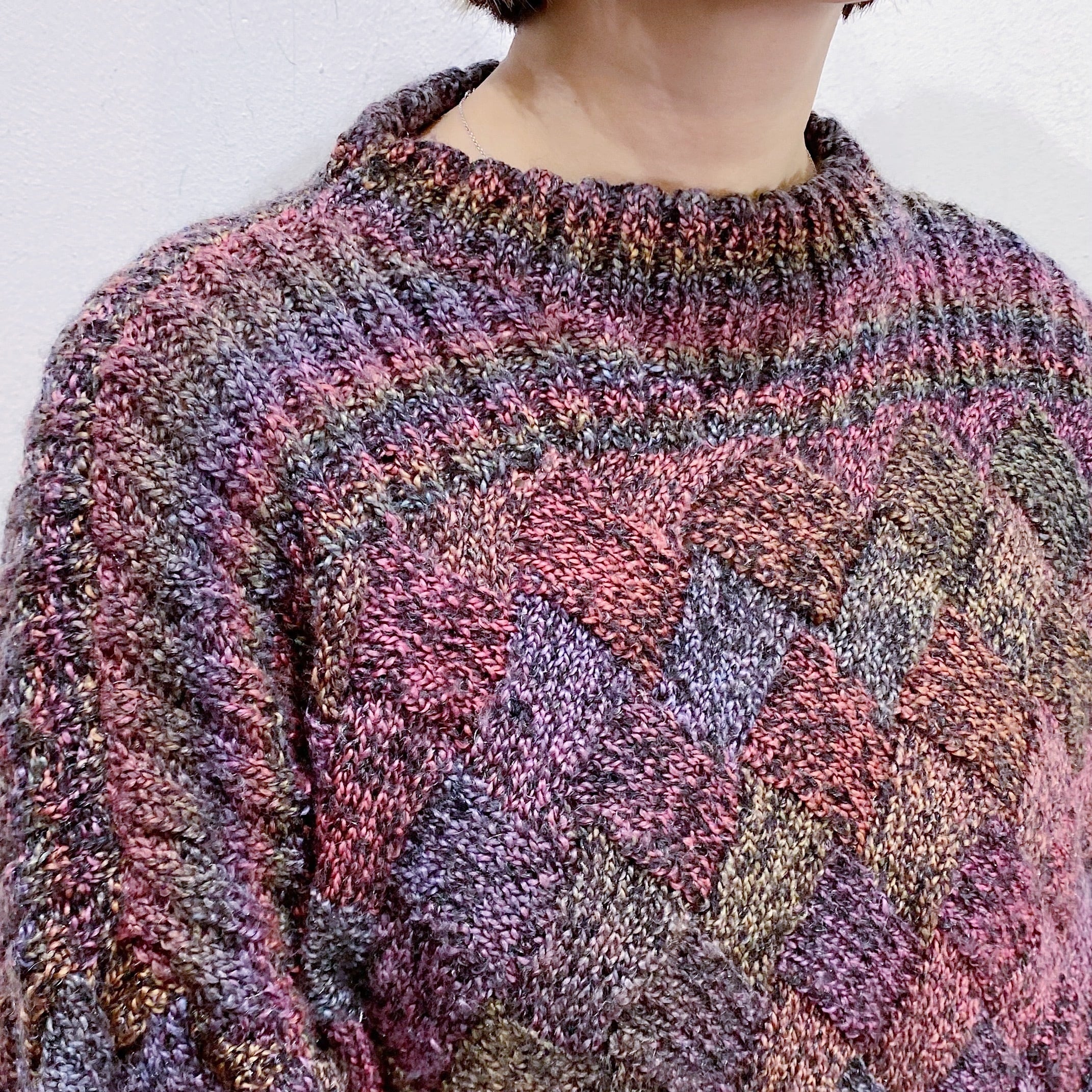 パープルやピンクなどのグラデーションカラーが可愛い、ニットセーターです。