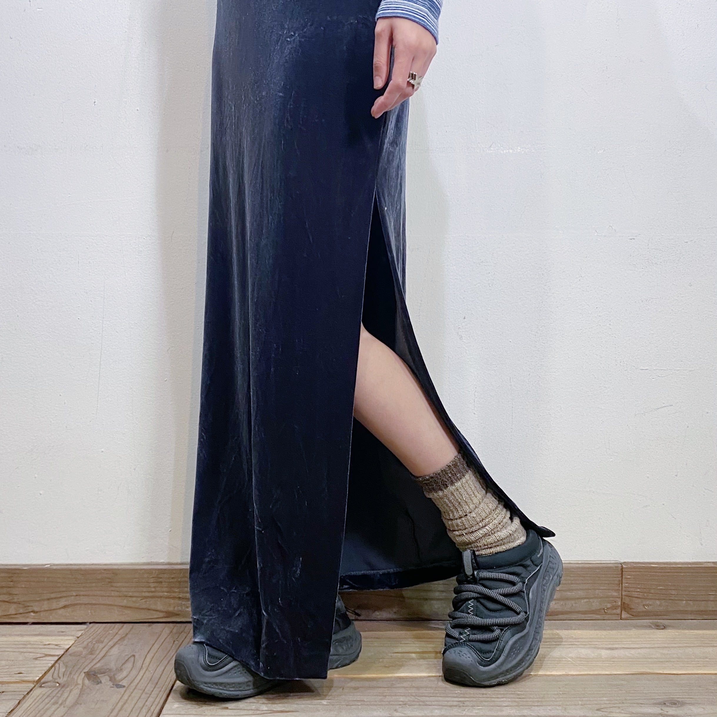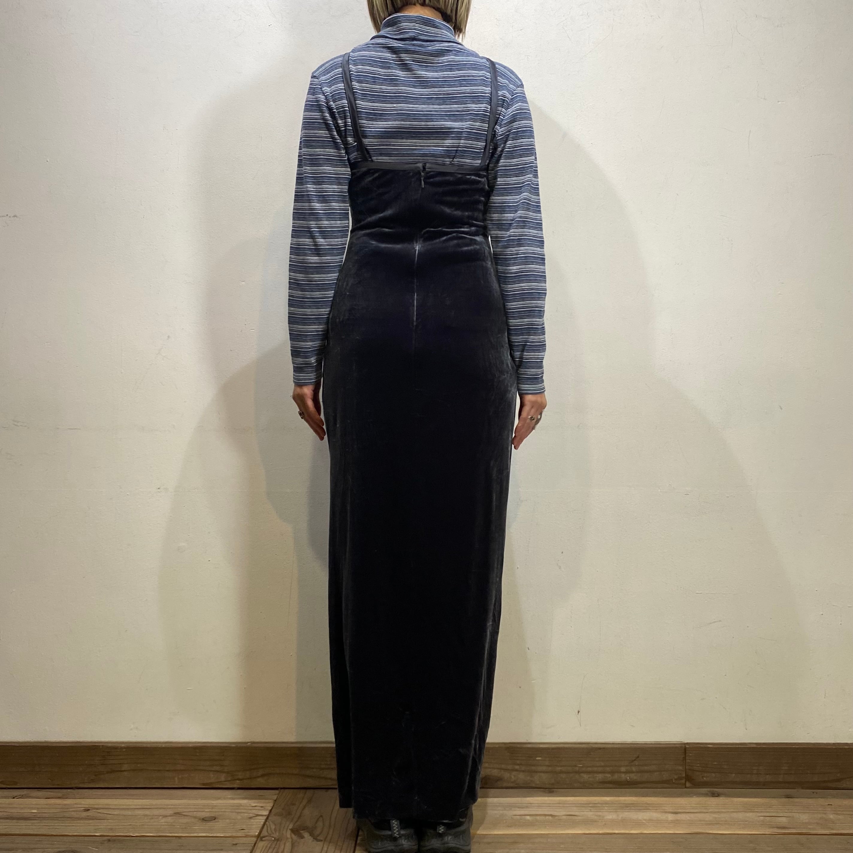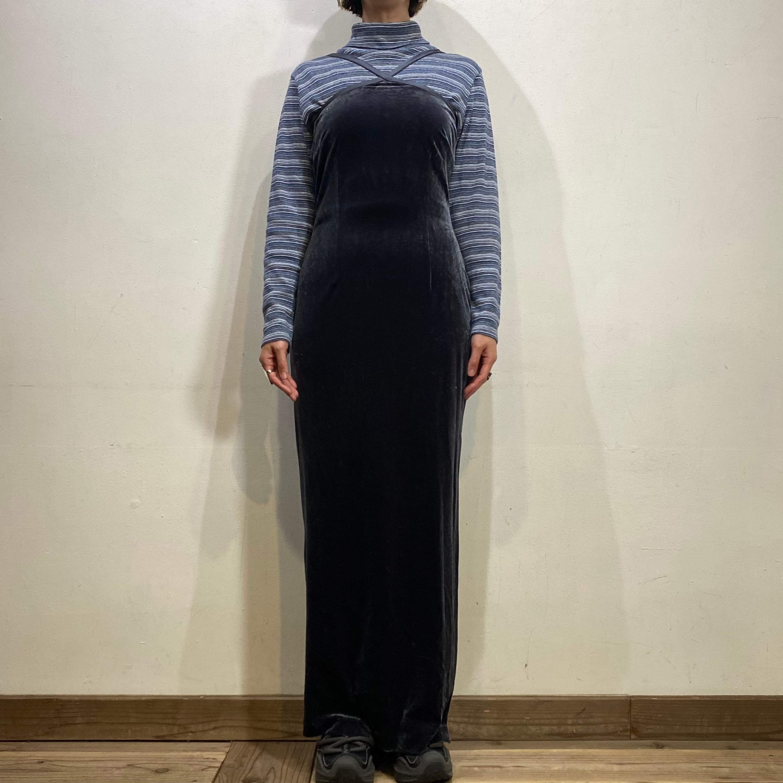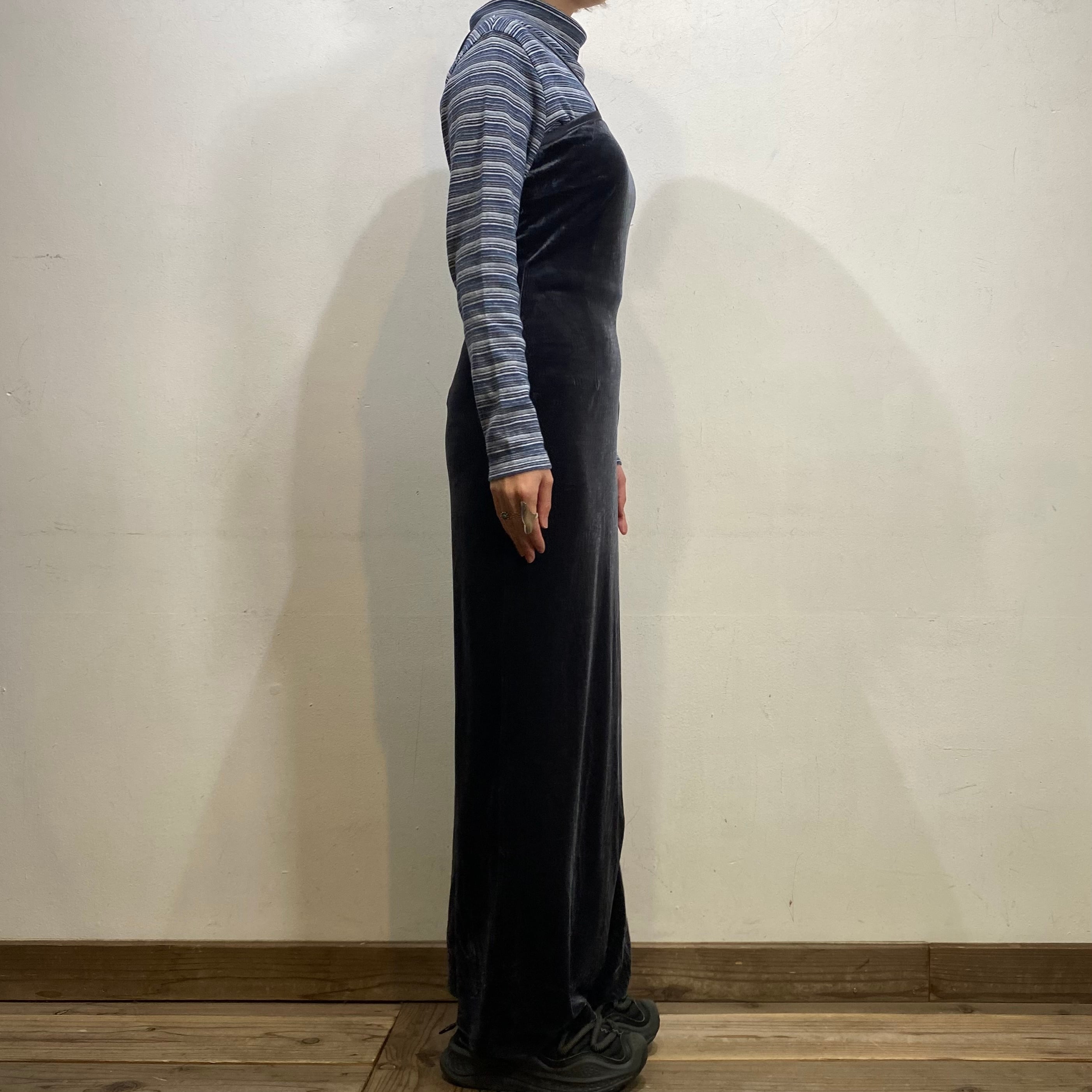 青みがかった絶妙なグレーの色合いが可愛い、ベロアワンピースです。