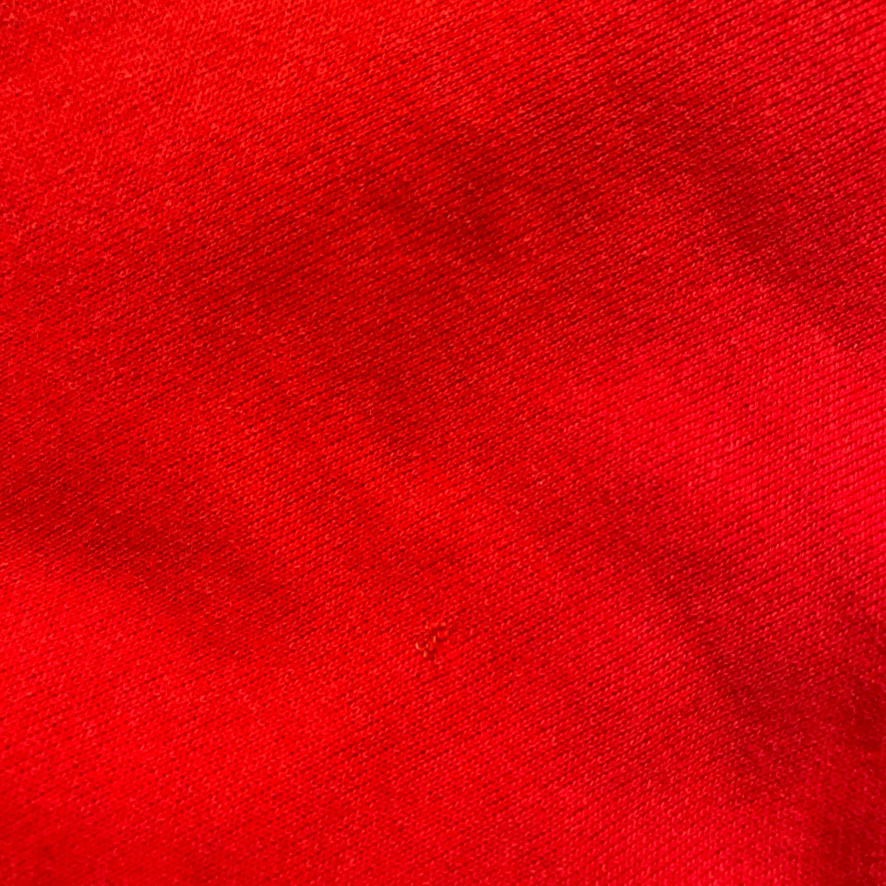 またフロントにお直しのあと、袖口にうっすらとしたヨゴレ、袖に色抜け、裾に貫通していない点ほどの小さな穴があります。