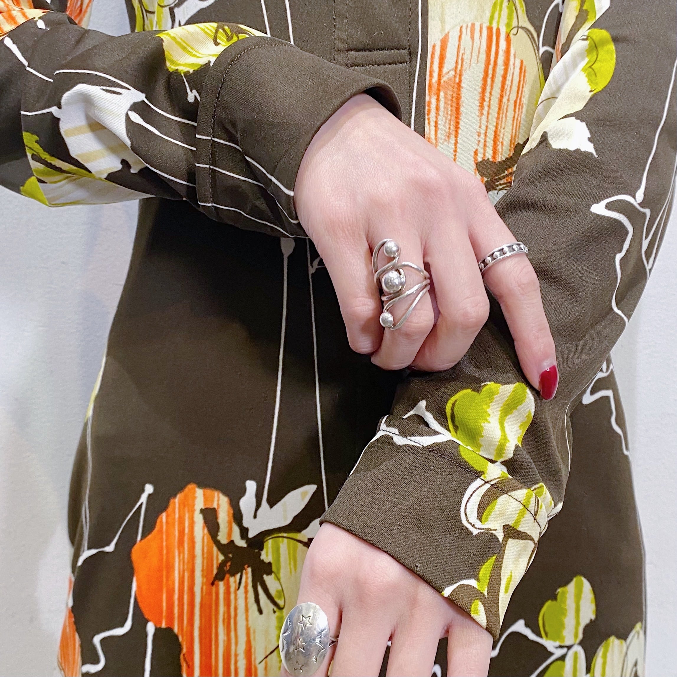ブラウンベースに黄緑色やオレンジで大きめの花柄のパターンがまたモード感あって素敵。