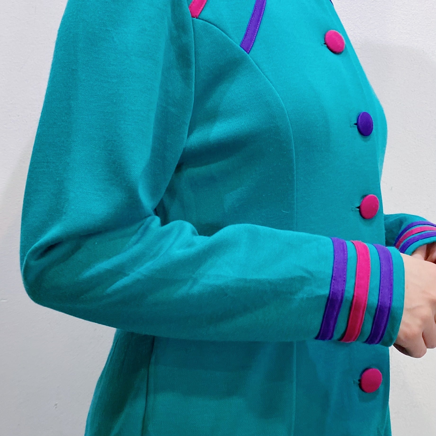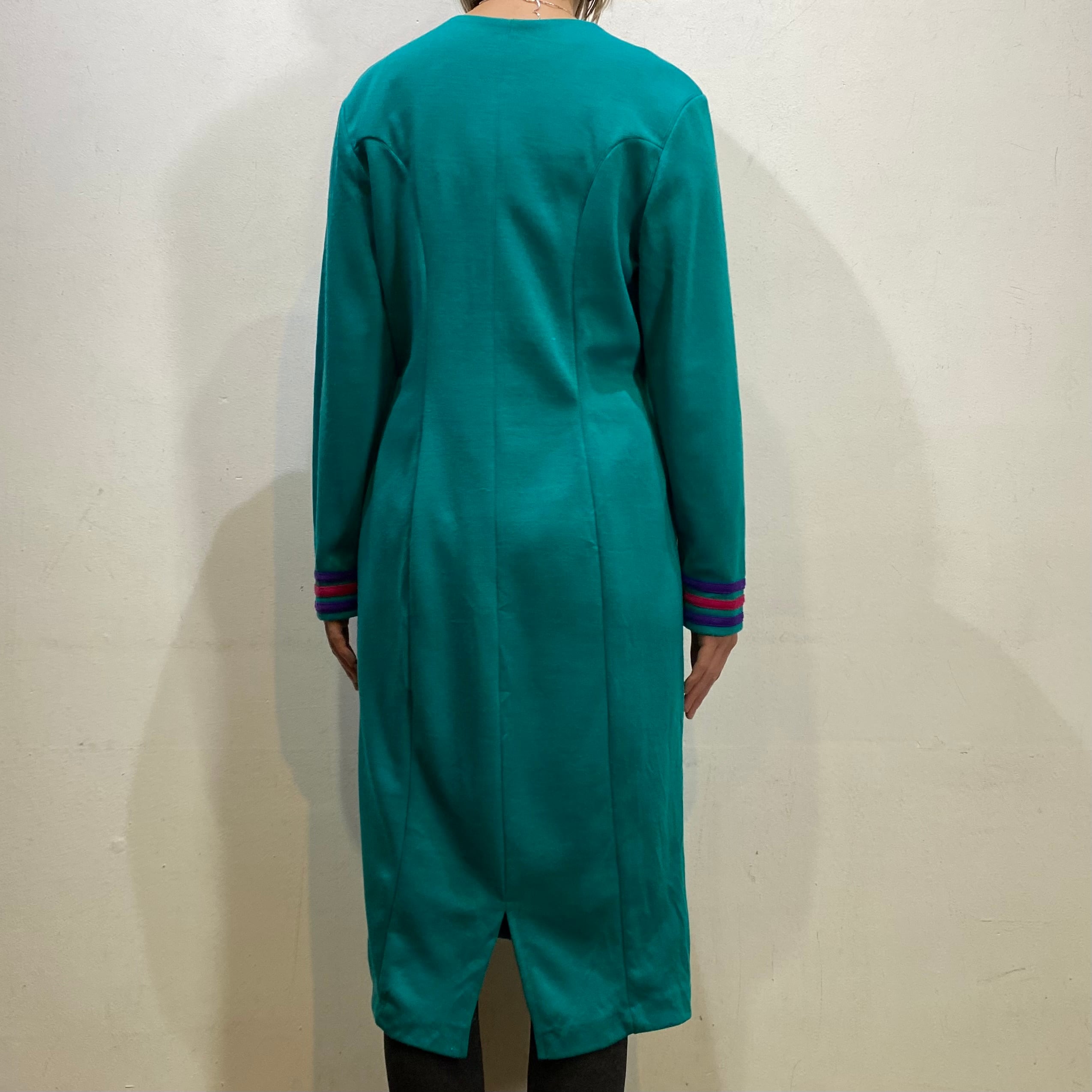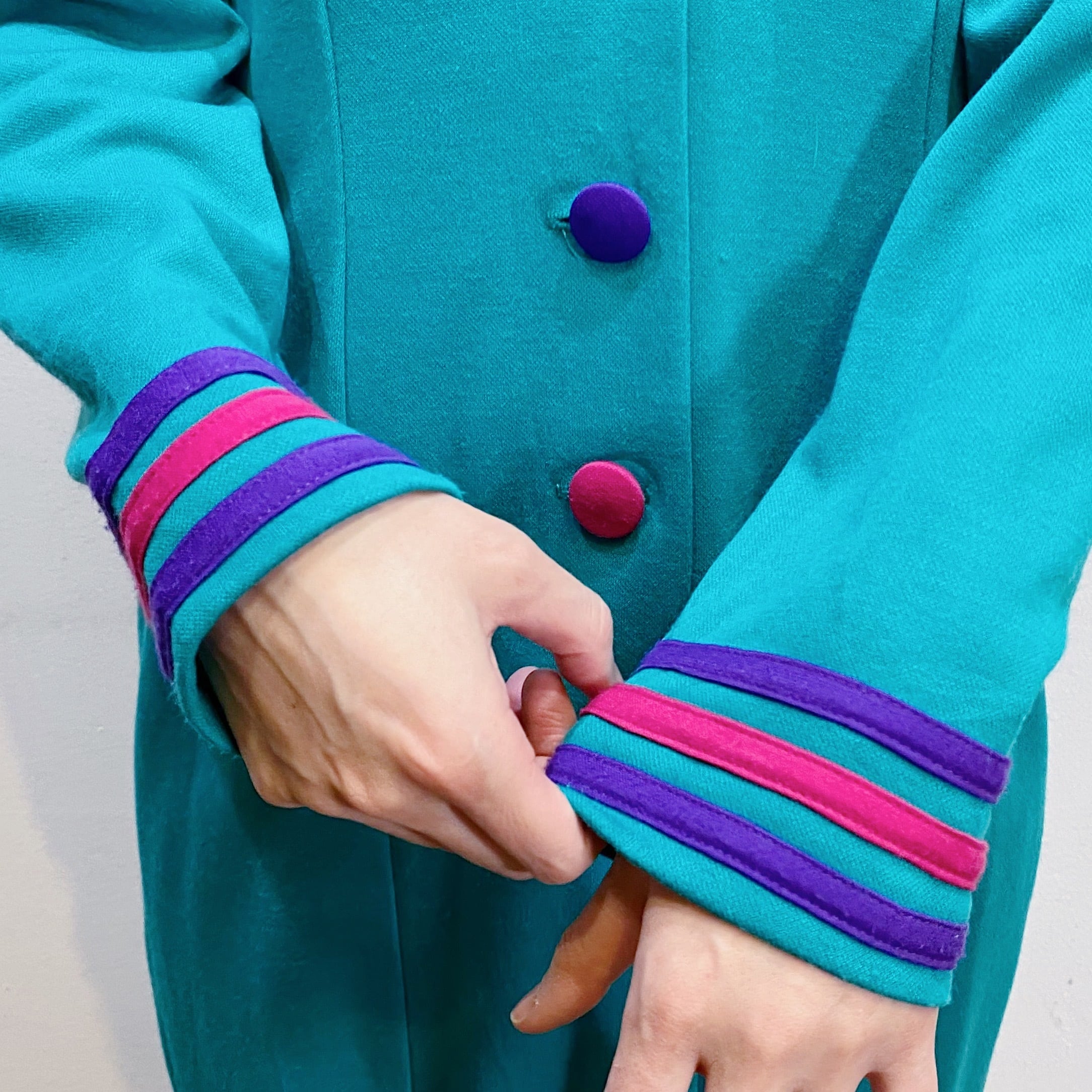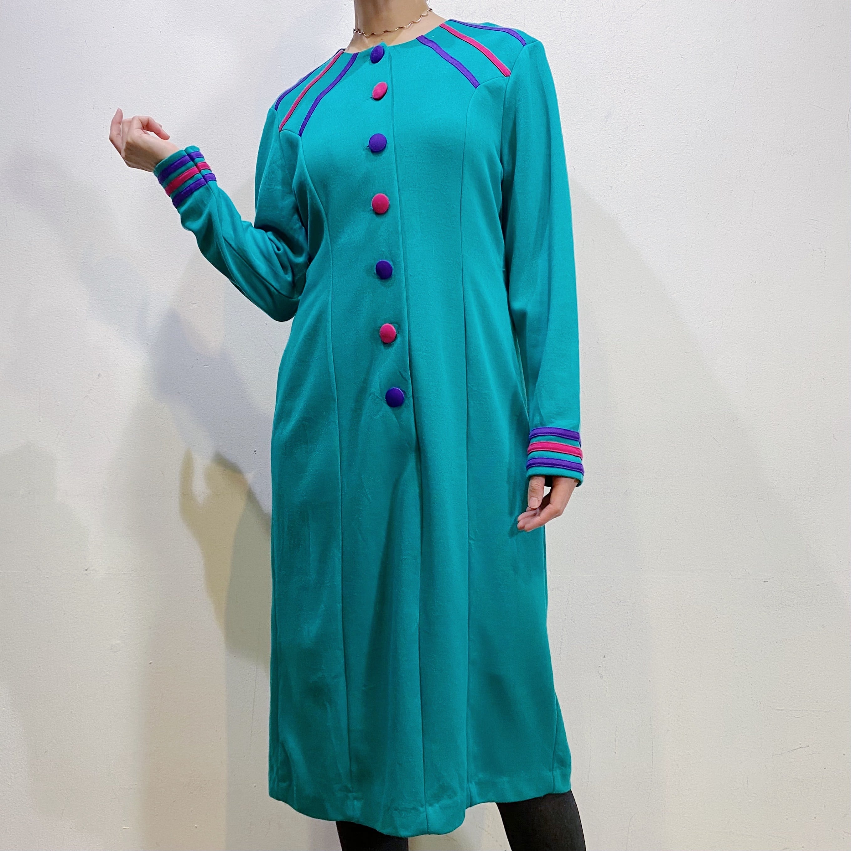 グリーンベースにピンクとパープルの80sらしい色合わせが可愛い、ワンピースです。