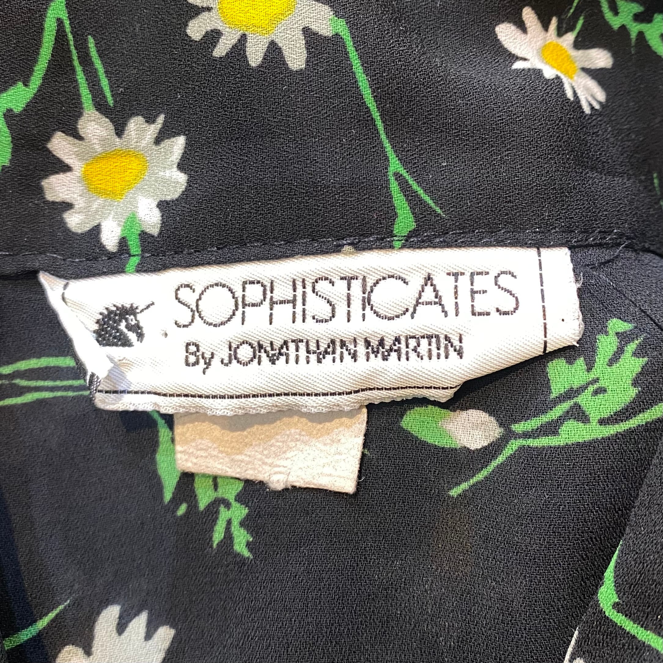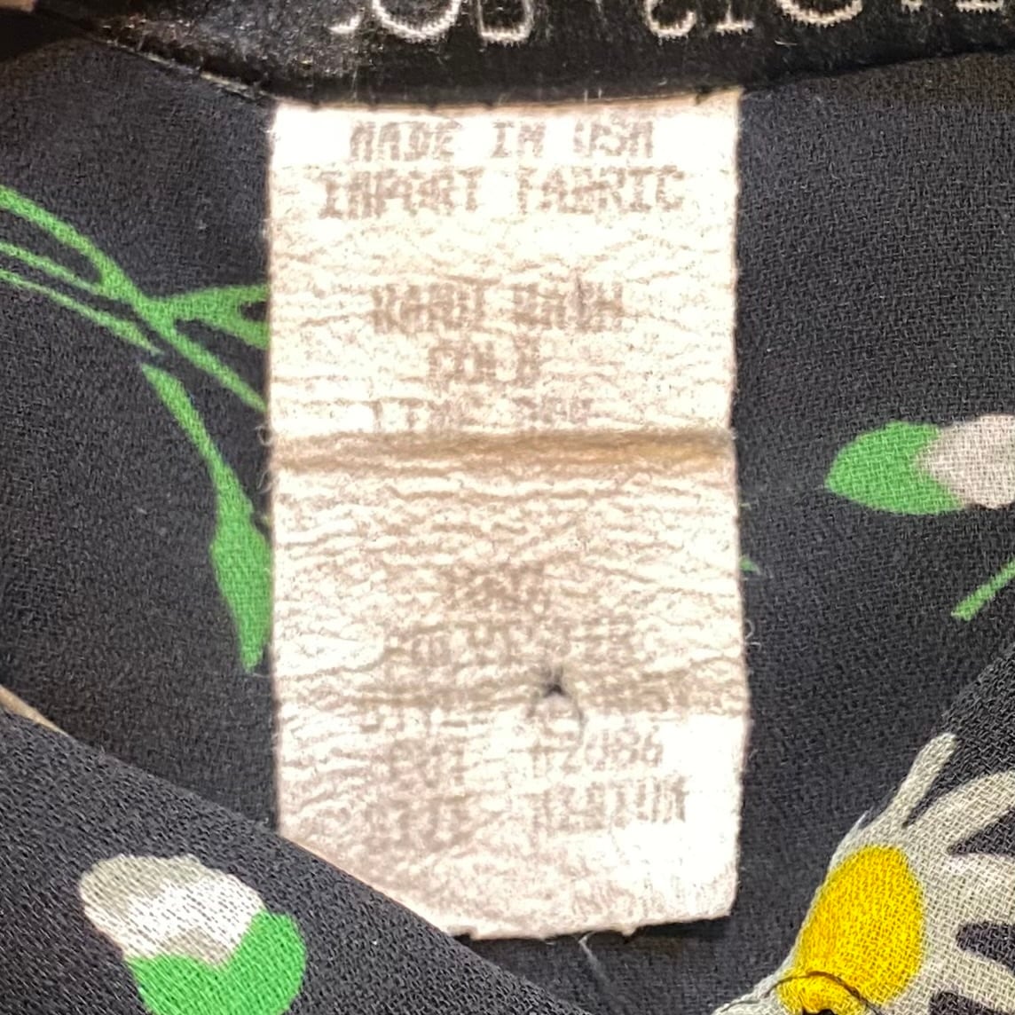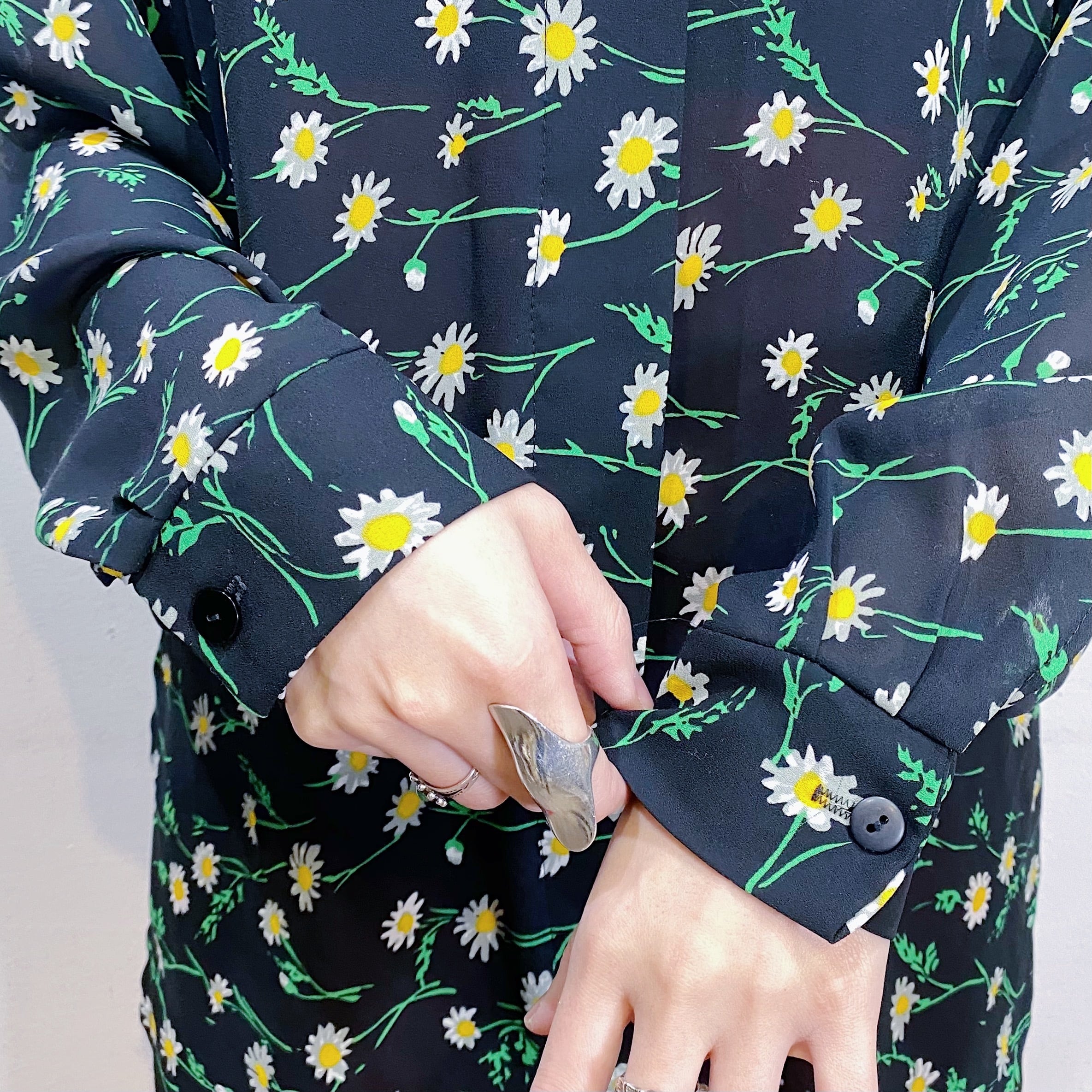 80s black daisy printed sheer shirt【716】